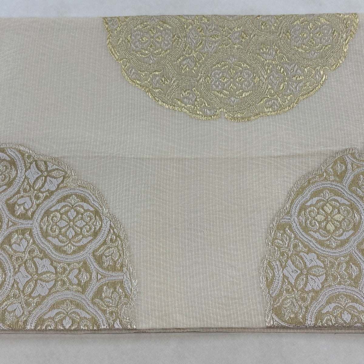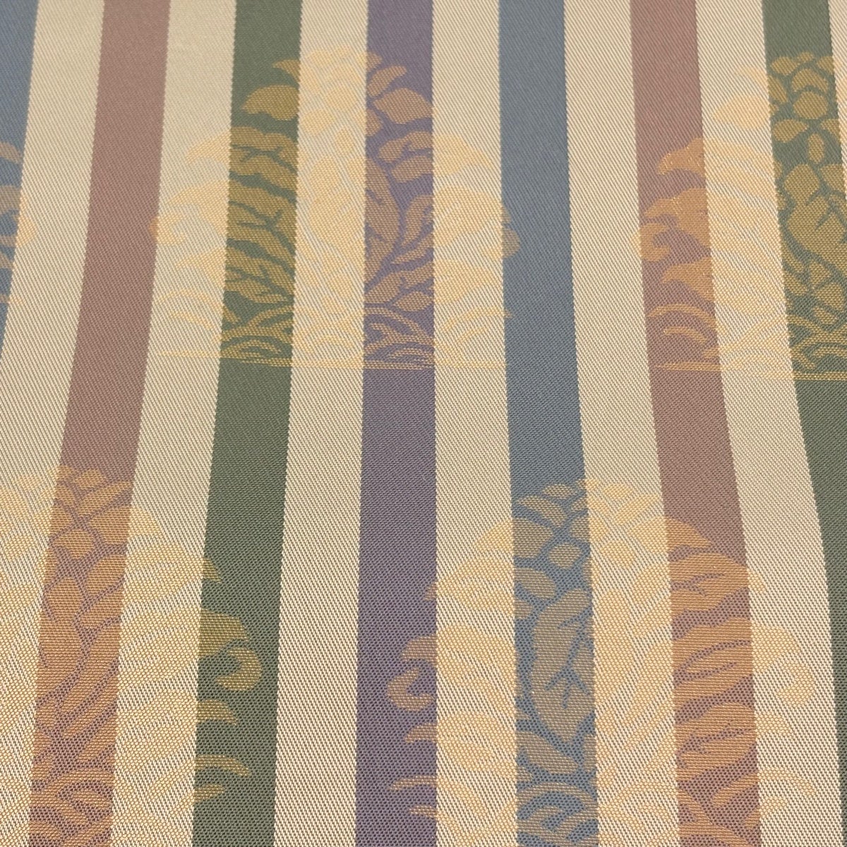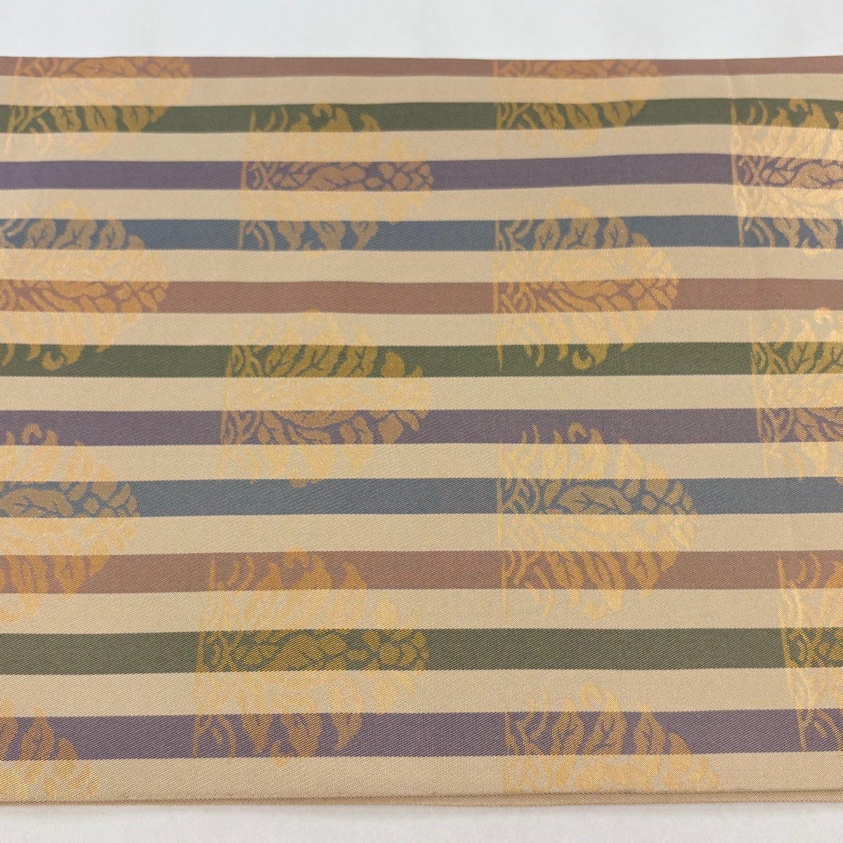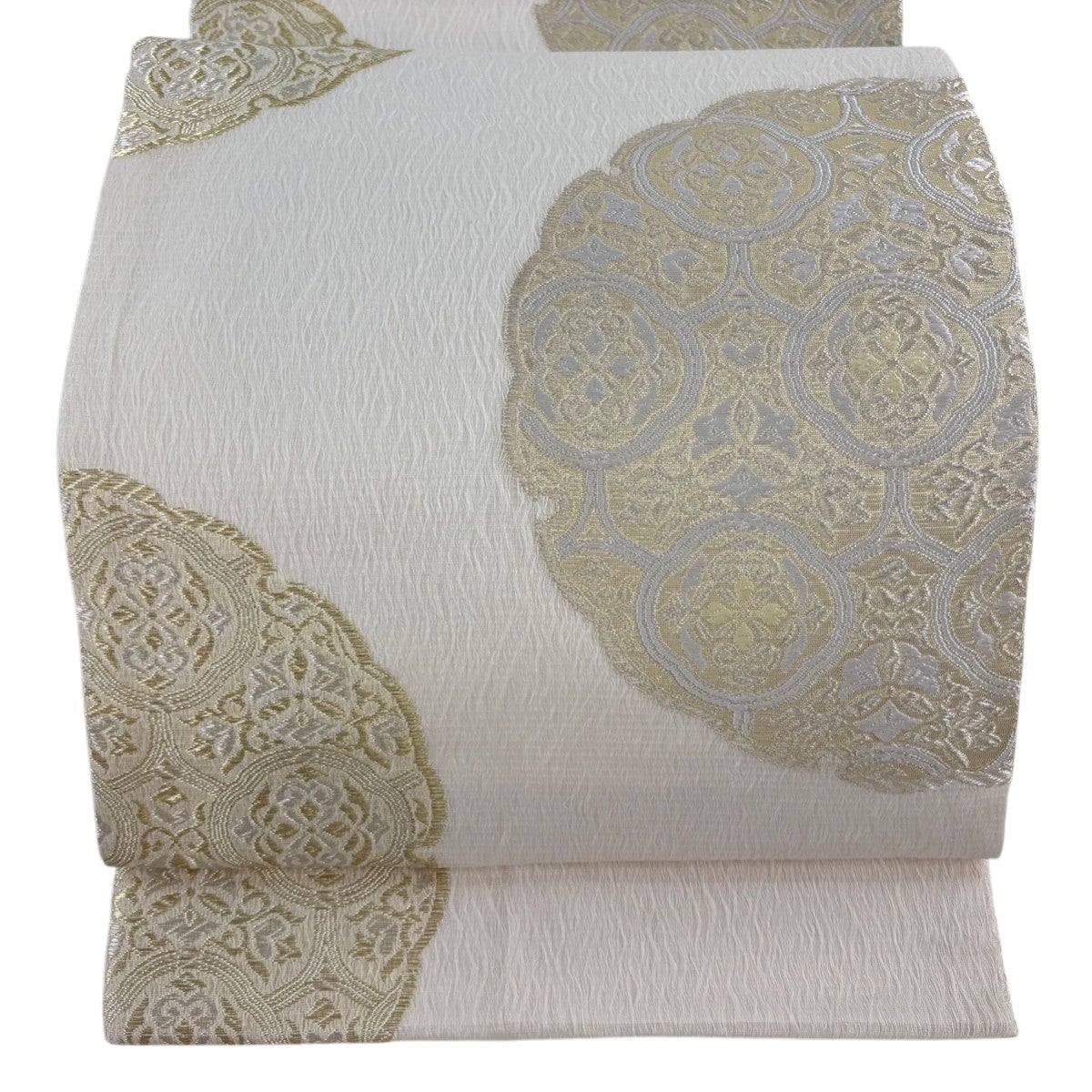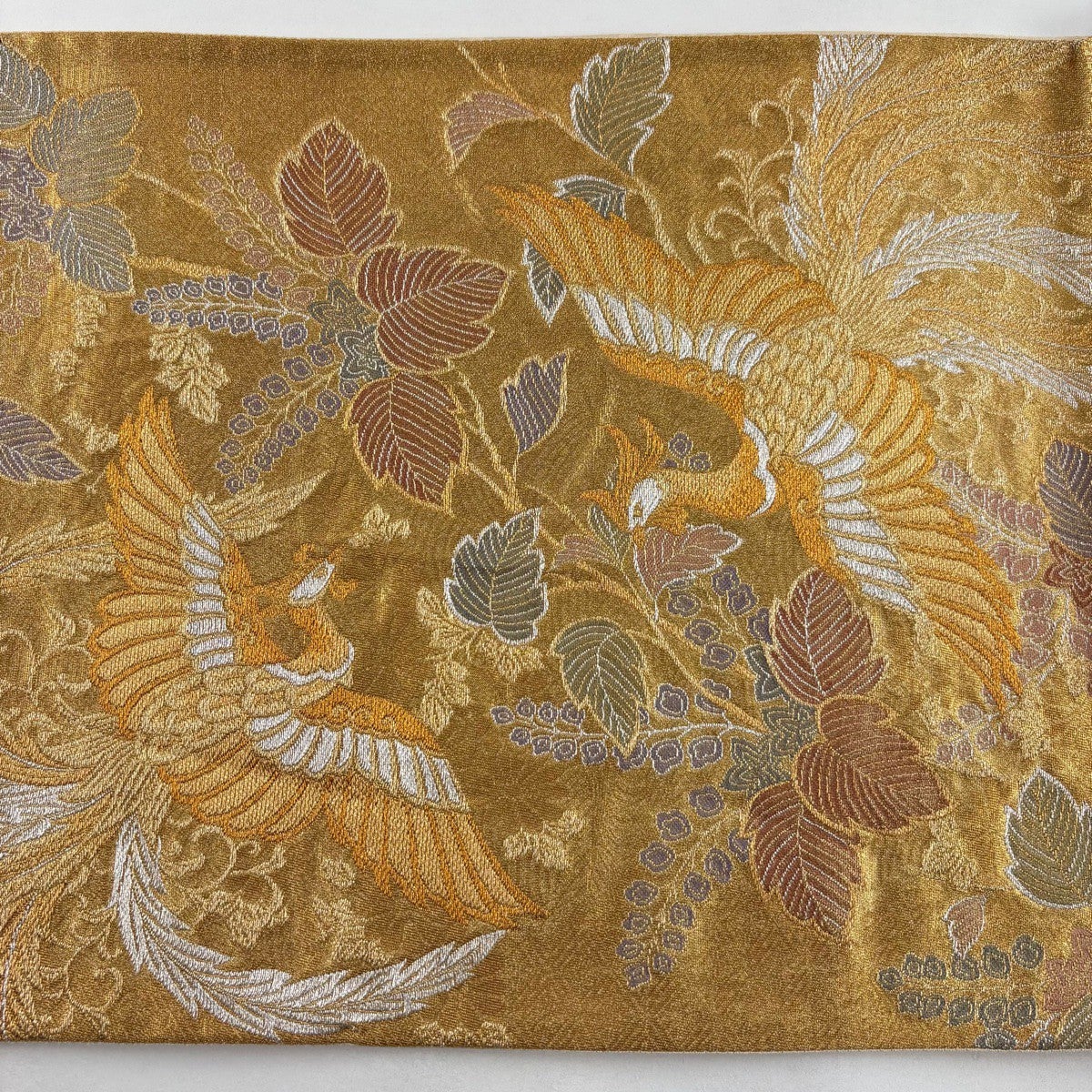袋帯とは女性用の主にフォーマル用の帯で第一礼装として着用されることが多く、形状は表地にのみ柄があり裏地は無地になるように袋状に織って作成されたため袋帯という名が付きました。 帯を締める際にはおめでたいことが重なりますようにという願いが込められている二重太鼓や成人式の際に振袖に見かけるふくら雀や文庫結びなどの変わり結びを用いて着用します。