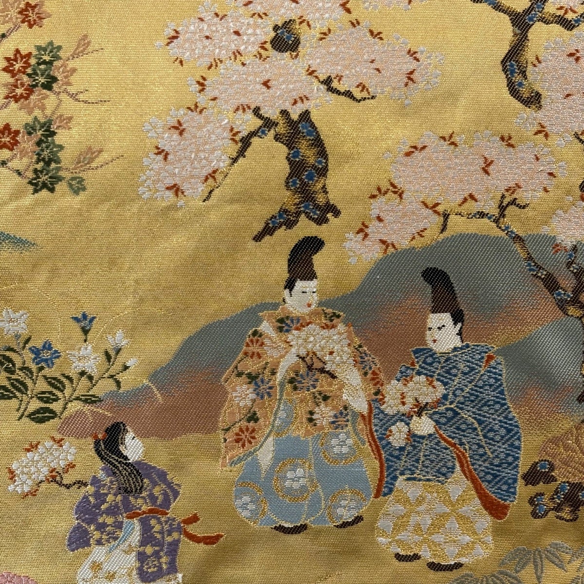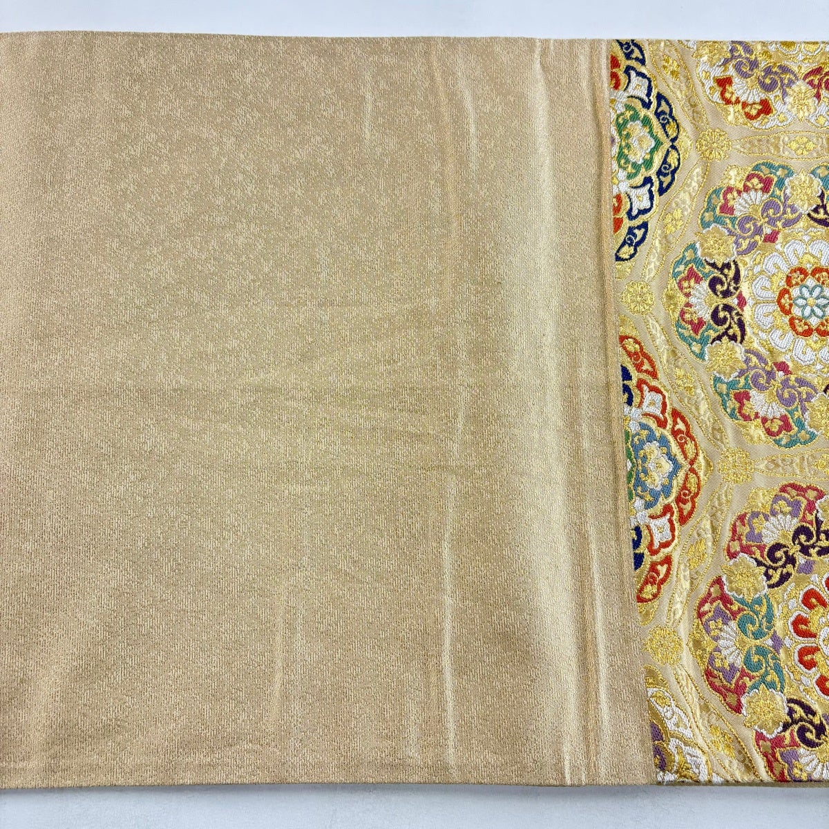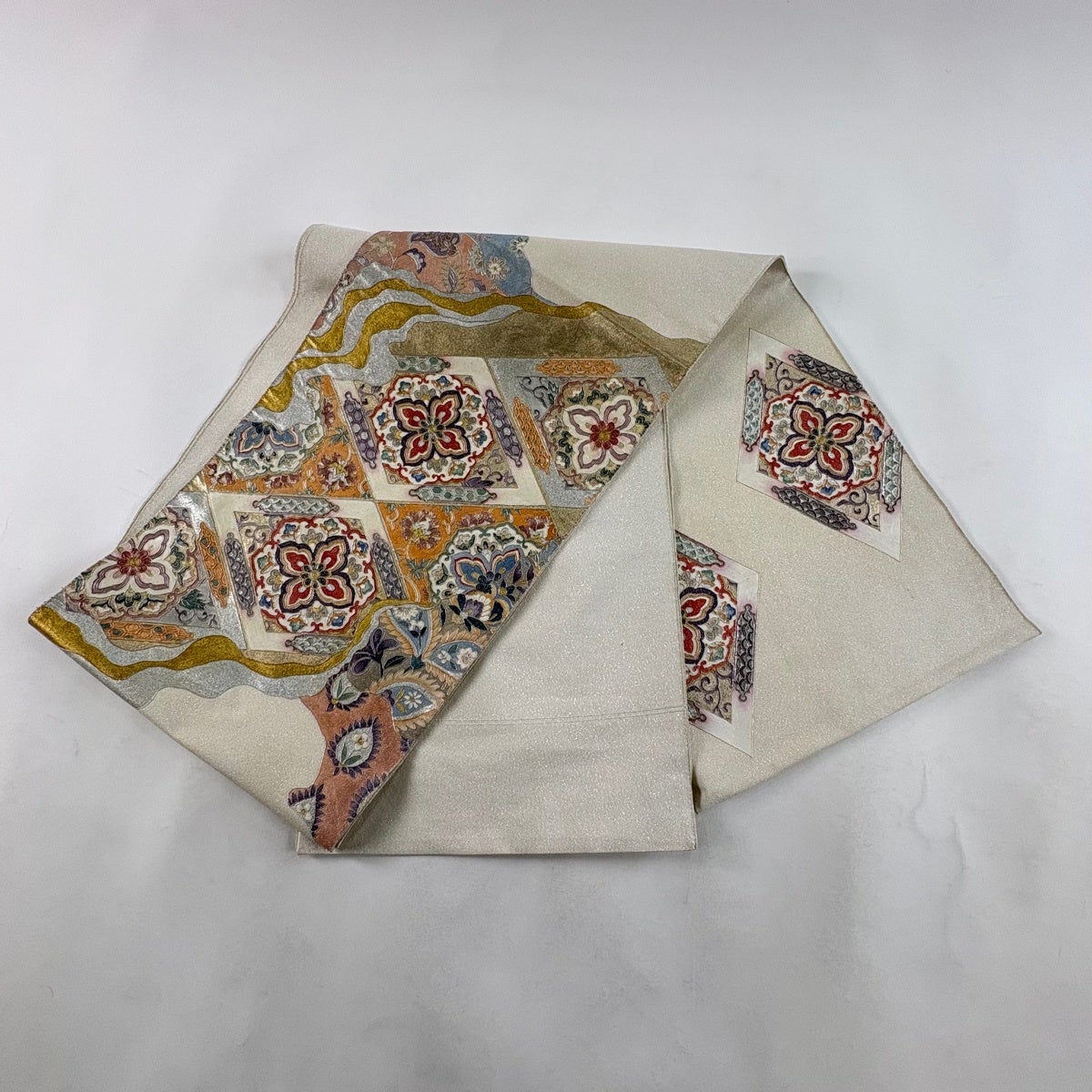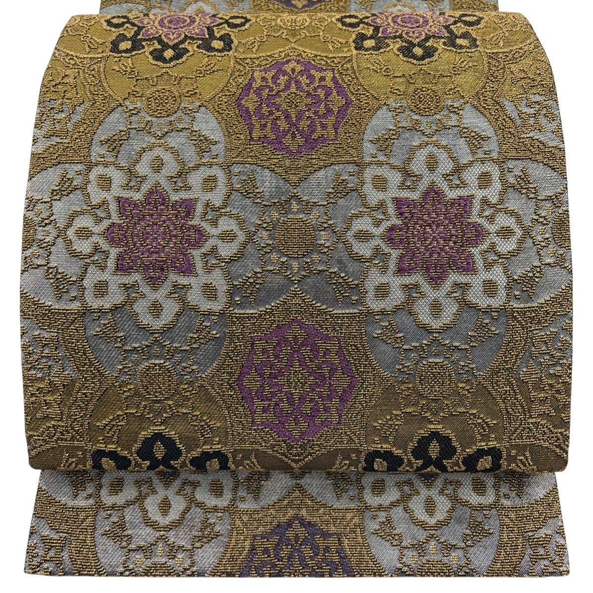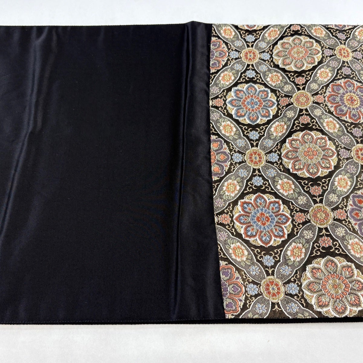 袋帯とは女性用の主にフォーマル用の帯で第一礼装として着用されることが多く、形状は表地にのみ柄があり裏地は無地になるように袋状に織って作成されたため袋帯という名が付きました。 帯を締める際にはおめでたいことが重なりますようにという願いが込められている二重太鼓や成人式の際に振袖に見かけるふくら雀や文庫結びなどの変わり結びを用いて着用します。