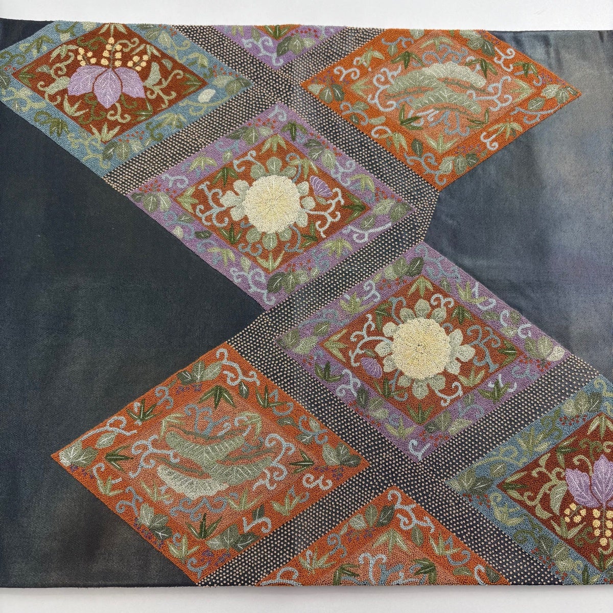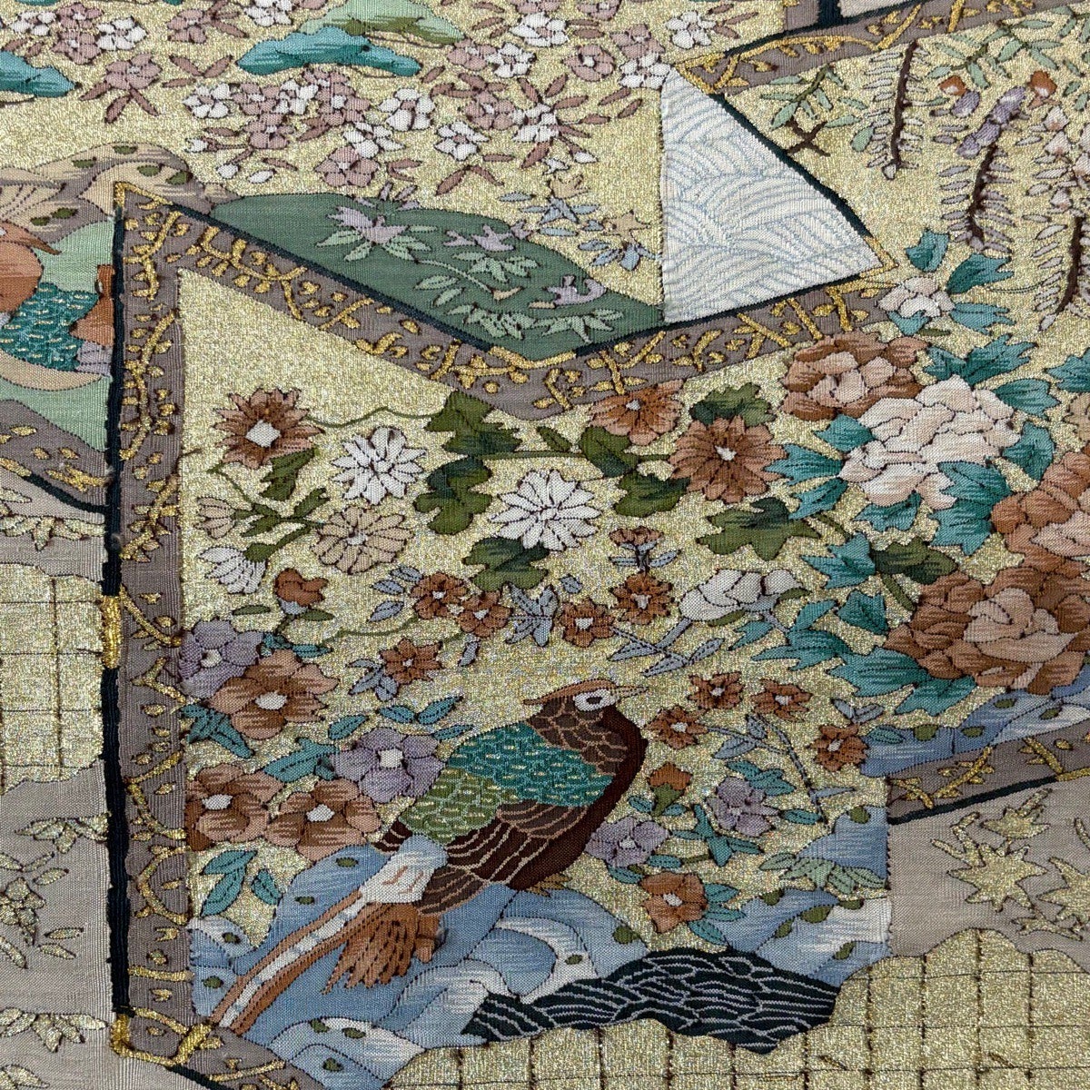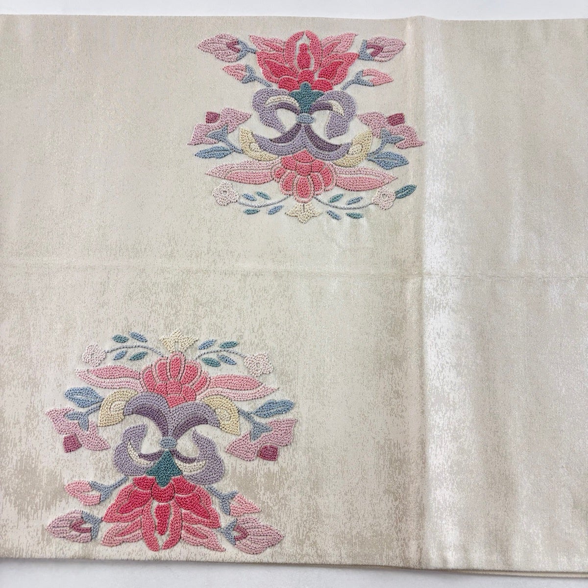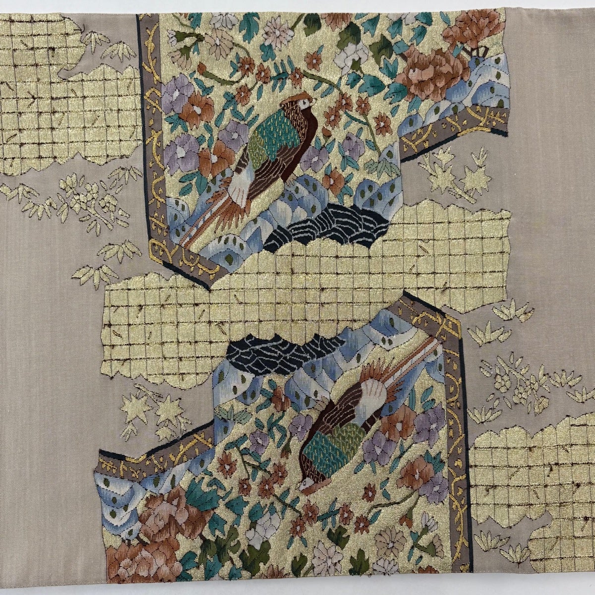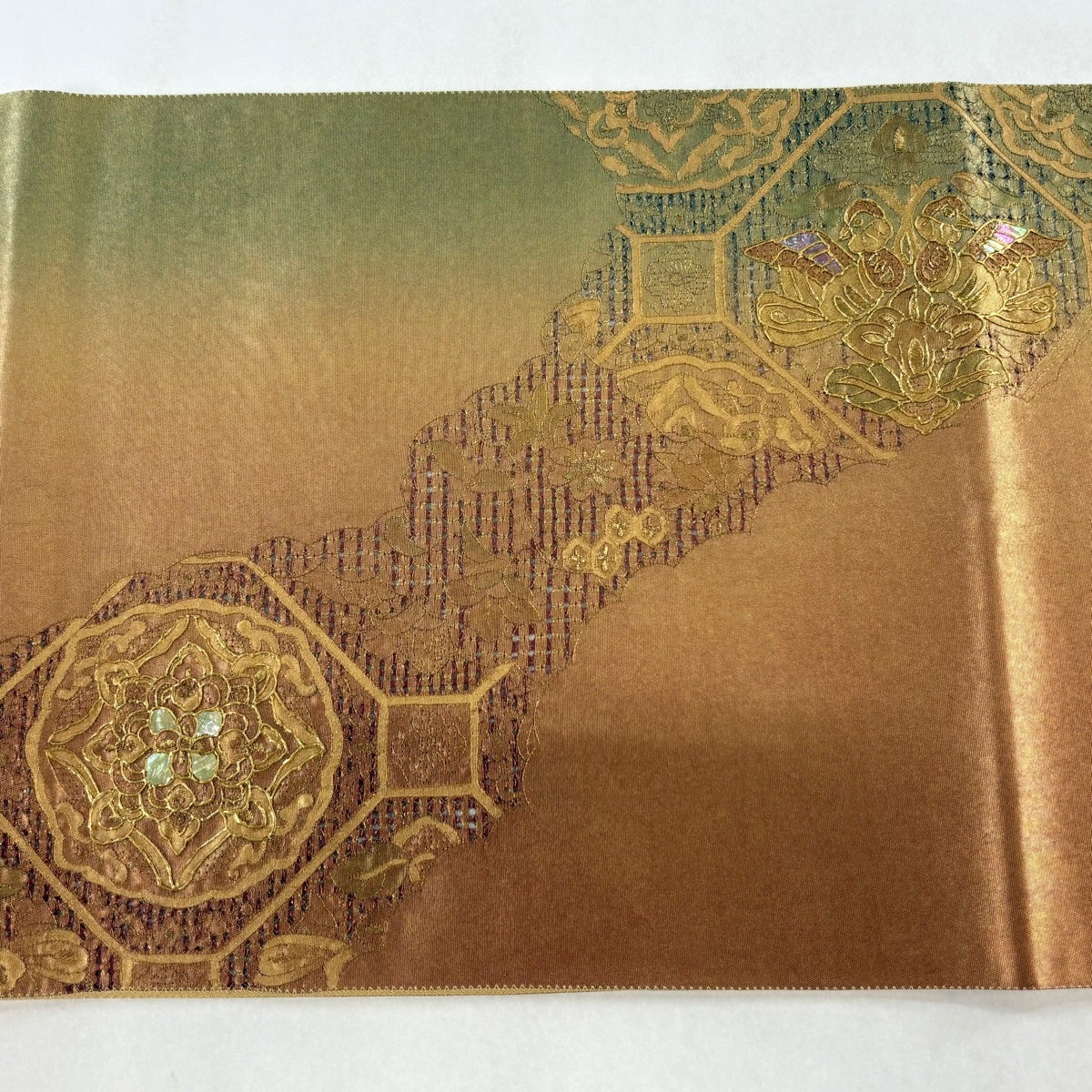 袋帯とは女性用の主にフォーマル用の帯で第一礼装として着用されることが多く、形状は表地にのみ柄があり裏地は無地になるように袋状に織って作成されたため袋帯という名が付きました。 帯を締める際にはおめでたいことが重なりますようにという願いが込められている二重太鼓や成人式の際に振袖に見かけるふくら雀や文庫結びなどの変わり結びを用いて着用します。