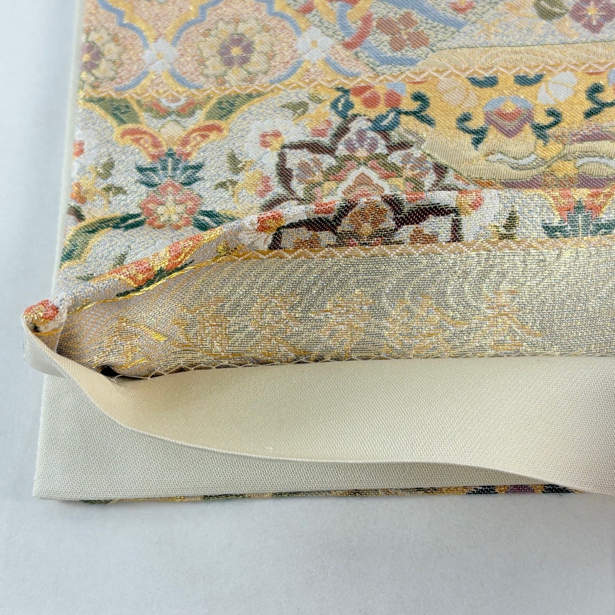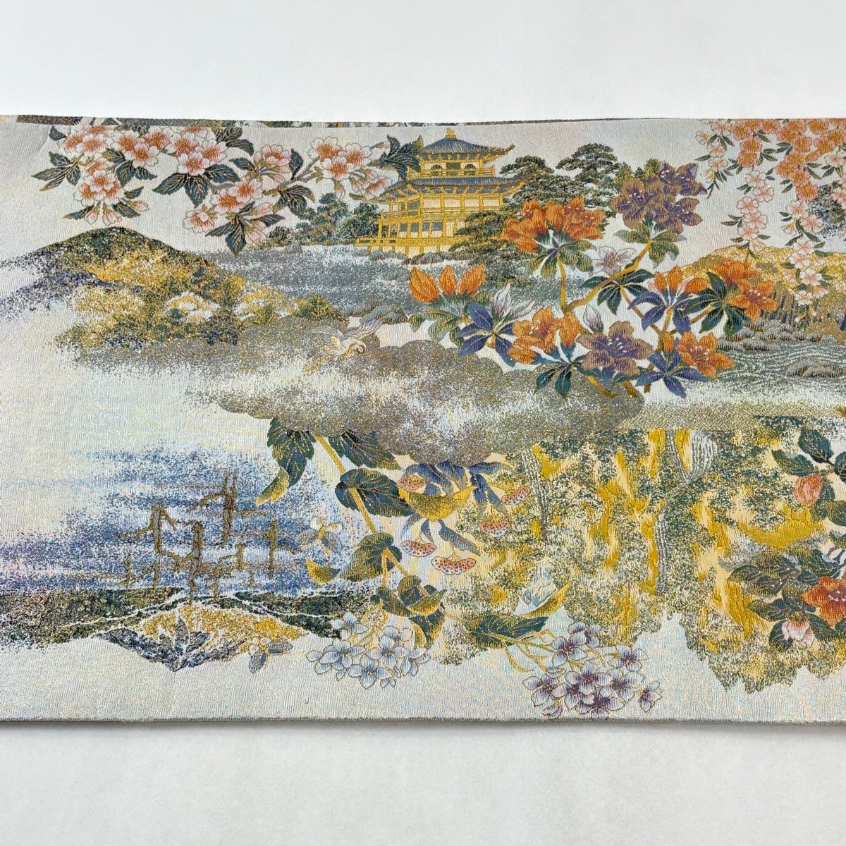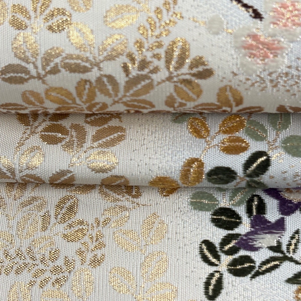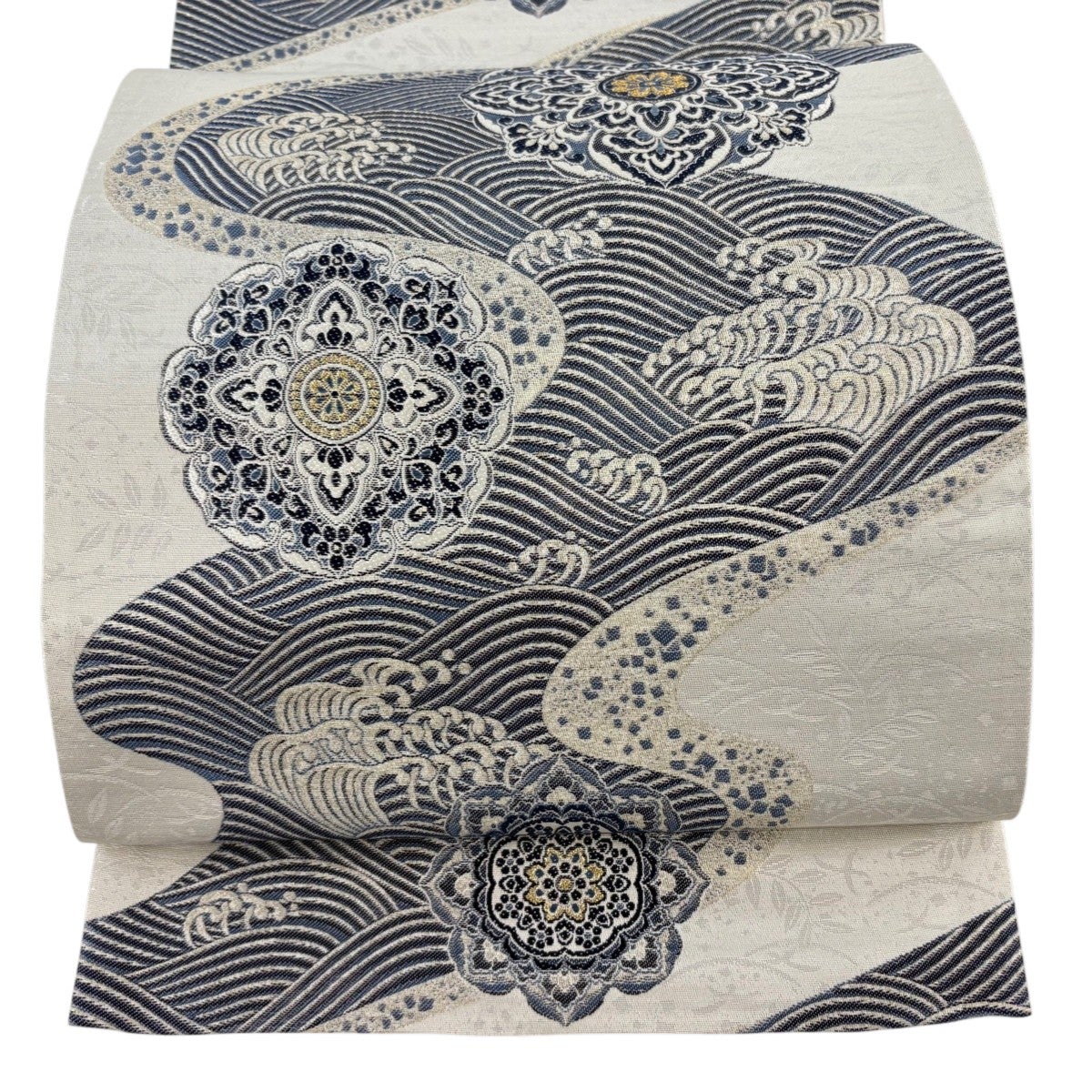 袋帯とは女性用の主にフォーマル用の帯で第一礼装として着用されることが多く、形状は表地にのみ柄があり裏地は無地になるように袋状に織って作成されたため袋帯という名が付きました。 帯を締める際にはおめでたいことが重なりますようにという願いが込められている二重太鼓や成人式の際に振袖に見かけるふくら雀や文庫結びなどの変わり結びを用いて着用します。