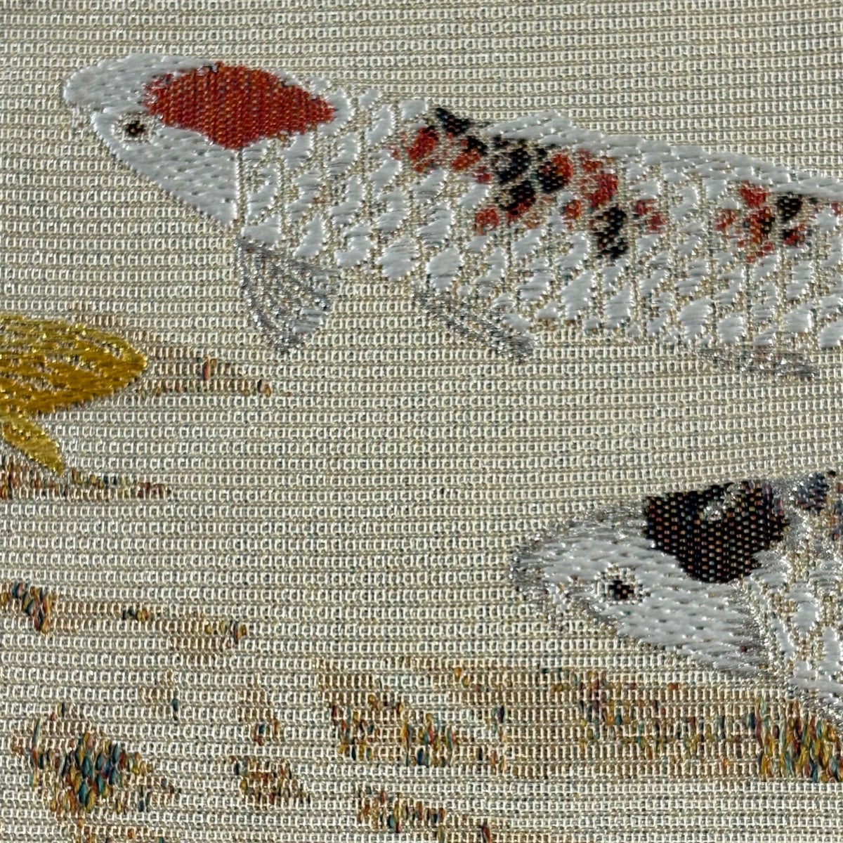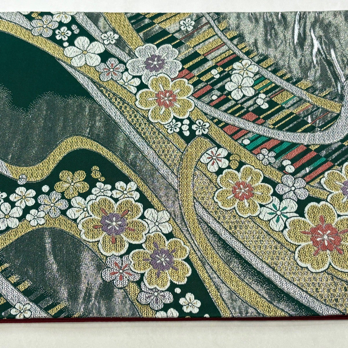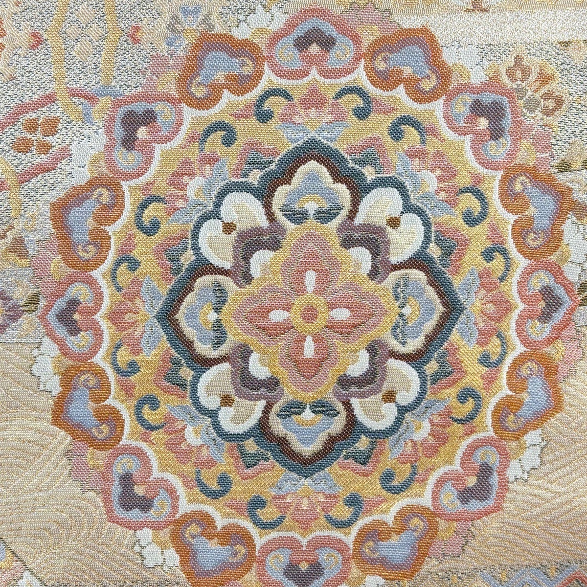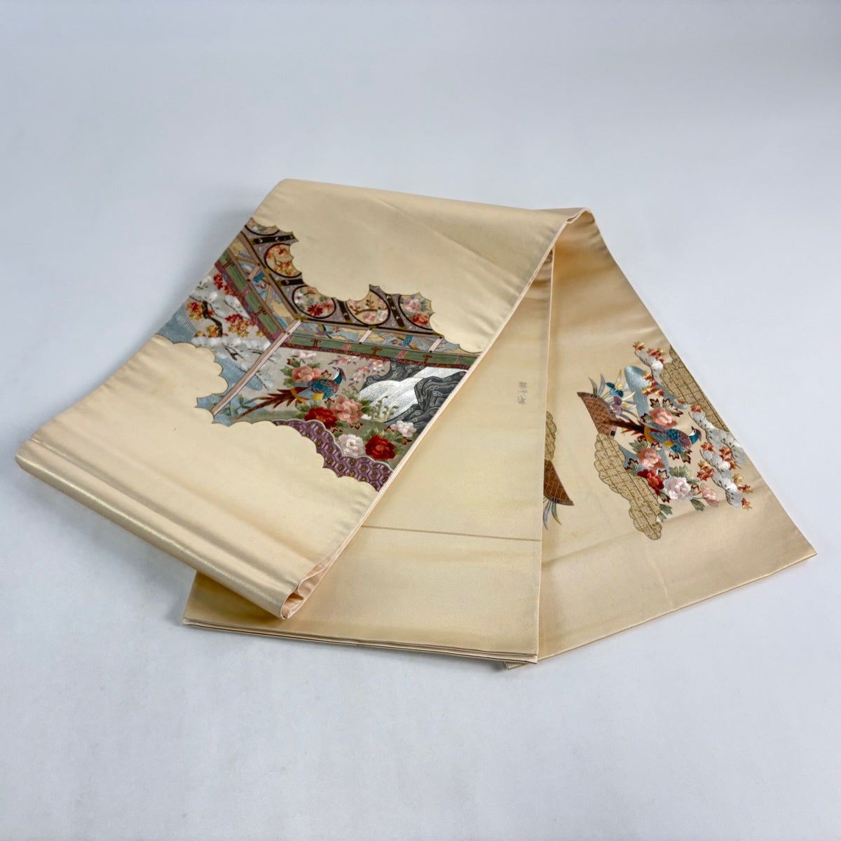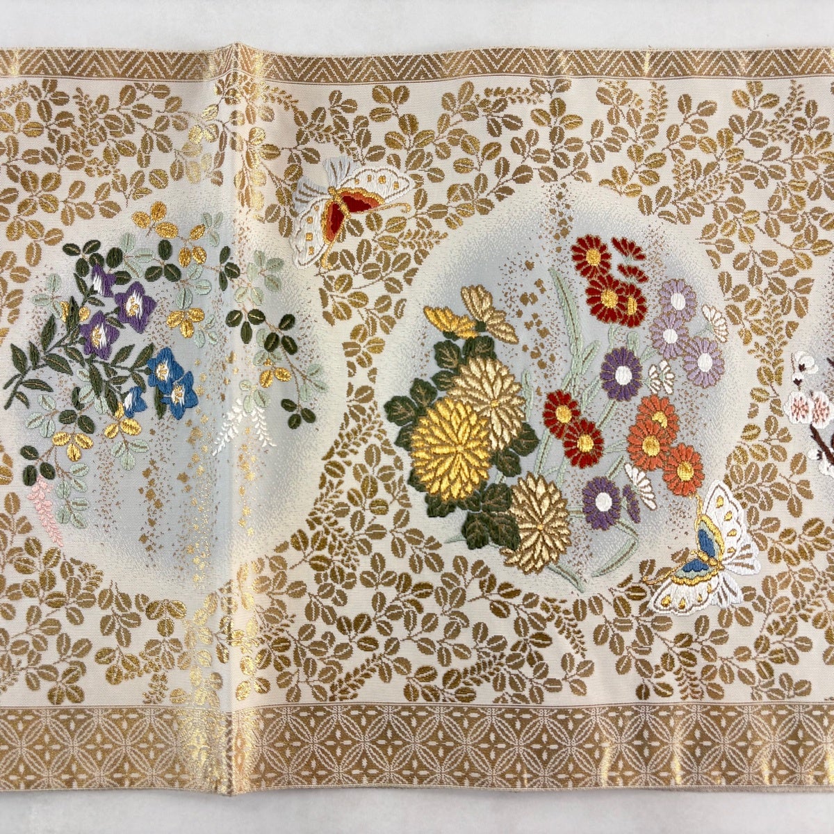 袋帯とは女性用の主にフォーマル用の帯で第一礼装として着用されることが多く、形状は表地にのみ柄があり裏地は無地になるように袋状に織って作成されたため袋帯という名が付きました。 帯を締める際にはおめでたいことが重なりますようにという願いが込められている二重太鼓や成人式の際に振袖に見かけるふくら雀や文庫結びなどの変わり結びを用いて着用します。