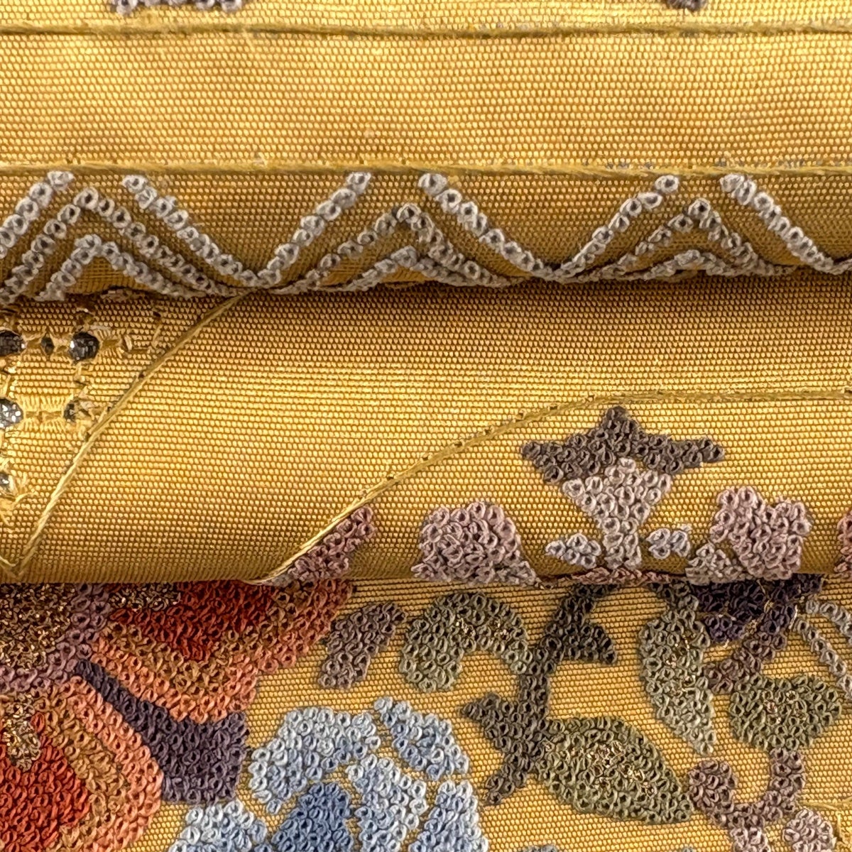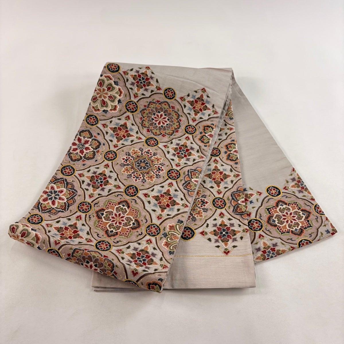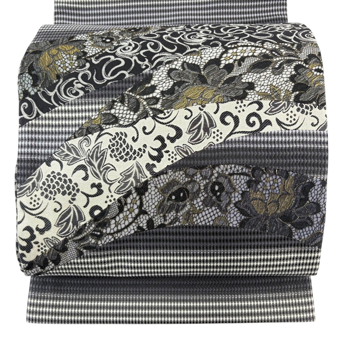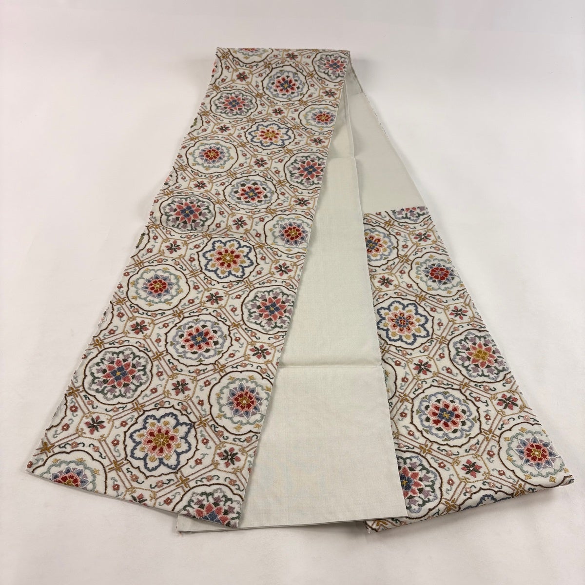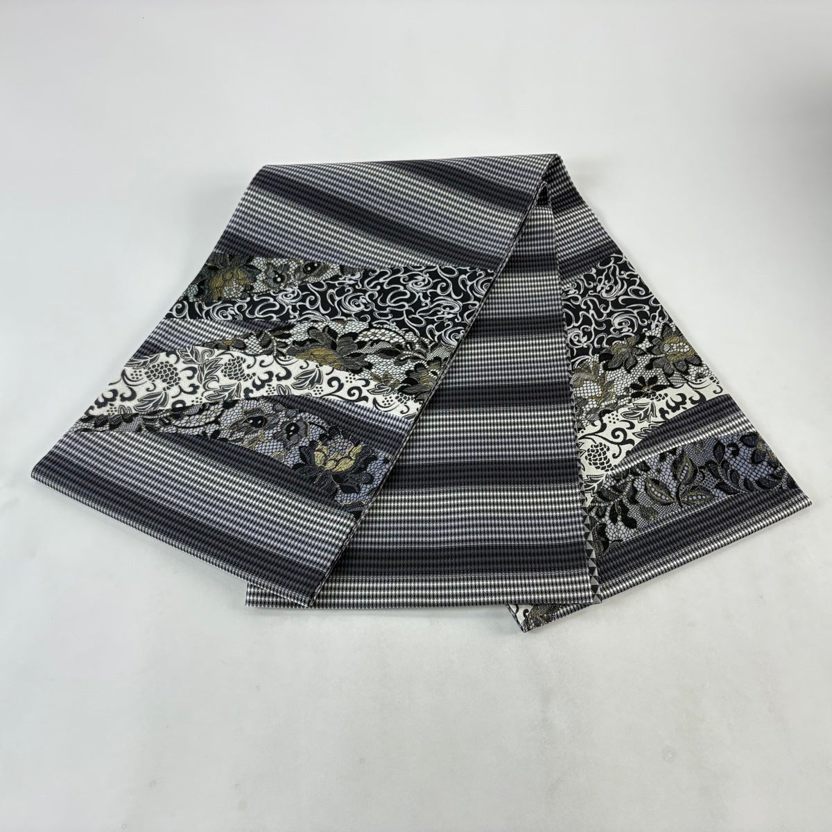 袋帯とは女性用の主にフォーマル用の帯で第一礼装として着用されることが多く、形状は表地にのみ柄があり裏地は無地になるように袋状に織って作成されたため袋帯という名が付きました。 帯を締める際にはおめでたいことが重なりますようにという願いが込められている二重太鼓や成人式の際に振袖に見かけるふくら雀や文庫結びなどの変わり結びを用いて着用します。