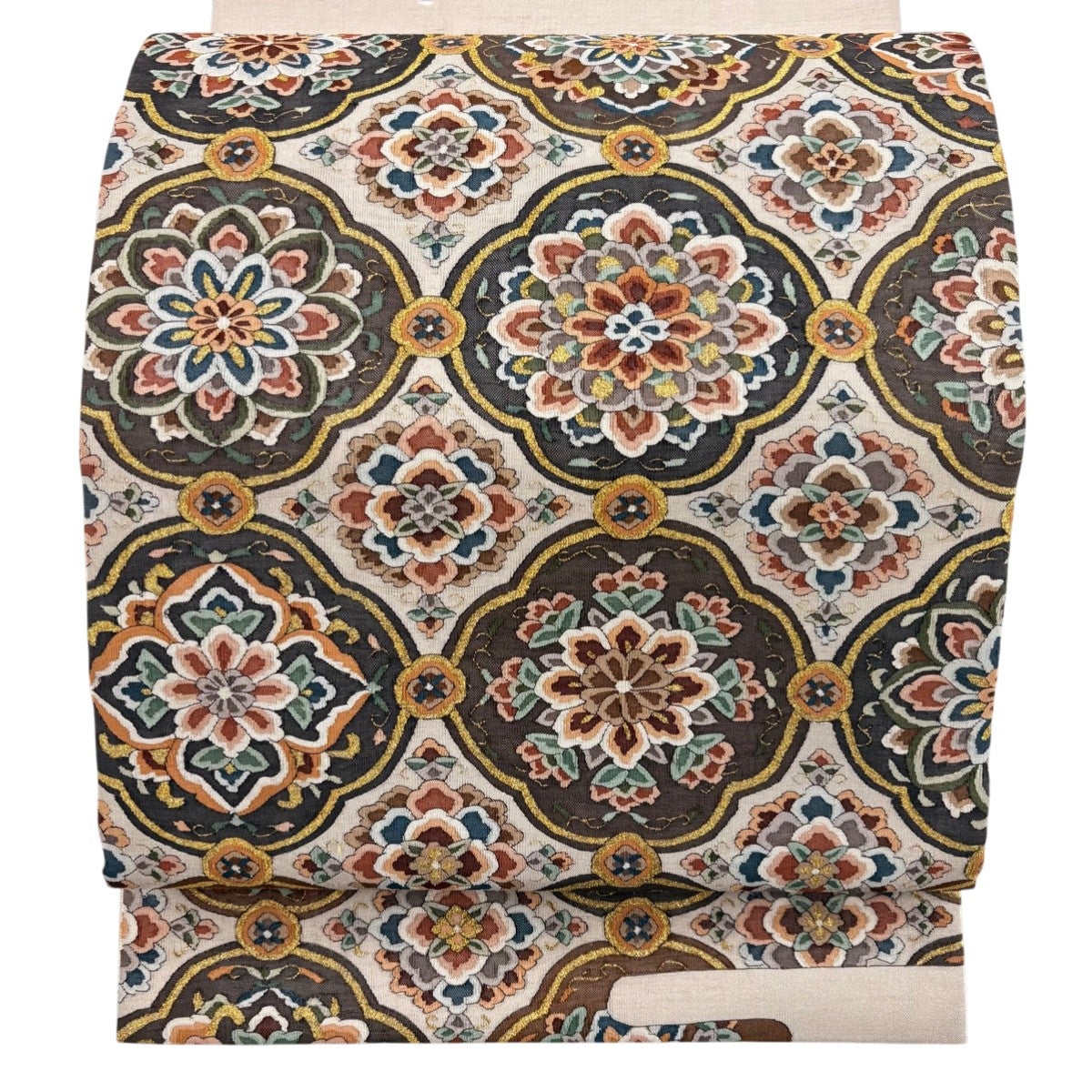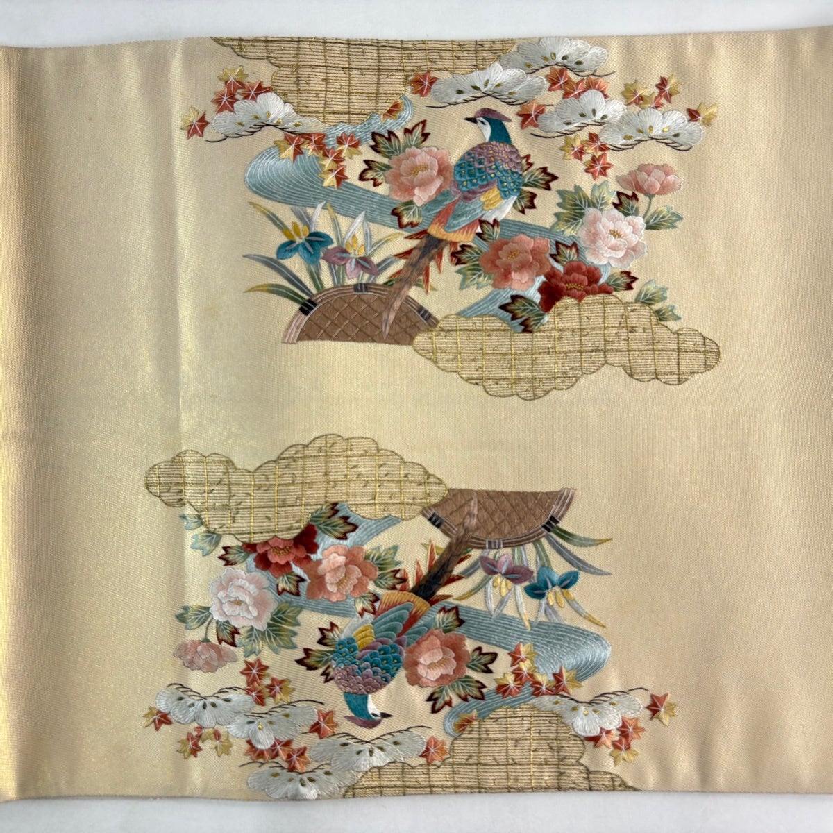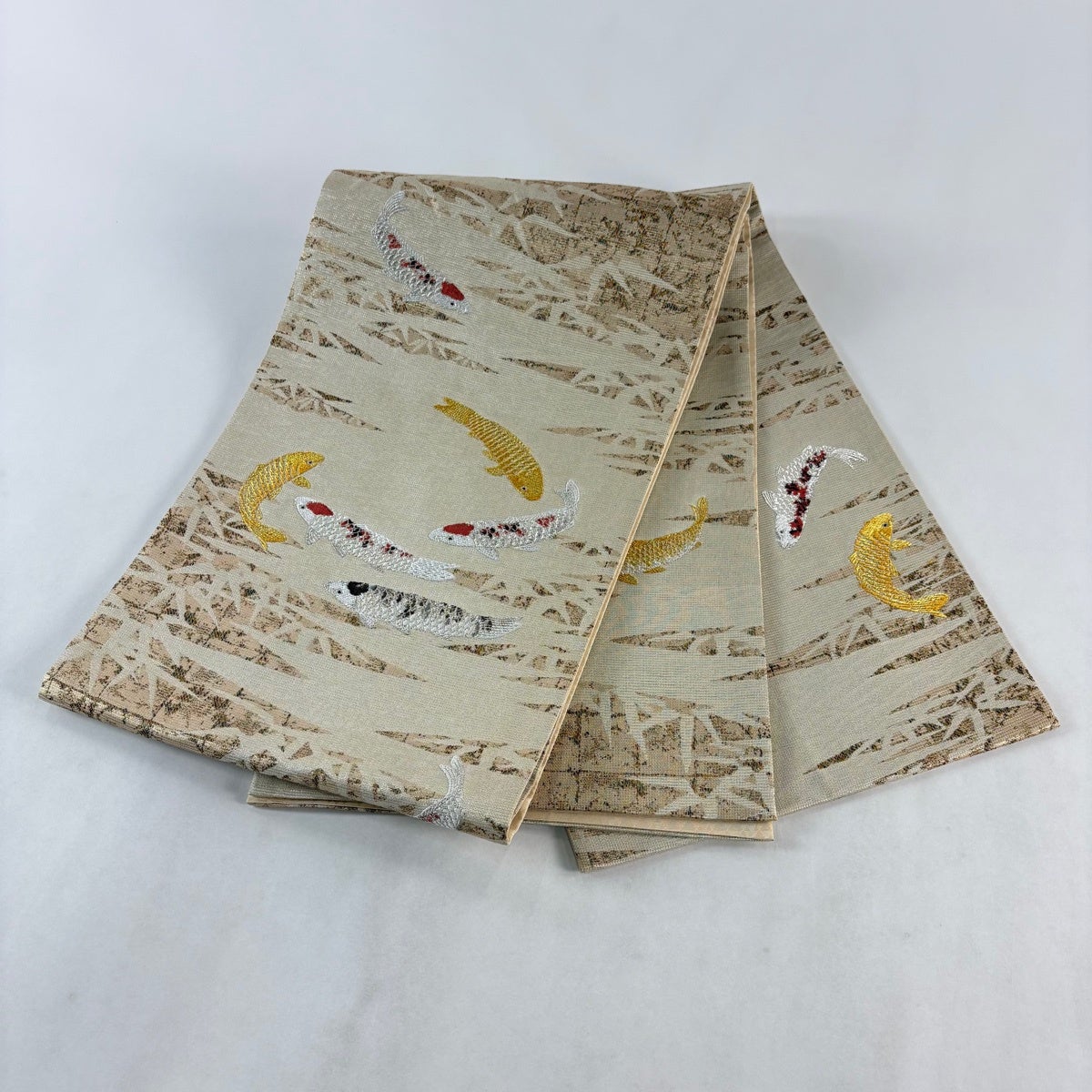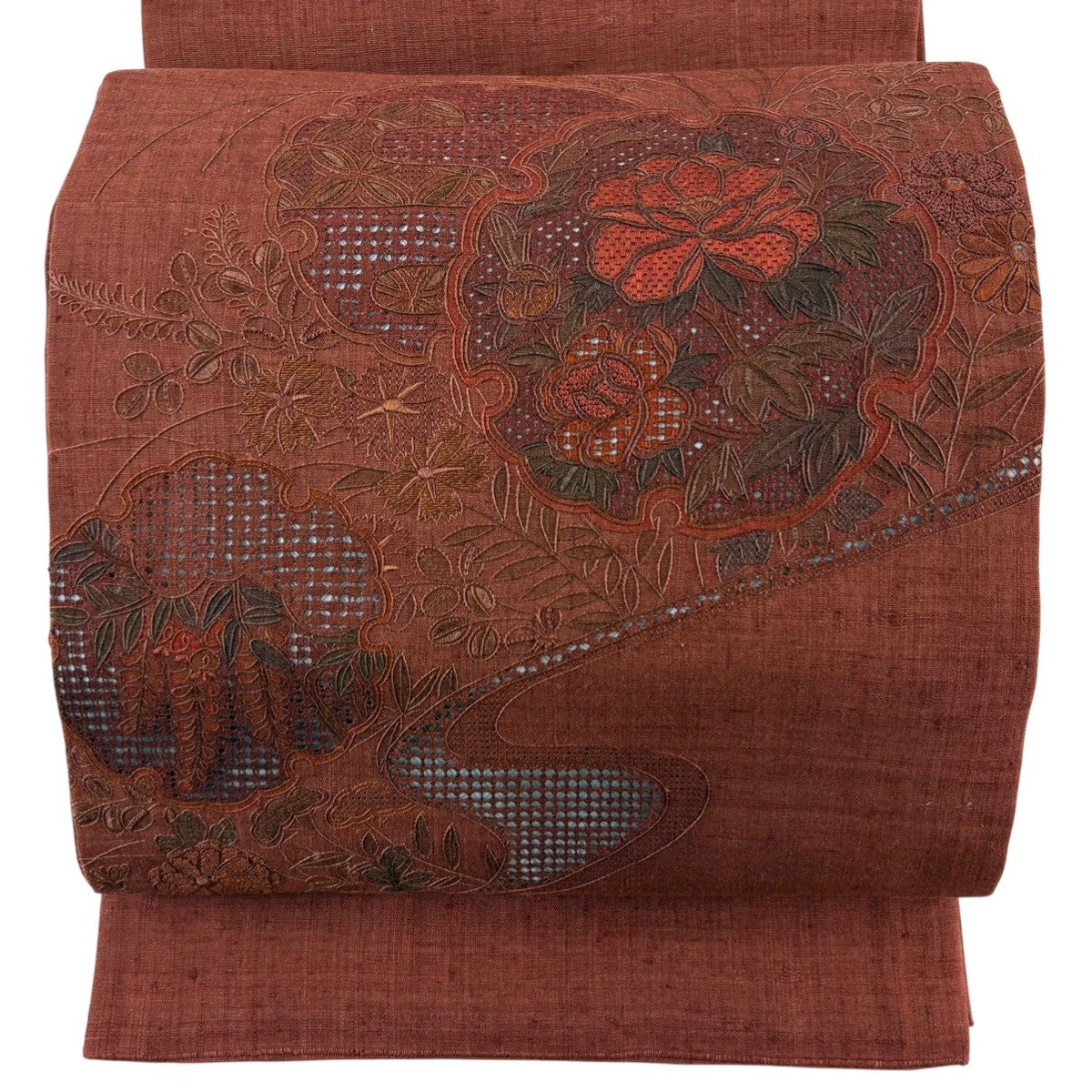 袋帯とは女性用の主にフォーマル用の帯で第一礼装として着用されることが多く、形状は表地にのみ柄があり裏地は無地になるように袋状に織って作成されたため袋帯という名が付きました。 帯を締める際にはおめでたいことが重なりますようにという願いが込められている二重太鼓や成人式の際に振袖に見かけるふくら雀や文庫結びなどの変わり結びを用いて着用します。