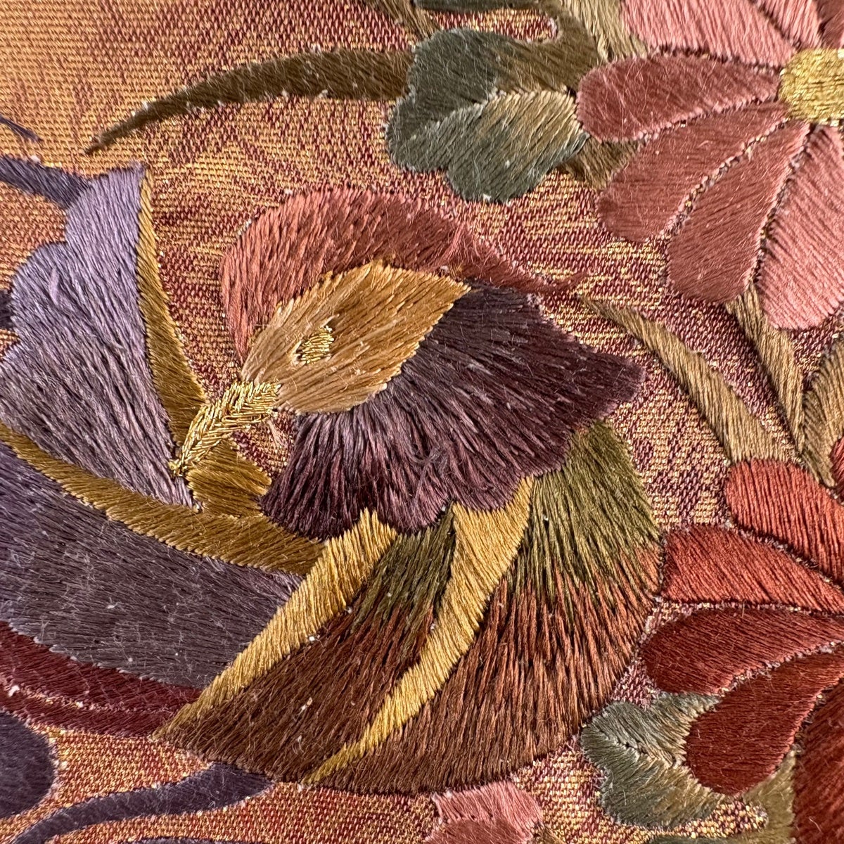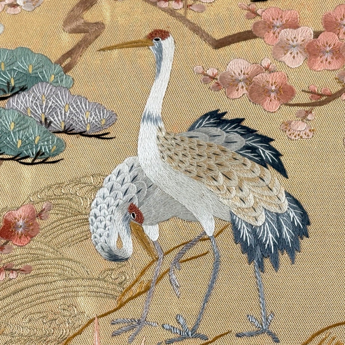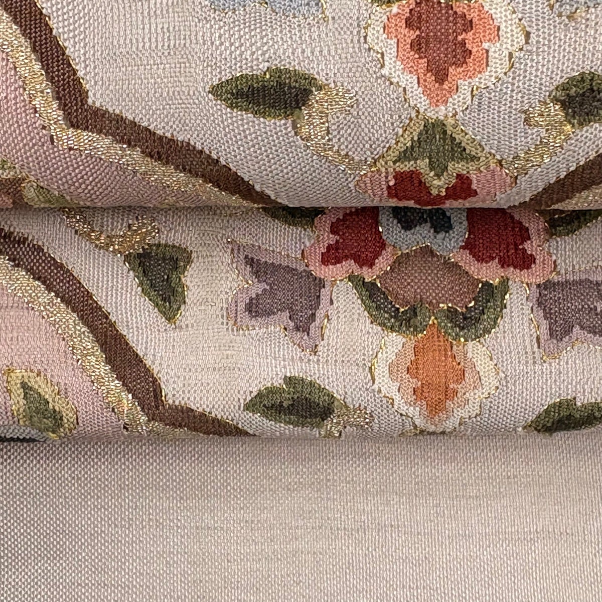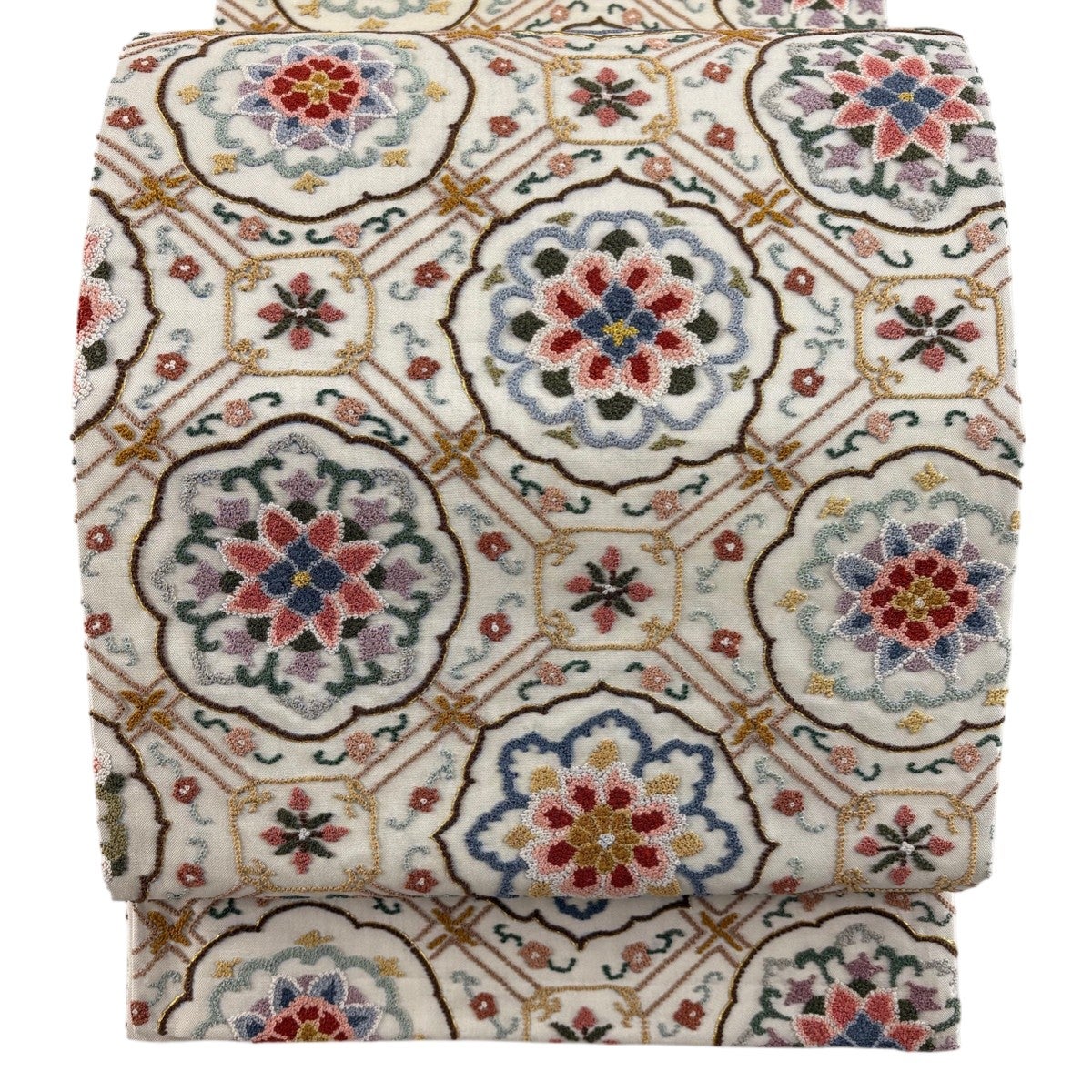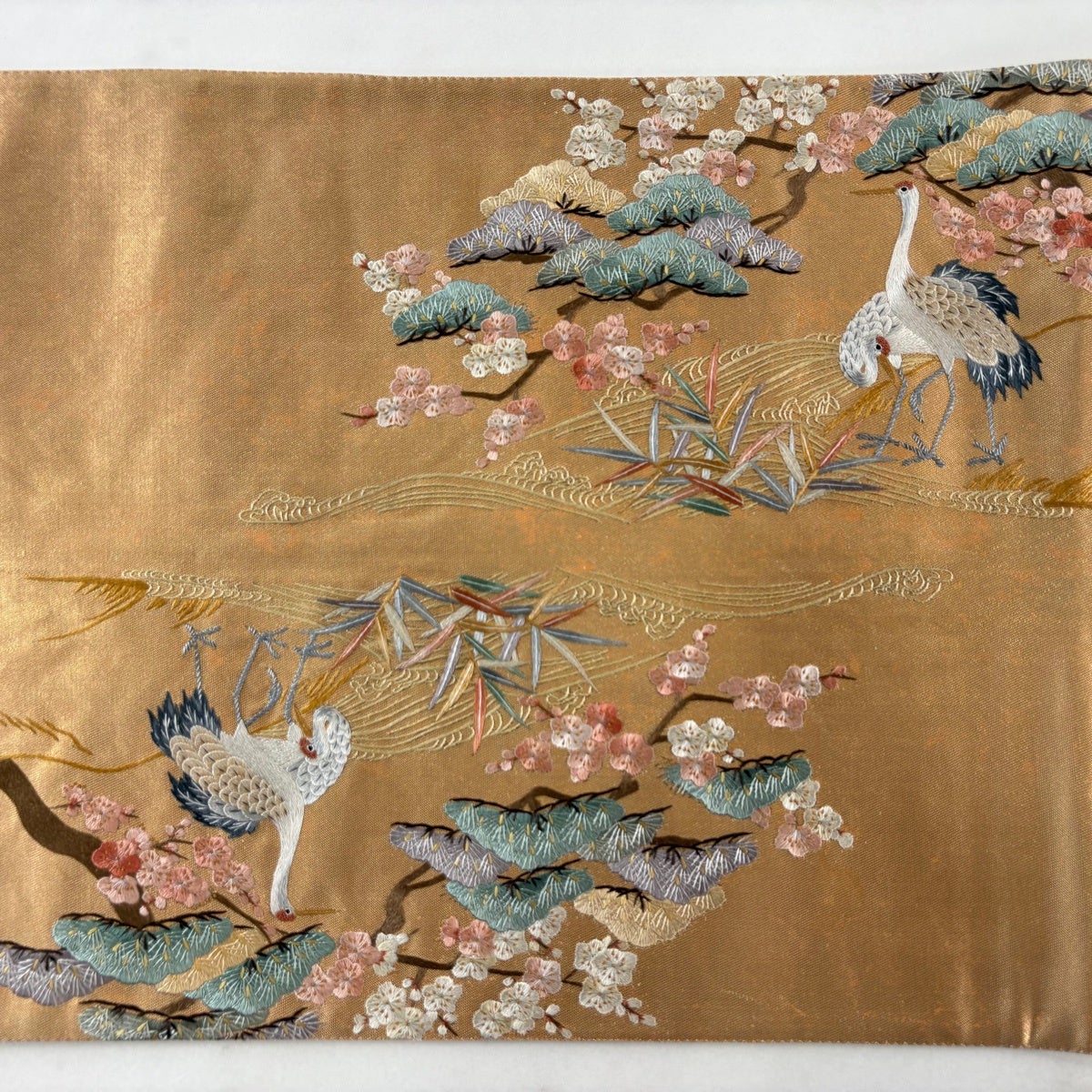 袋帯とは女性用の主にフォーマル用の帯で第一礼装として着用されることが多く、形状は表地にのみ柄があり裏地は無地になるように袋状に織って作成されたため袋帯という名が付きました。 帯を締める際にはおめでたいことが重なりますようにという願いが込められている二重太鼓や成人式の際に振袖に見かけるふくら雀や文庫結びなどの変わり結びを用いて着用します。