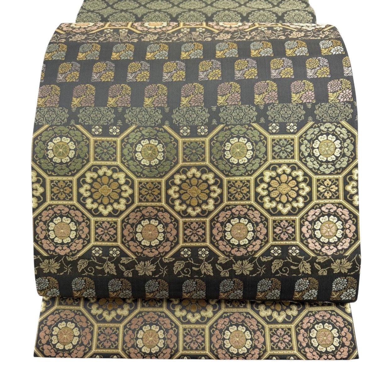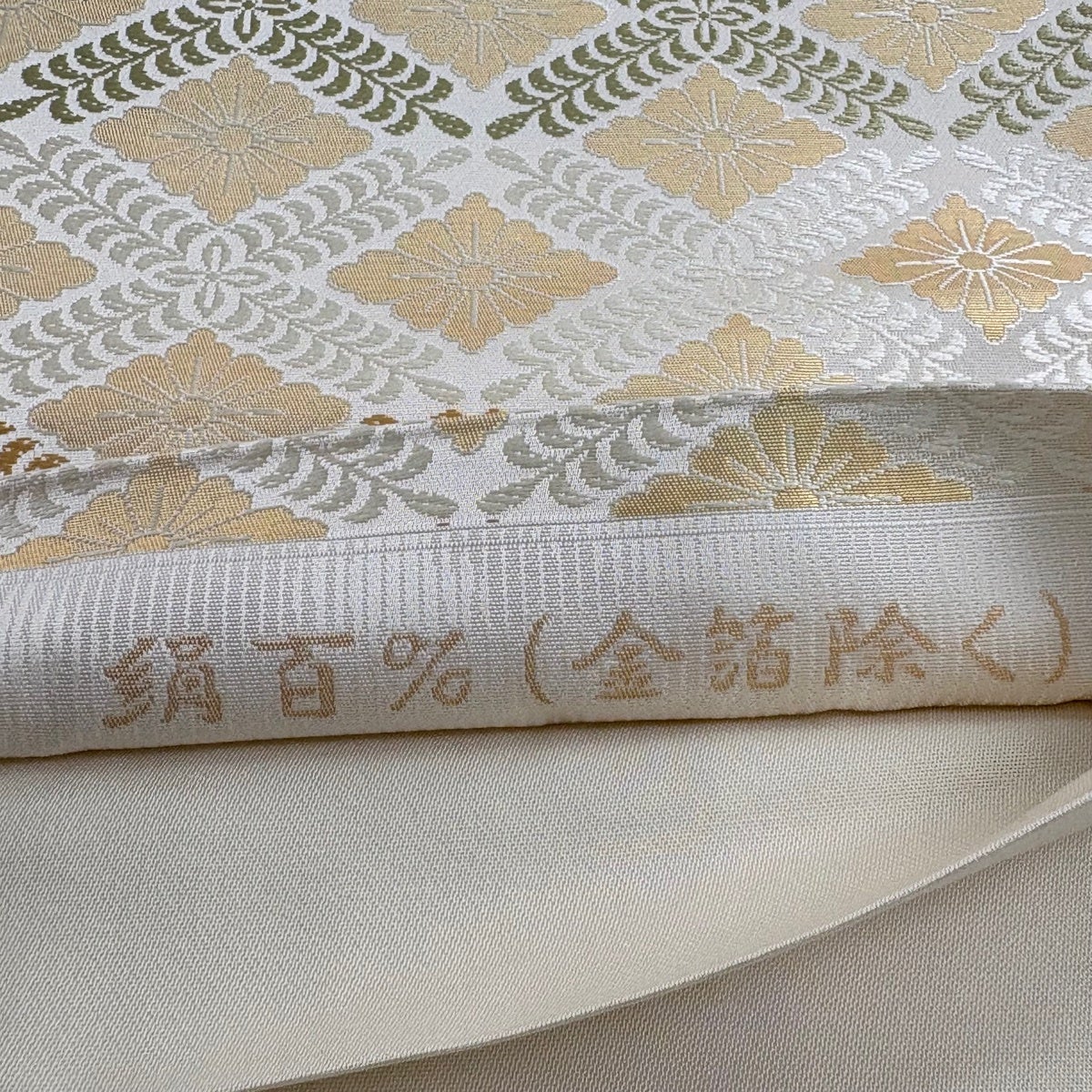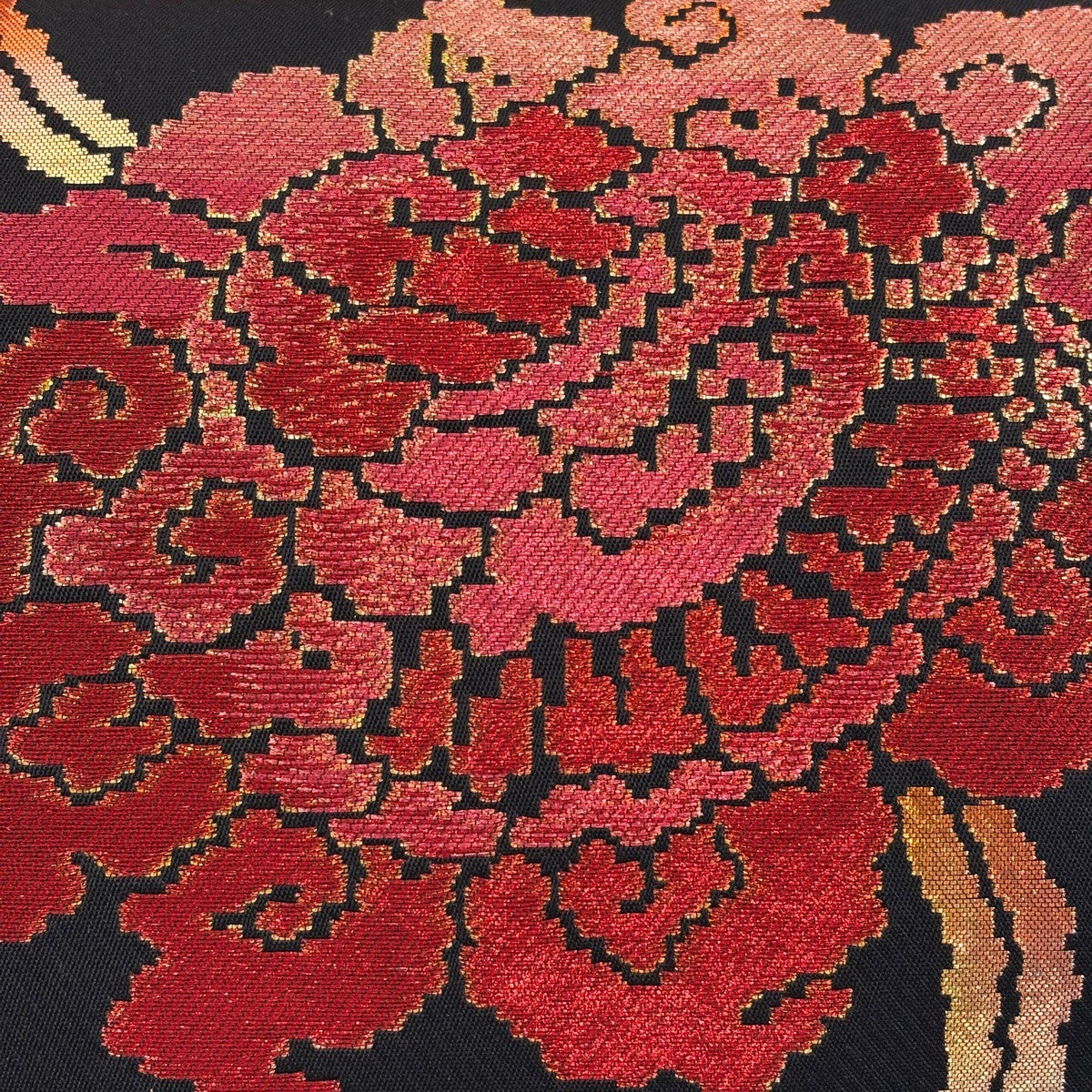 袋帯とは女性用の主にフォーマル用の帯で第一礼装として着用されることが多く、形状は表地にのみ柄があり裏地は無地になるように袋状に織って作成されたため袋帯という名が付きました。 帯を締める際にはおめでたいことが重なりますようにという願いが込められている二重太鼓や成人式の際に振袖に見かけるふくら雀や文庫結びなどの変わり結びを用いて着用します。