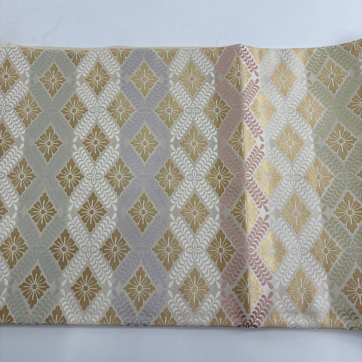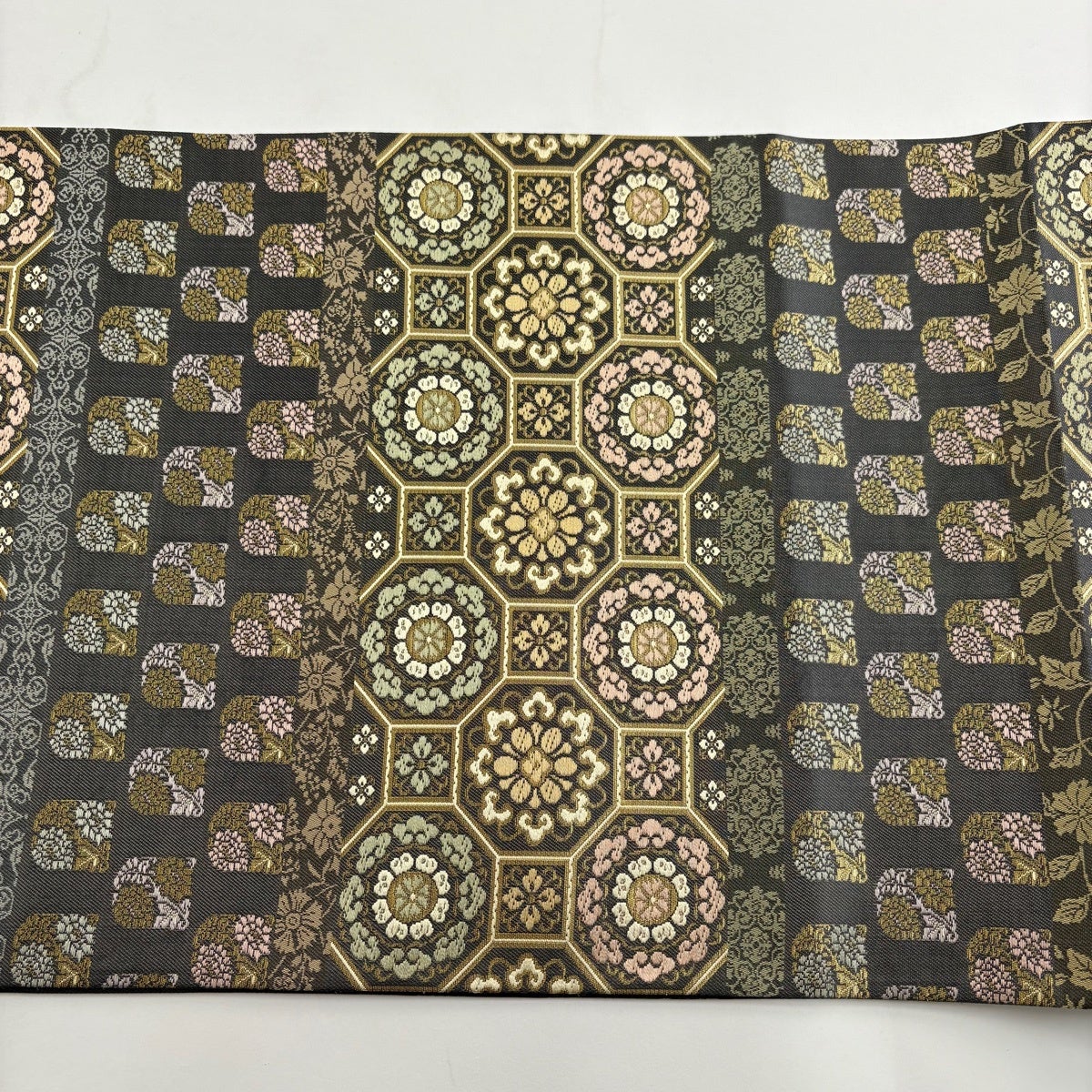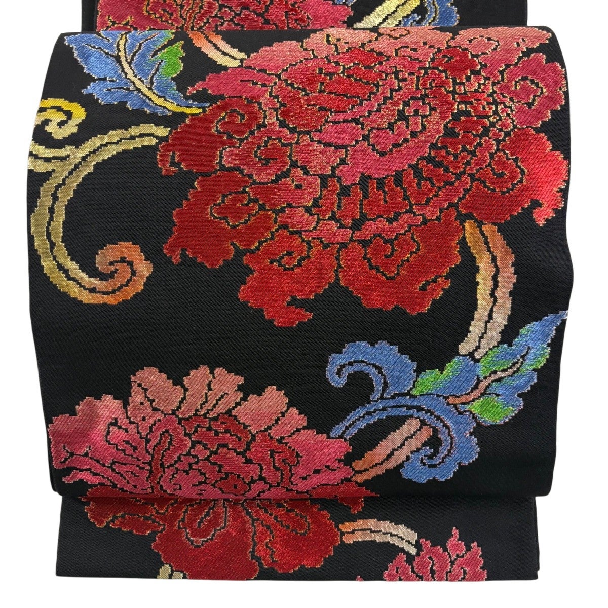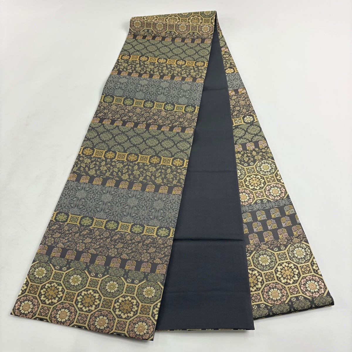 袋帯とは女性用の主にフォーマル用の帯で第一礼装として着用されることが多く、形状は表地にのみ柄があり裏地は無地になるように袋状に織って作成されたため袋帯という名が付きました。 帯を締める際にはおめでたいことが重なりますようにという願いが込められている二重太鼓や成人式の際に振袖に見かけるふくら雀や文庫結びなどの変わり結びを用いて着用します。