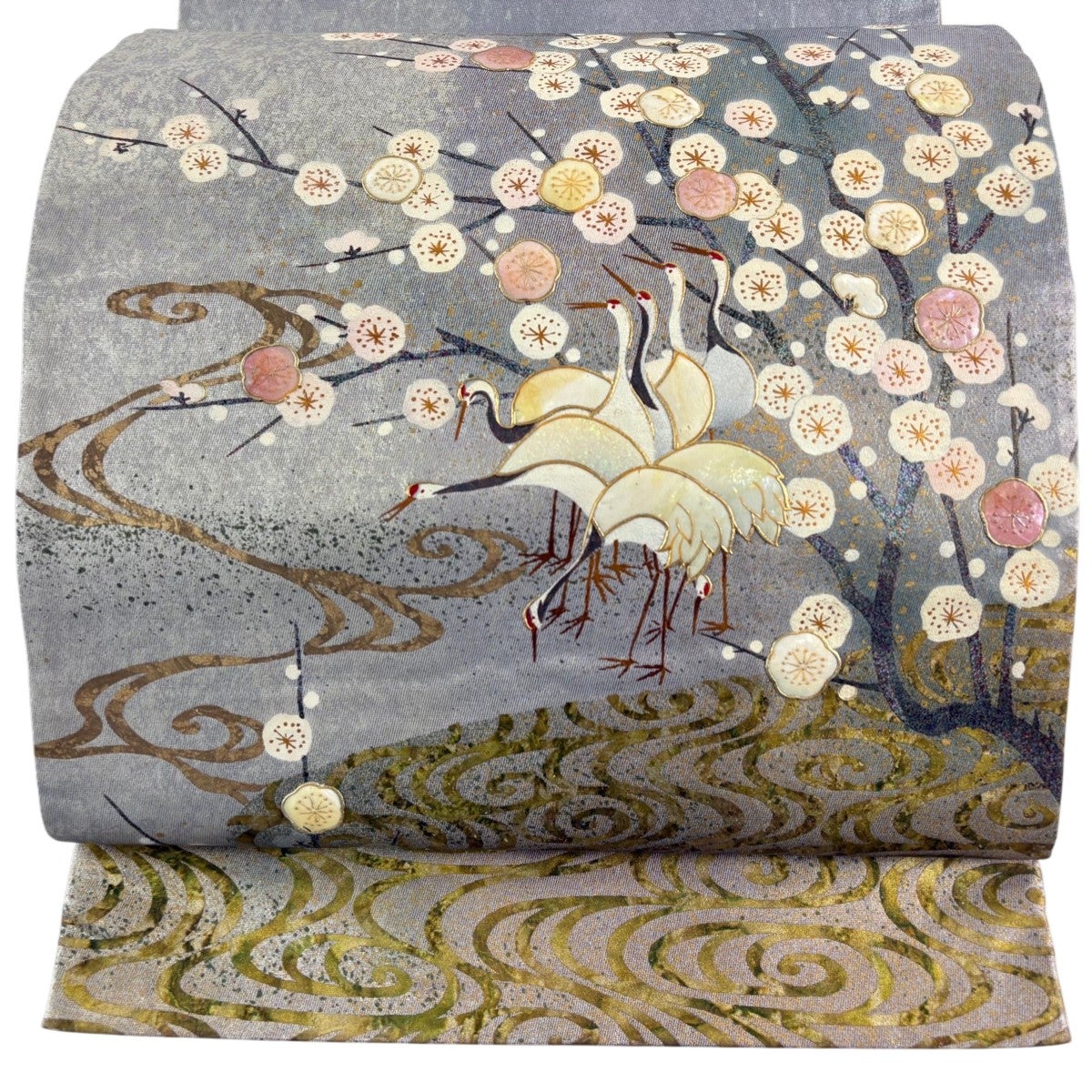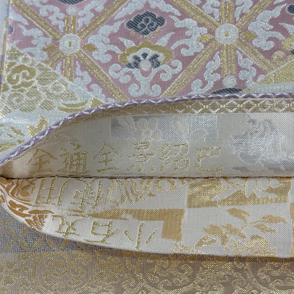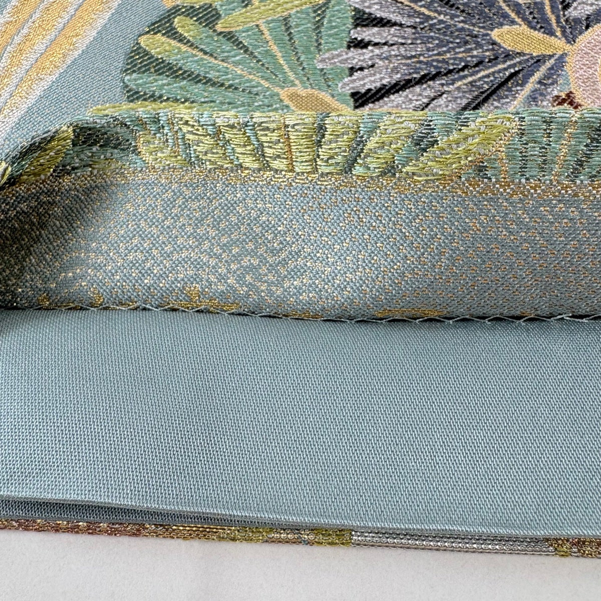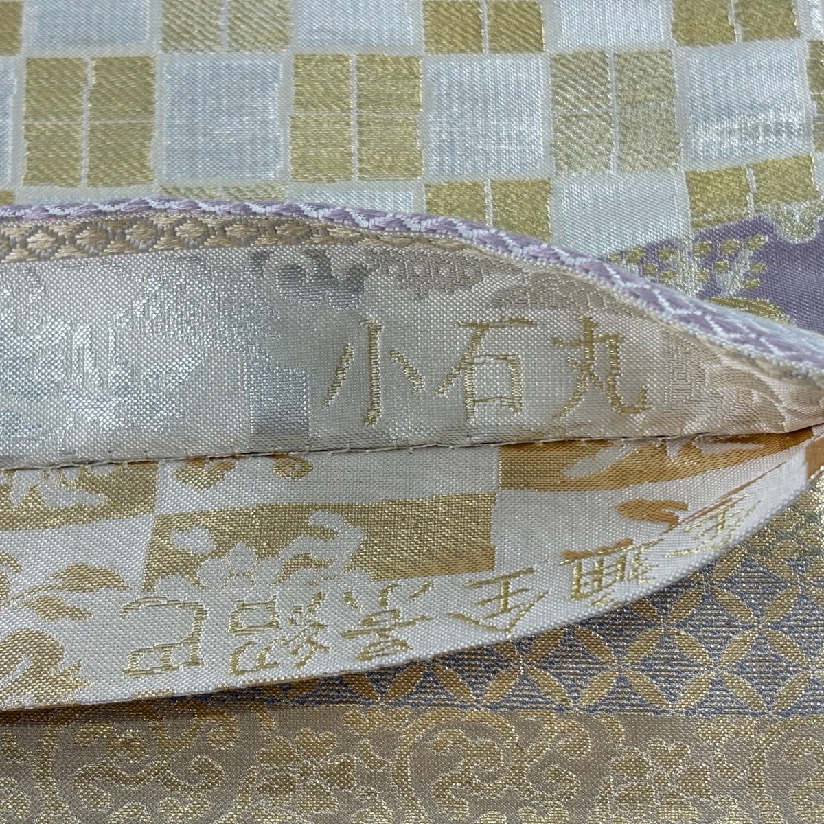 袋帯とは女性用の主にフォーマル用の帯で第一礼装として着用されることが多く、形状は表地にのみ柄があり裏地は無地になるように袋状に織って作成されたため袋帯という名が付きました。 帯を締める際にはおめでたいことが重なりますようにという願いが込められている二重太鼓や成人式の際に振袖に見かけるふくら雀や文庫結びなどの変わり結びを用いて着用します。