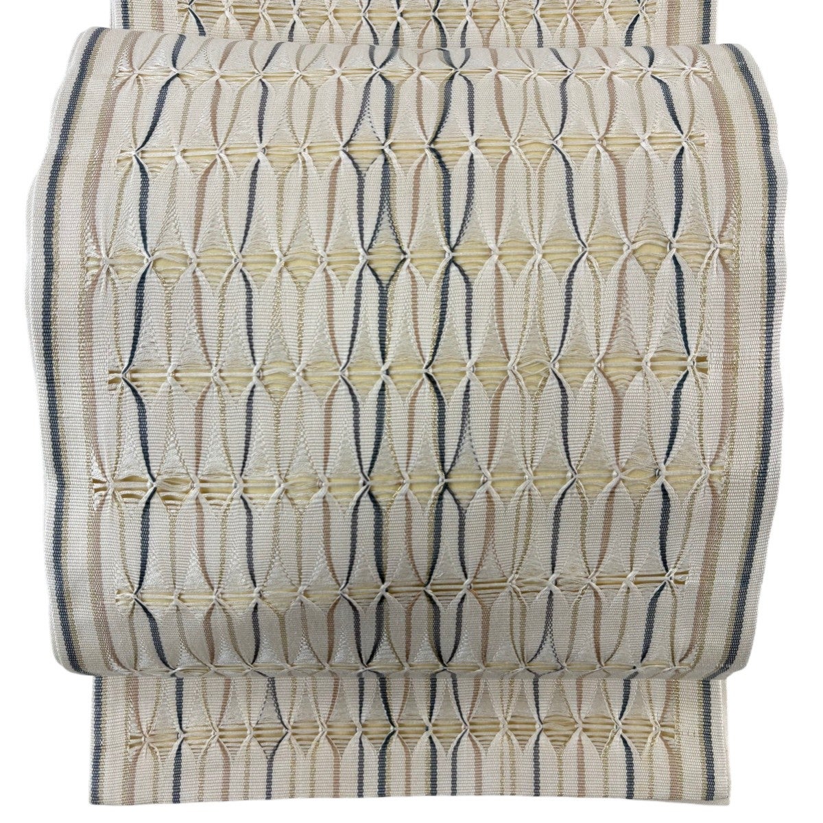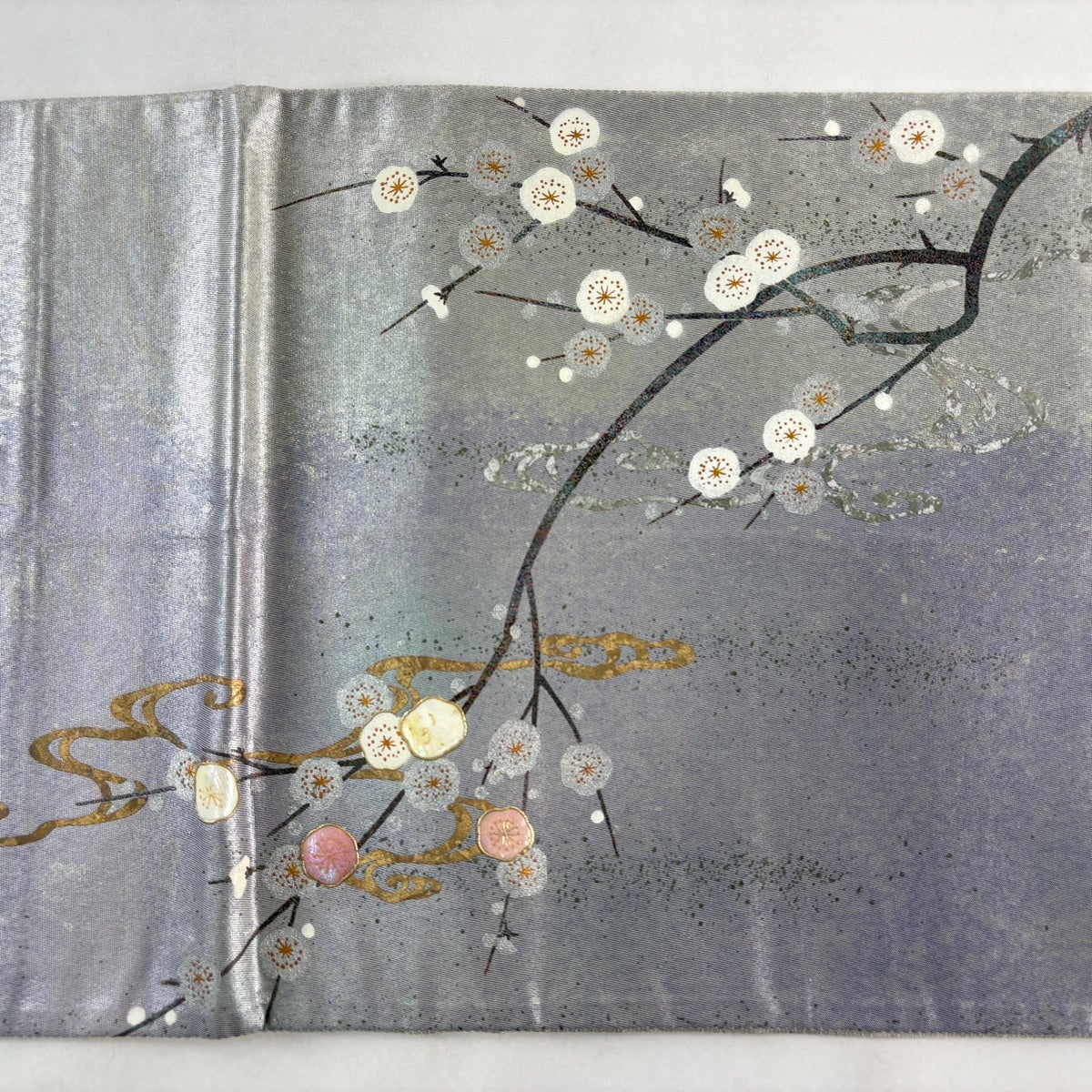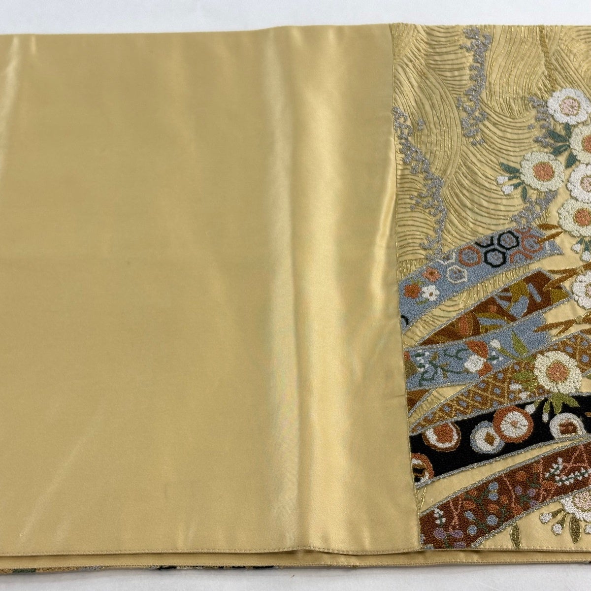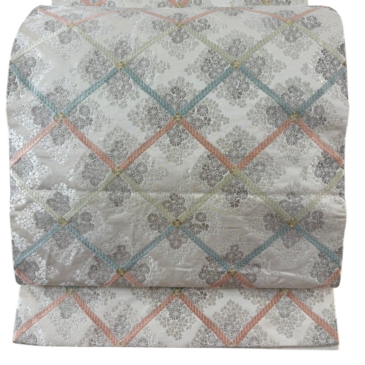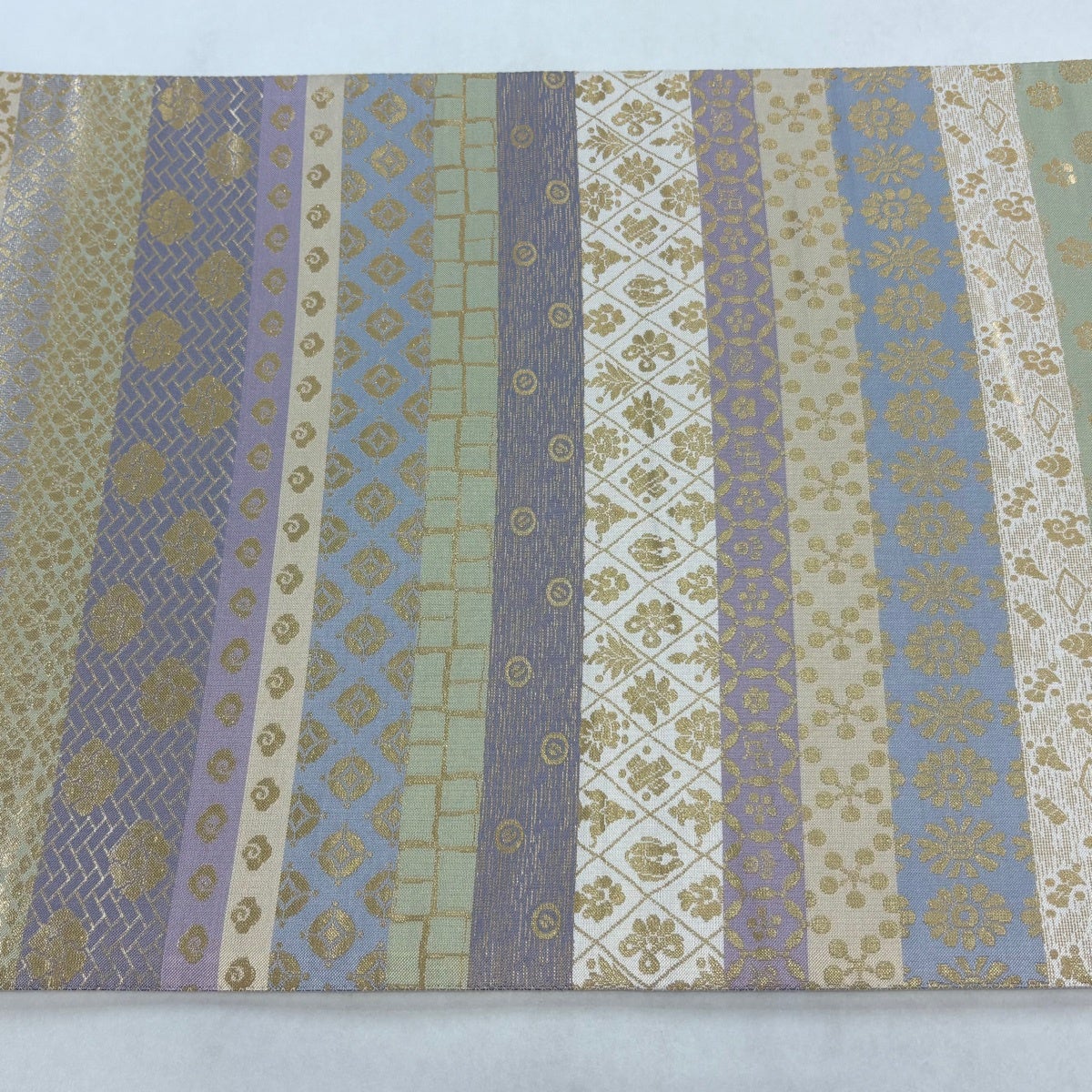 袋帯とは女性用の主にフォーマル用の帯で第一礼装として着用されることが多く、形状は表地にのみ柄があり裏地は無地になるように袋状に織って作成されたため袋帯という名が付きました。 帯を締める際にはおめでたいことが重なりますようにという願いが込められている二重太鼓や成人式の際に振袖に見かけるふくら雀や文庫結びなどの変わり結びを用いて着用します。