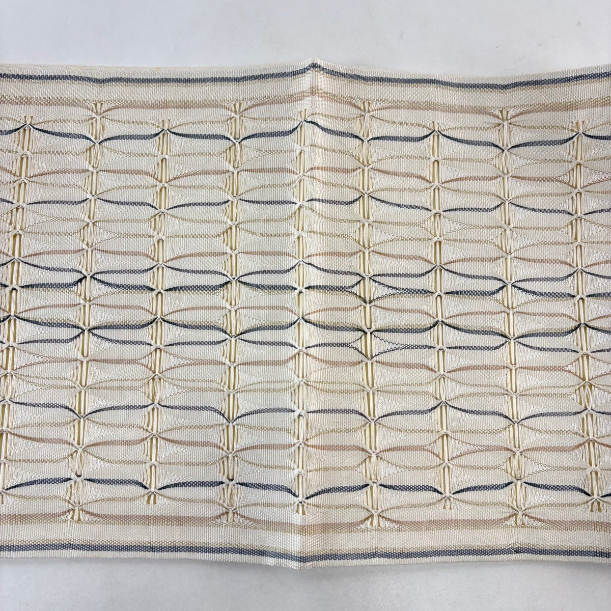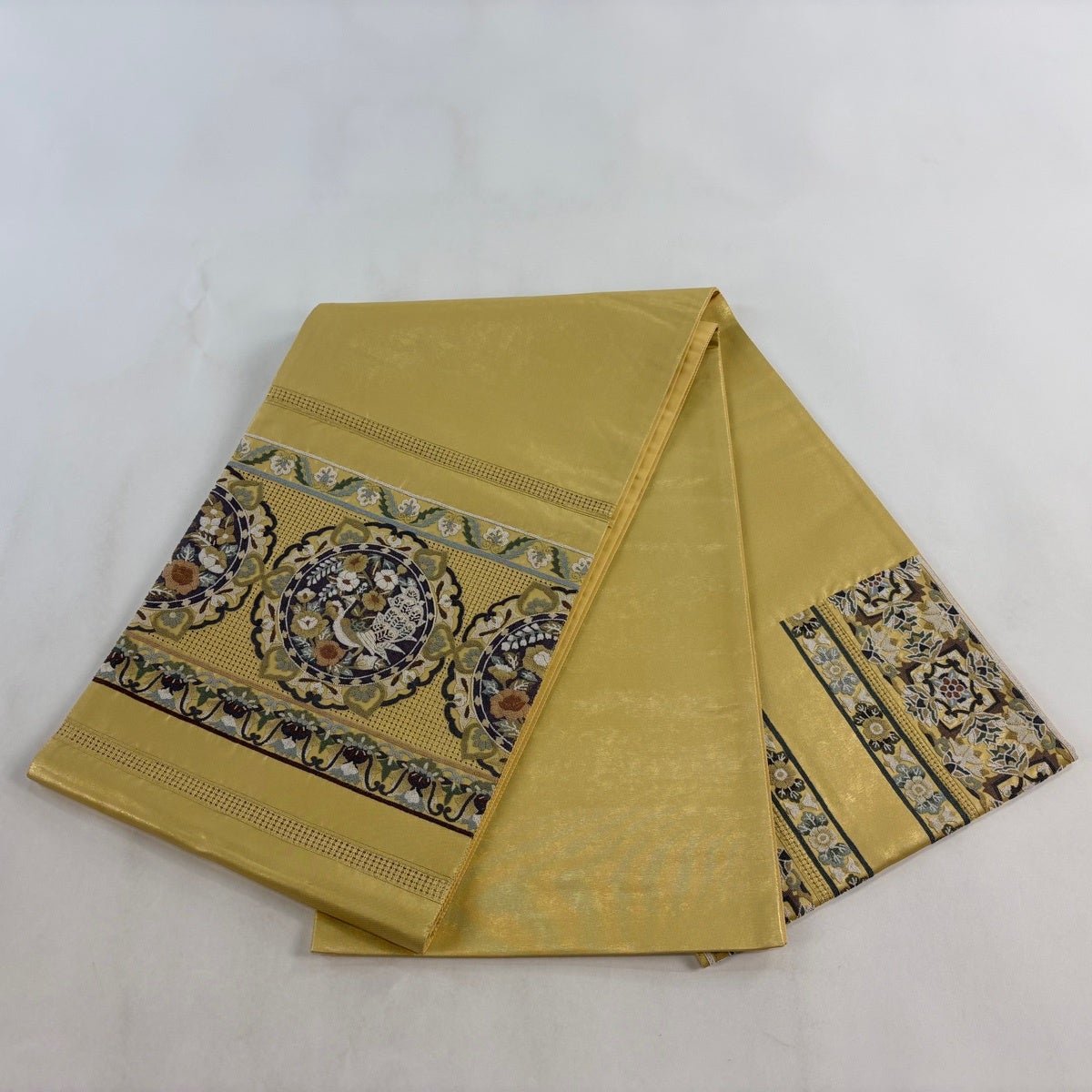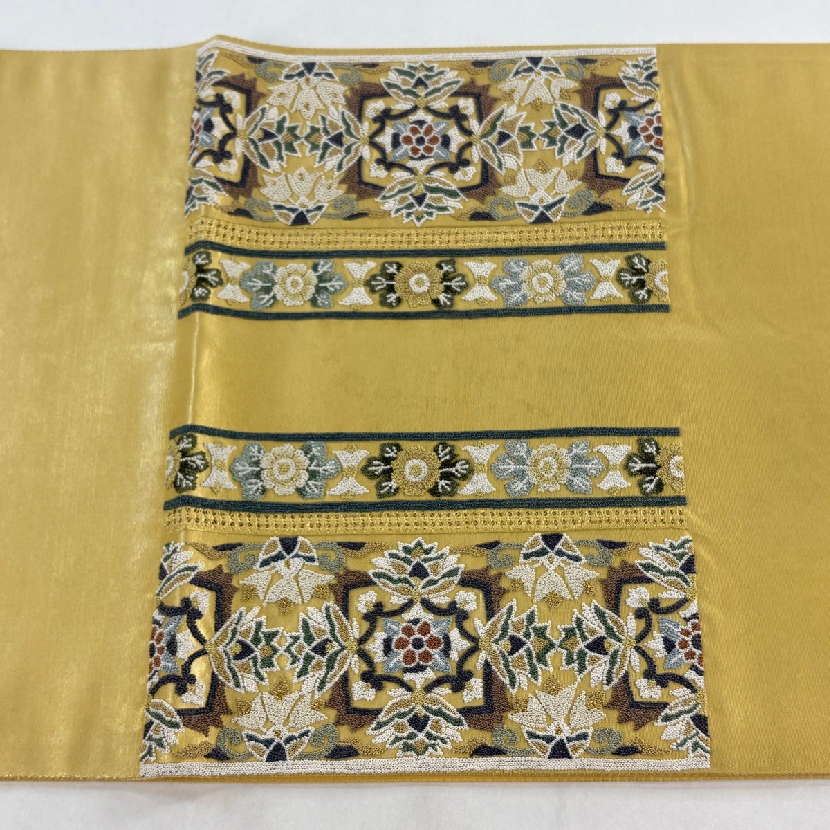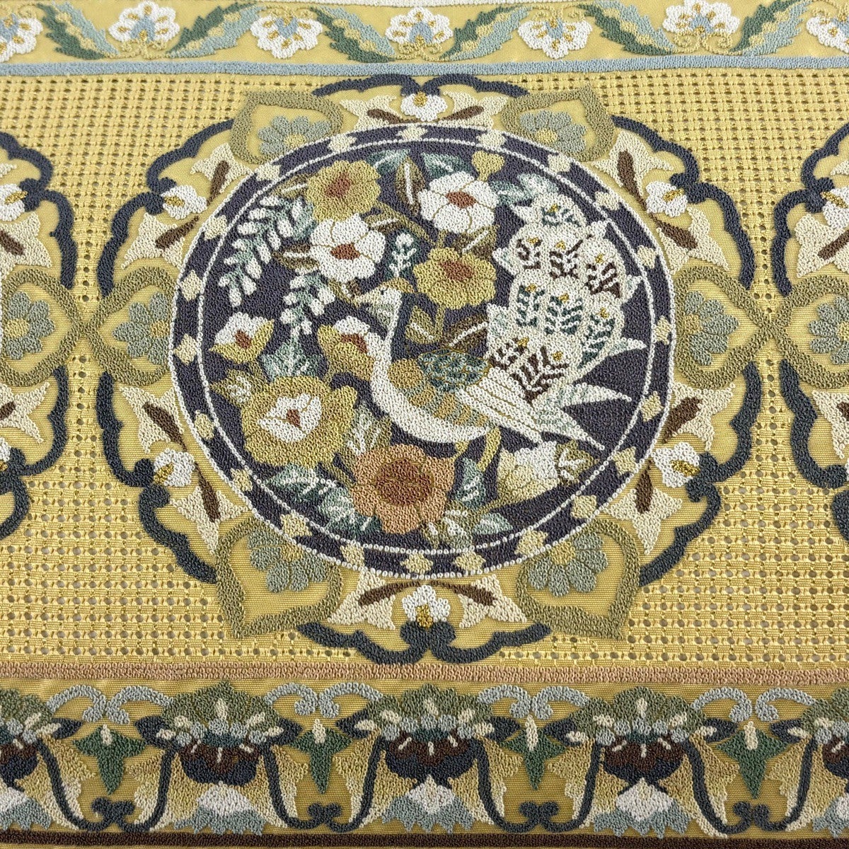 袋帯とは女性用の主にフォーマル用の帯で第一礼装として着用されることが多く、形状は表地にのみ柄があり裏地は無地になるように袋状に織って作成されたため袋帯という名が付きました。 帯を締める際にはおめでたいことが重なりますようにという願いが込められている二重太鼓や成人式の際に振袖に見かけるふくら雀や文庫結びなどの変わり結びを用いて着用します。