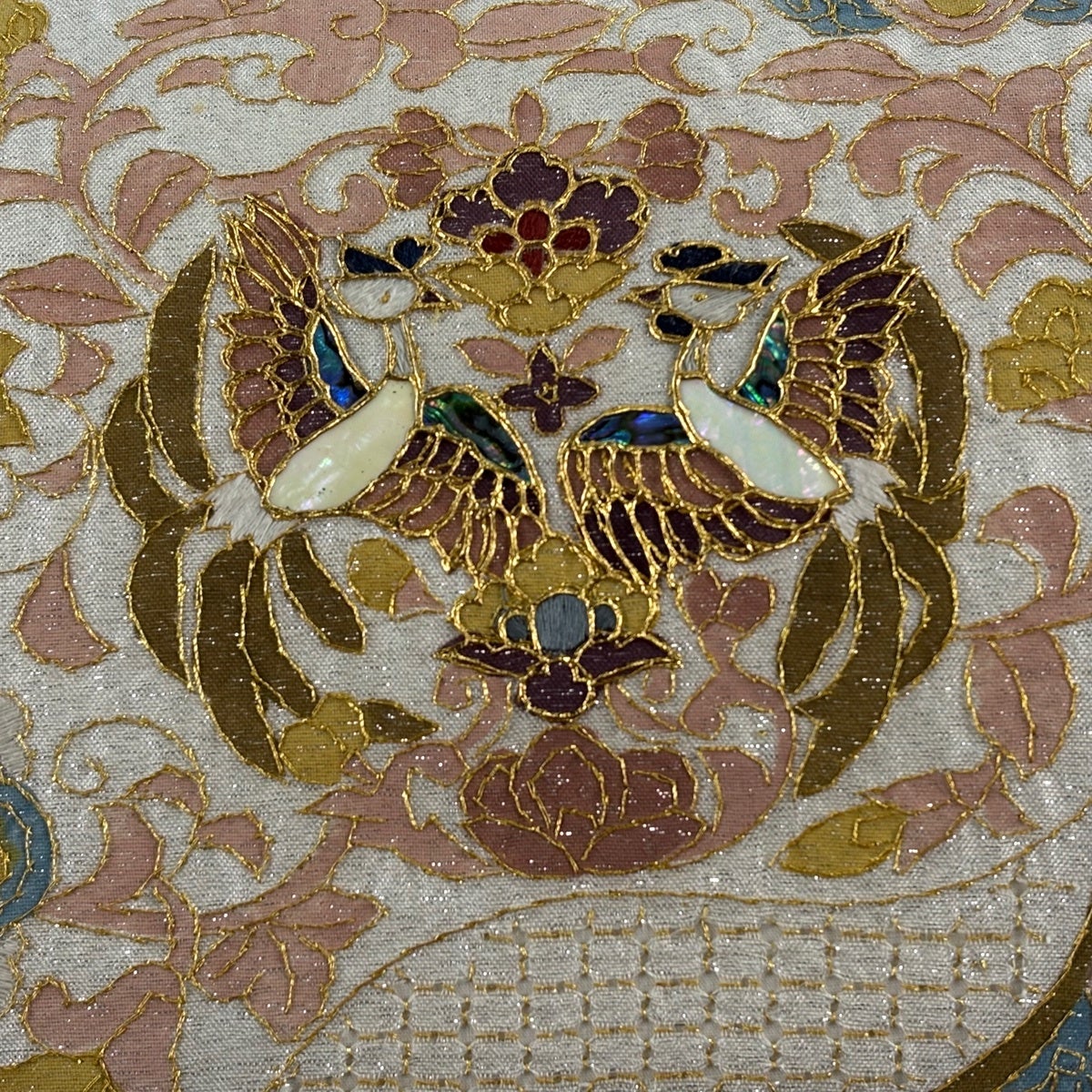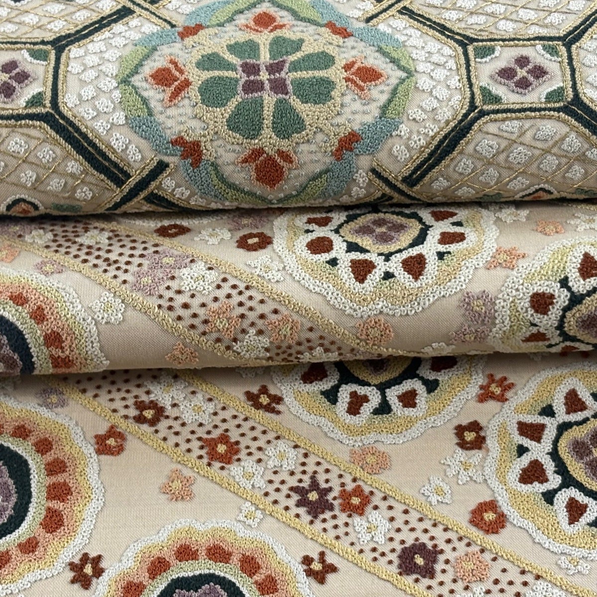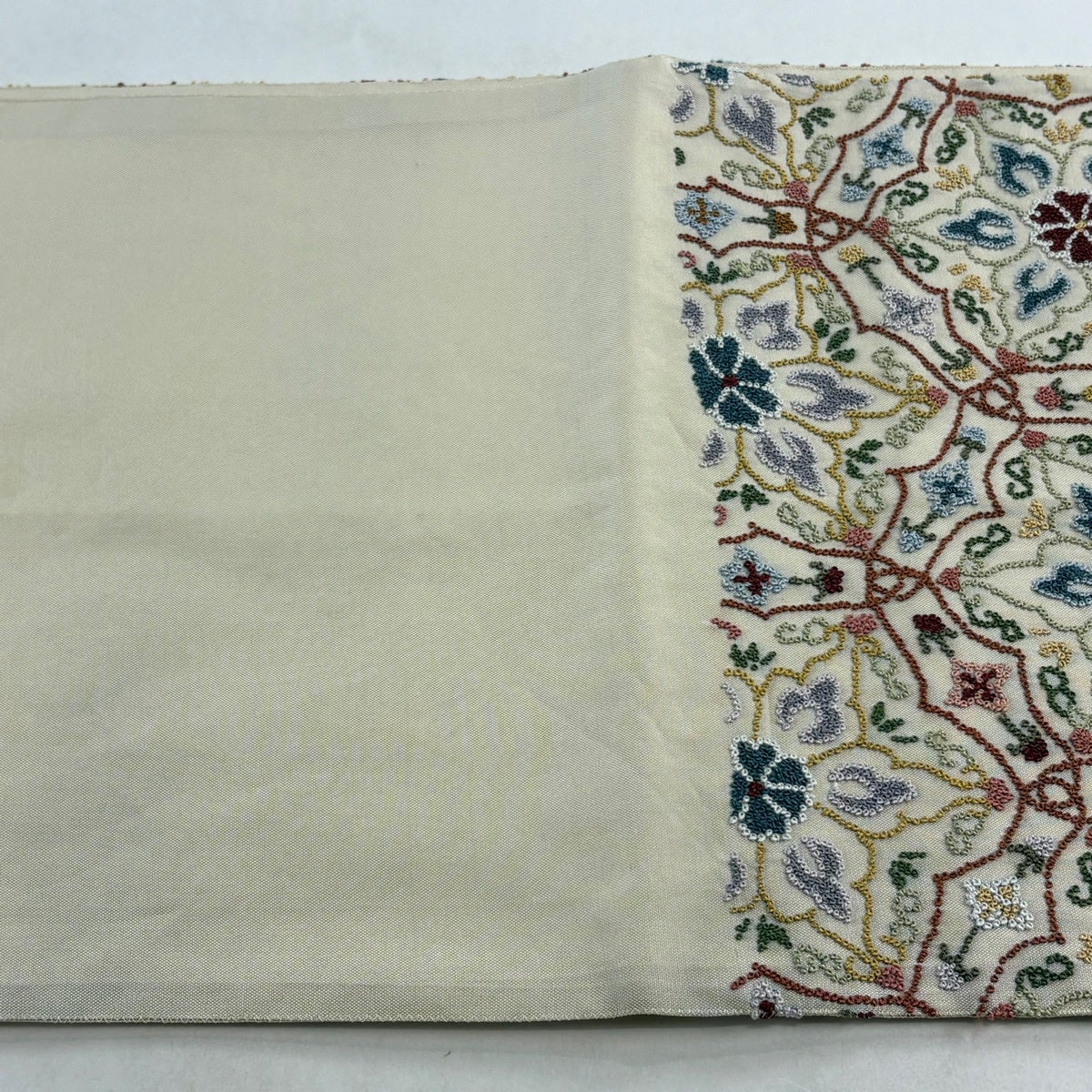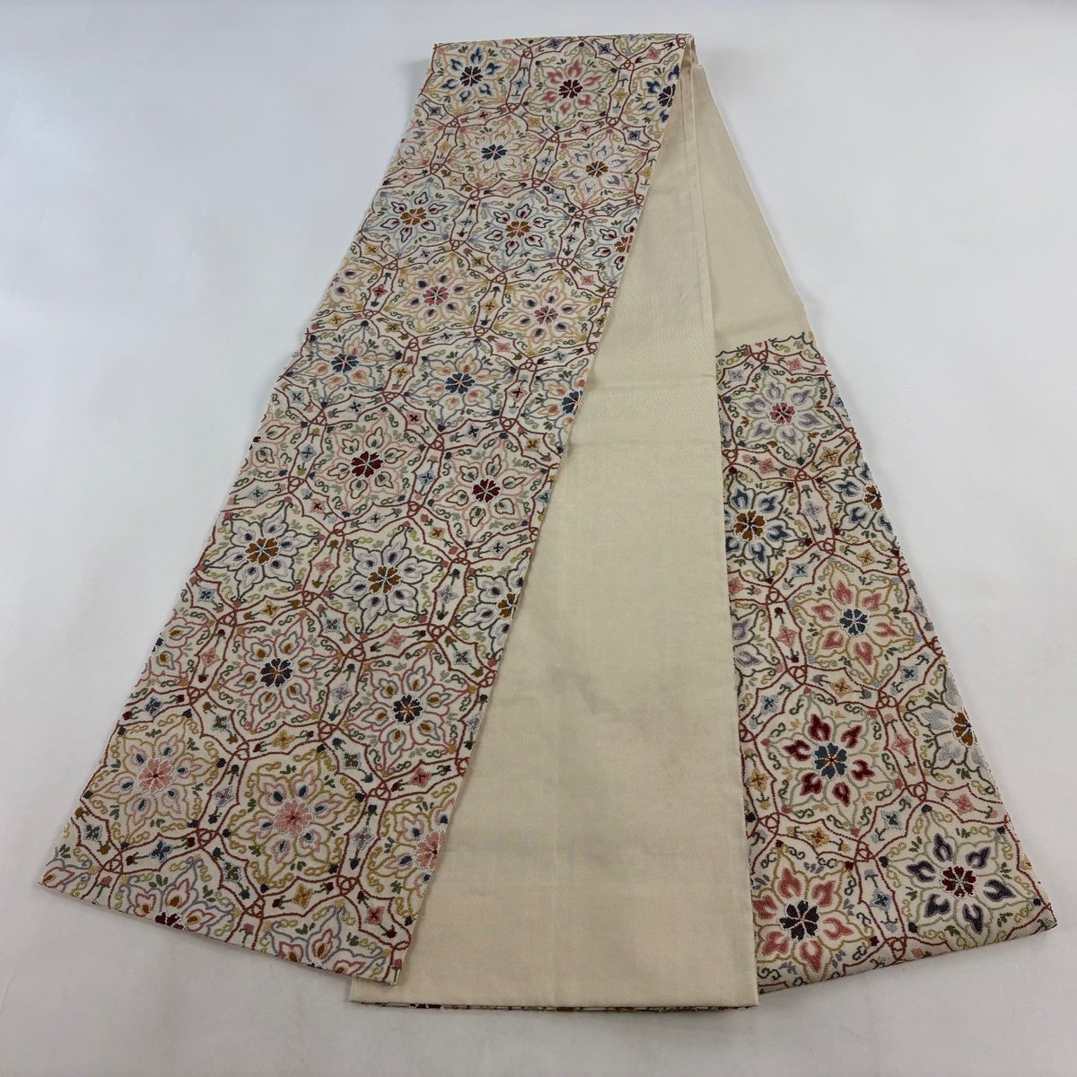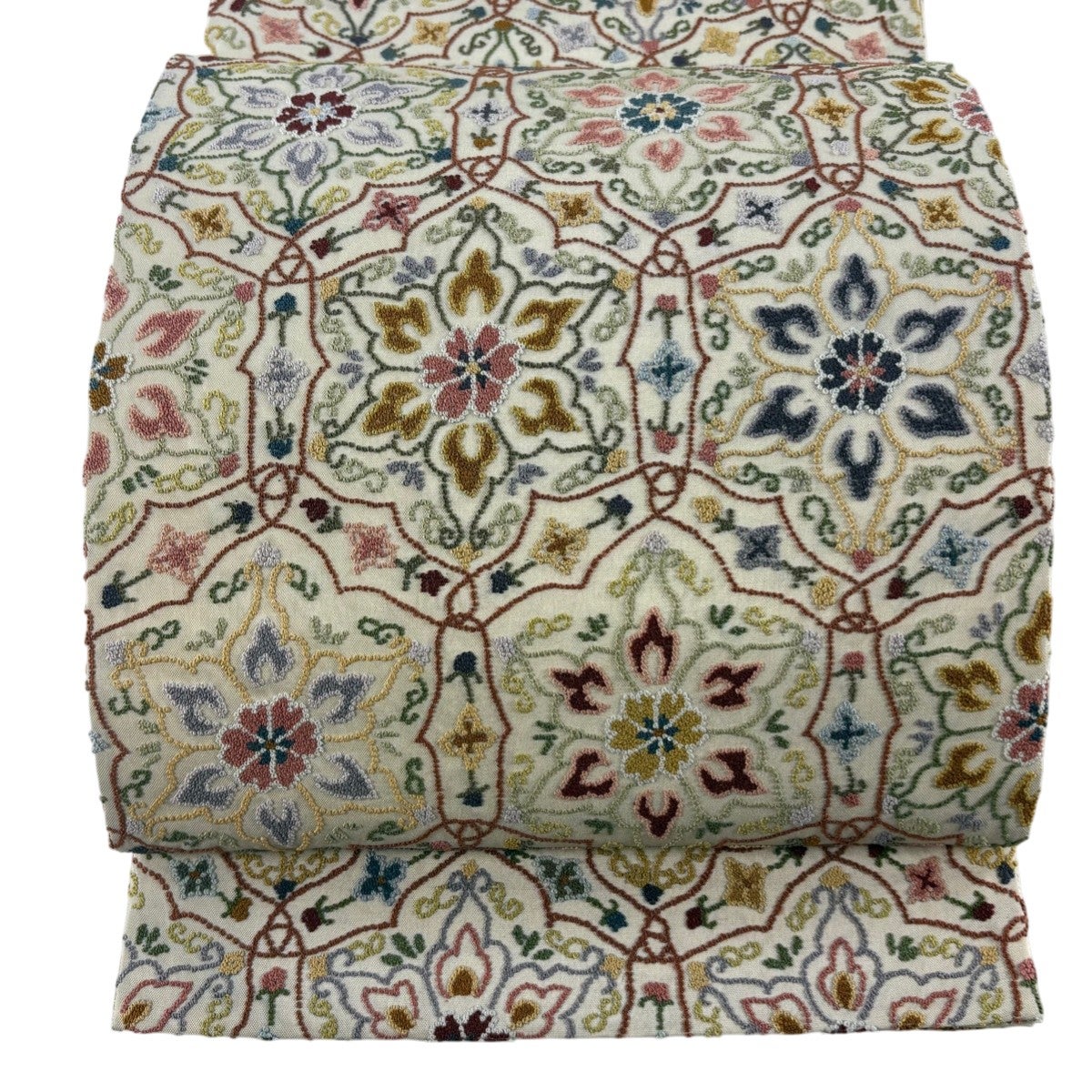 袋帯とは女性用の主にフォーマル用の帯で第一礼装として着用されることが多く、形状は表地にのみ柄があり裏地は無地になるように袋状に織って作成されたため袋帯という名が付きました。 帯を締める際にはおめでたいことが重なりますようにという願いが込められている二重太鼓や成人式の際に振袖に見かけるふくら雀や文庫結びなどの変わり結びを用いて着用します。