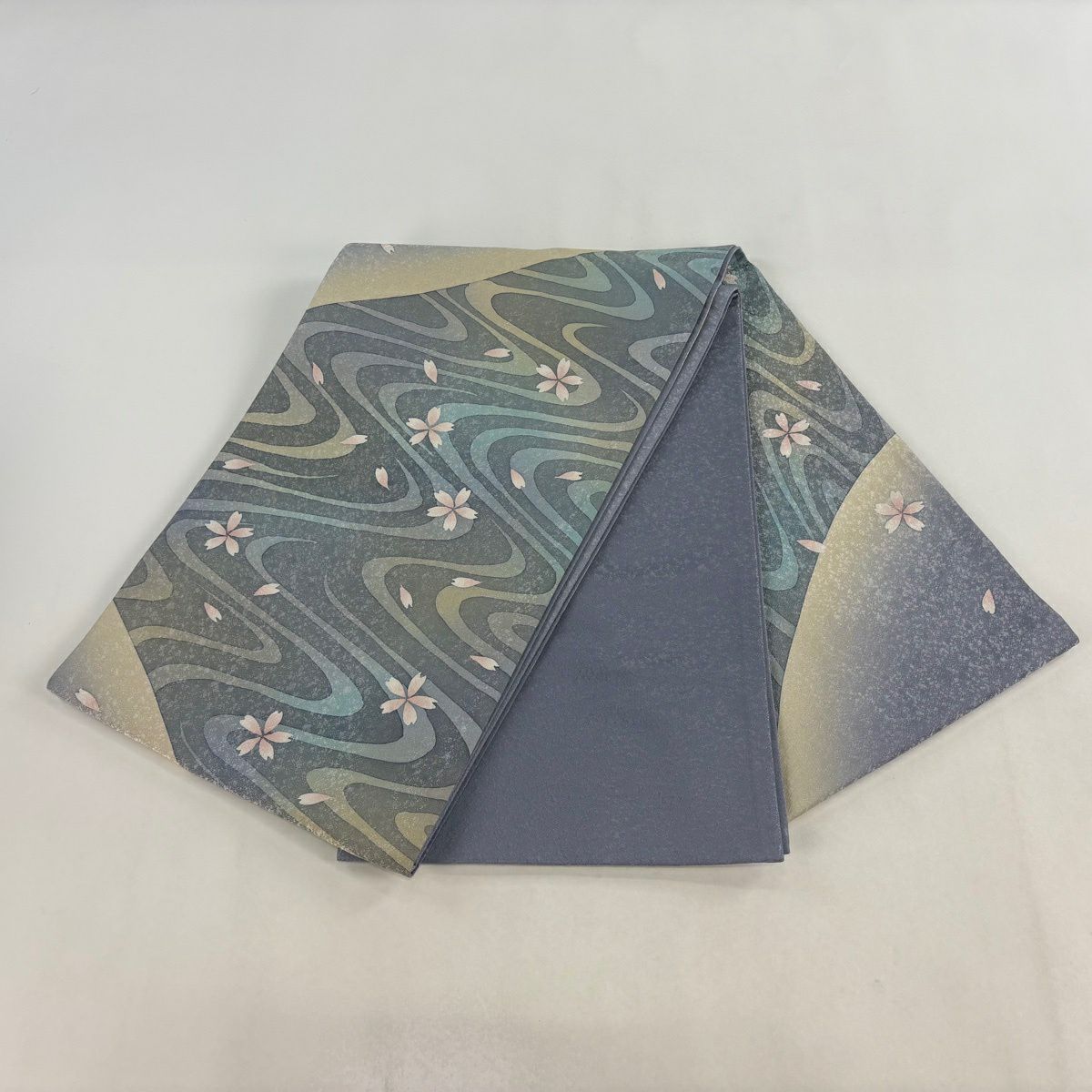 袋帯とは女性用の主にフォーマル用の帯で第一礼装として着用されることが多く、形状は表地にのみ柄があり裏地は無地になるように袋状に織って作成されたため袋帯という名が付きました。 帯を締める際にはおめでたいことが重なりますようにという願いが込められている二重太鼓や成人式の際に振袖に見かけるふくら雀や文庫結びなどの変わり結びを用いて着用します。