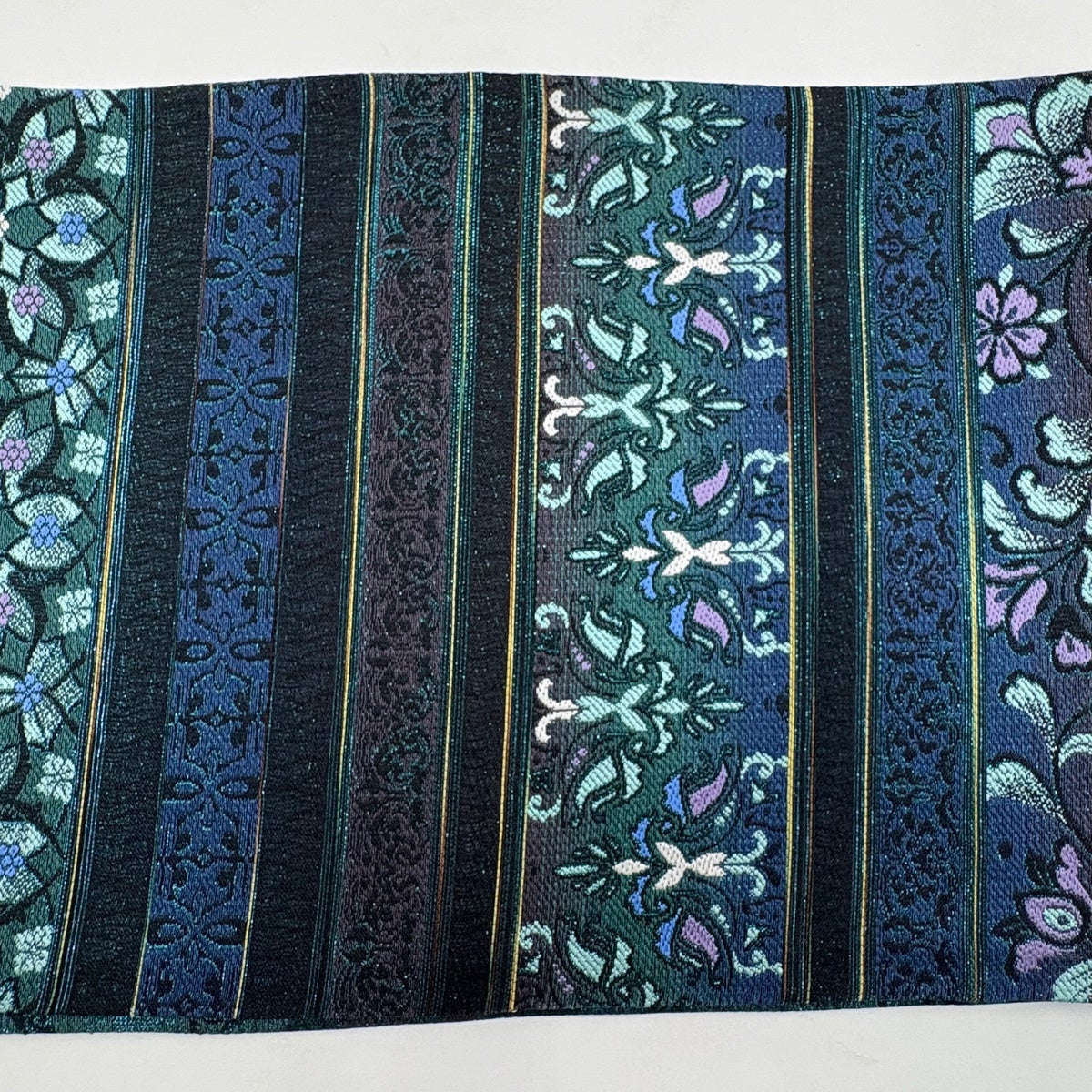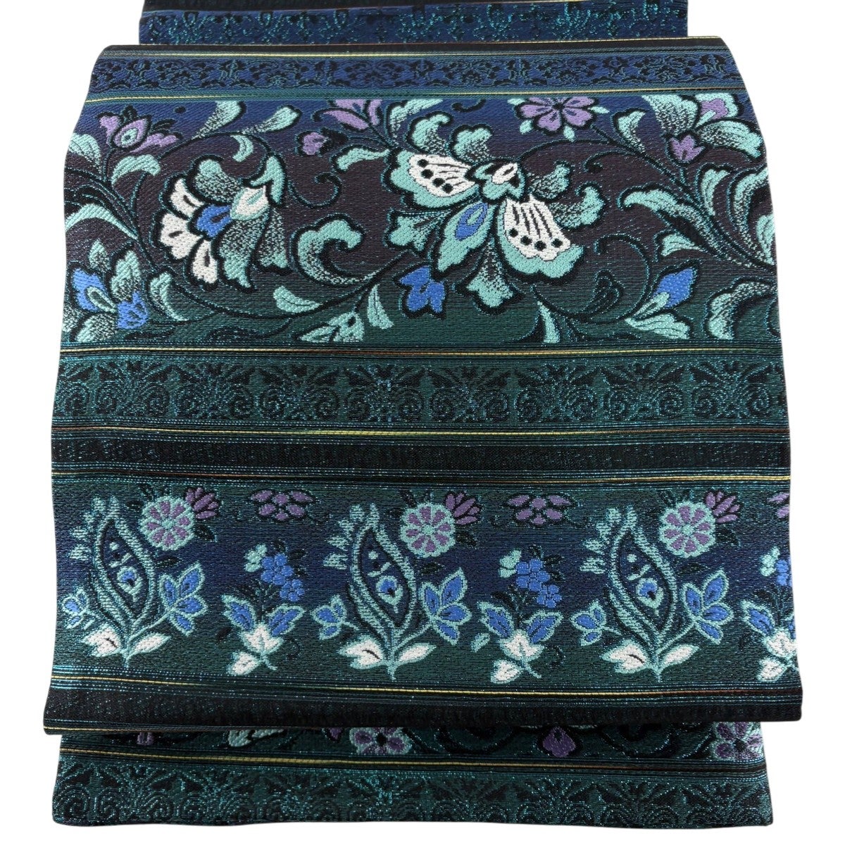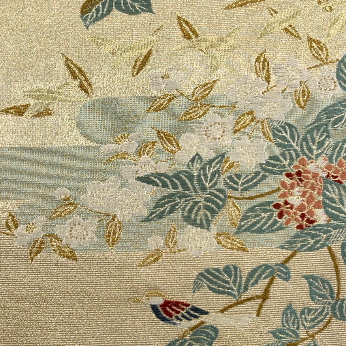 袋帯とは女性用の主にフォーマル用の帯で第一礼装として着用されることが多く、形状は表地にのみ柄があり裏地は無地になるように袋状に織って作成されたため袋帯という名が付きました。 帯を締める際にはおめでたいことが重なりますようにという願いが込められている二重太鼓や成人式の際に振袖に見かけるふくら雀や文庫結びなどの変わり結びを用いて着用します。