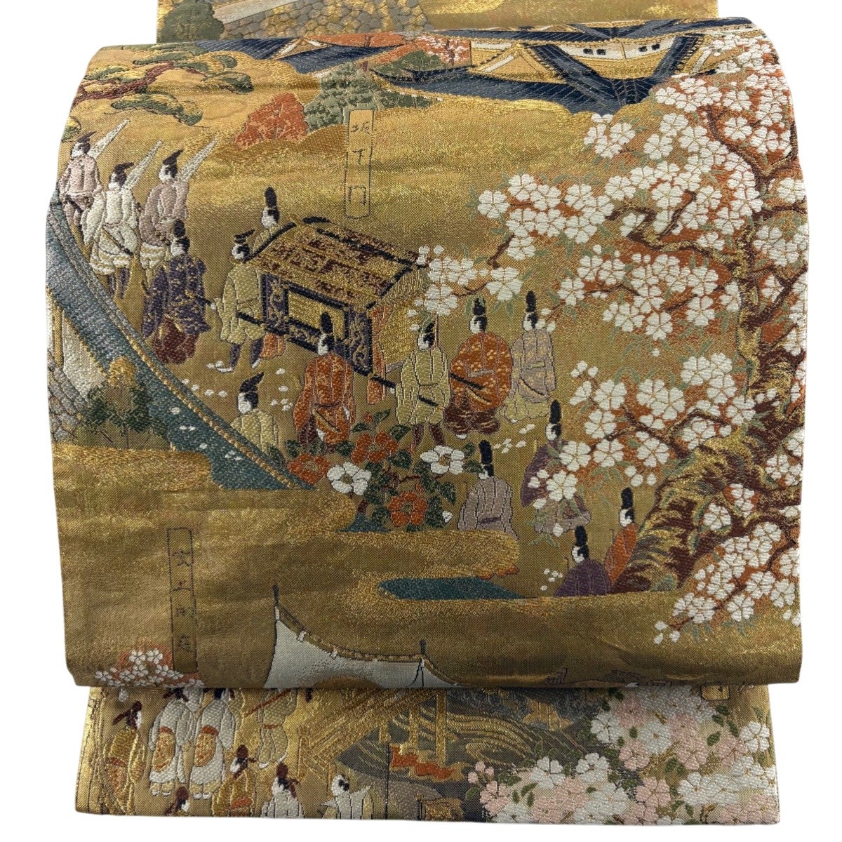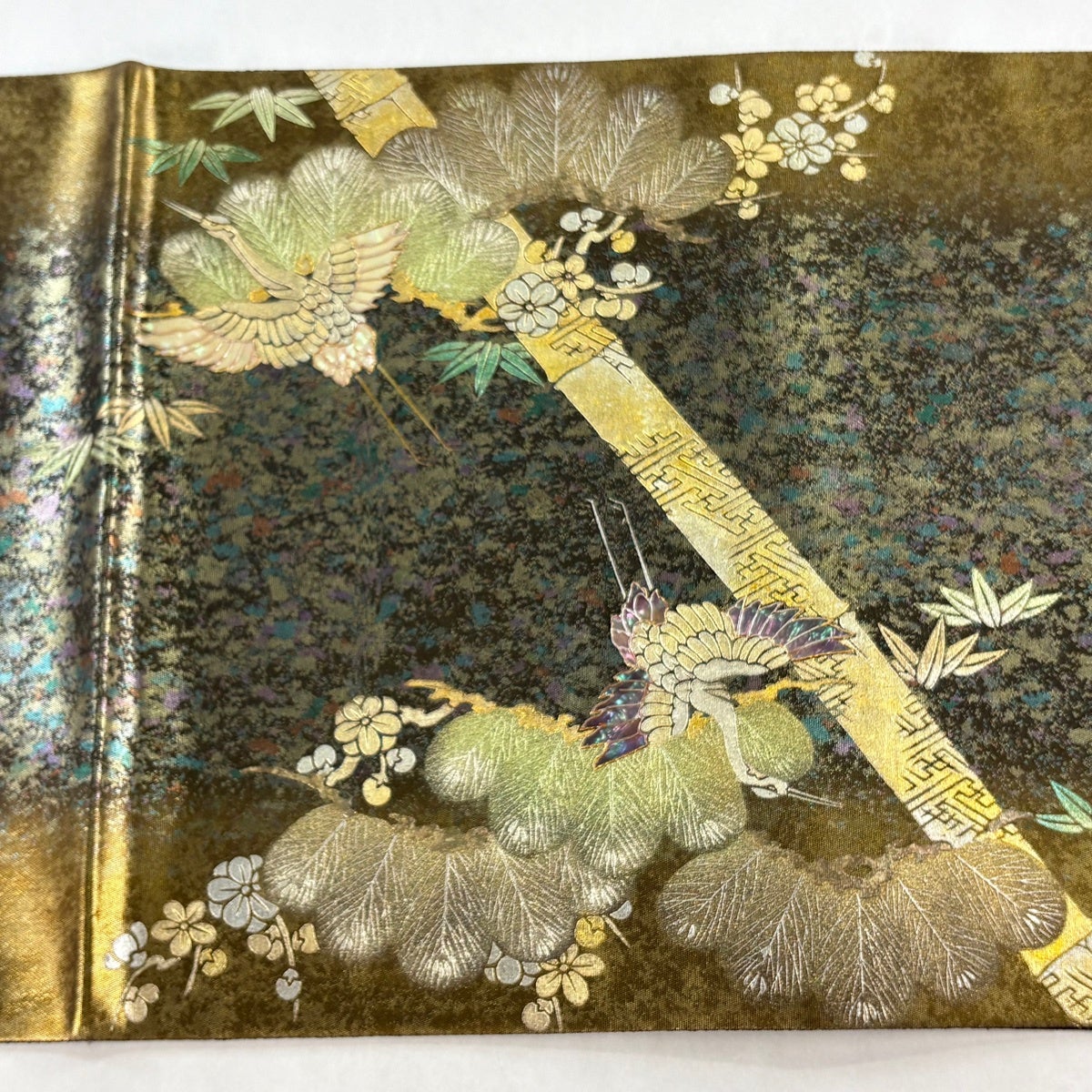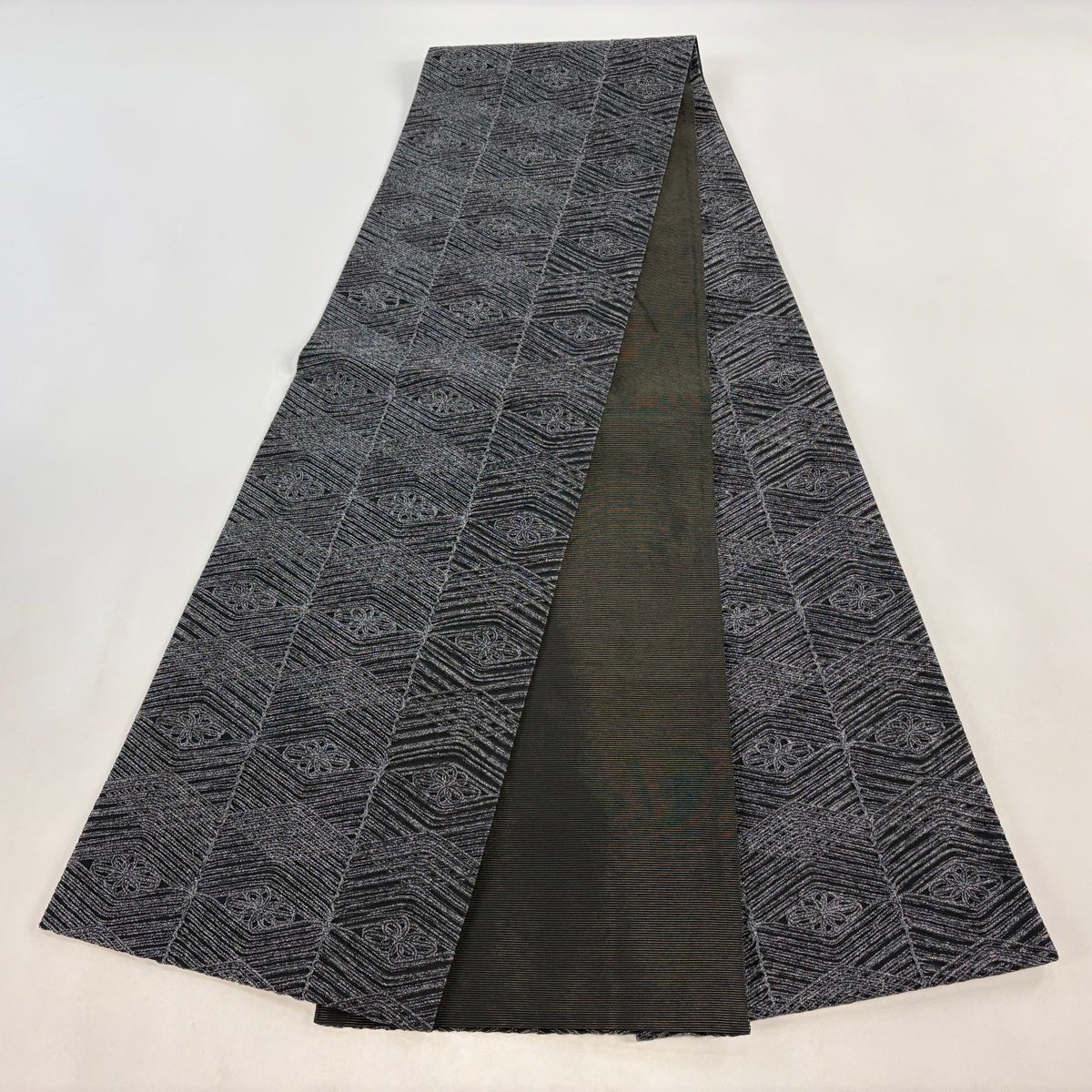 袋帯とは女性用の主にフォーマル用の帯で第一礼装として着用されることが多く、形状は表地にのみ柄があり裏地は無地になるように袋状に織って作成されたため袋帯という名が付きました。 帯を締める際にはおめでたいことが重なりますようにという願いが込められている二重太鼓や成人式の際に振袖に見かけるふくら雀や文庫結びなどの変わり結びを用いて着用します。