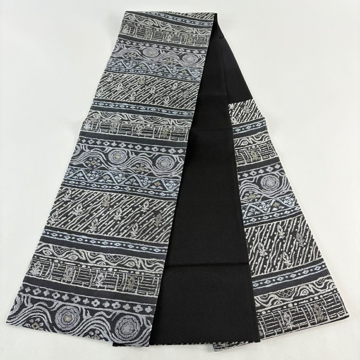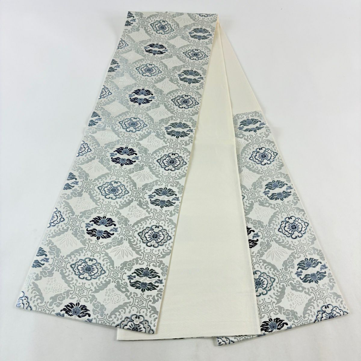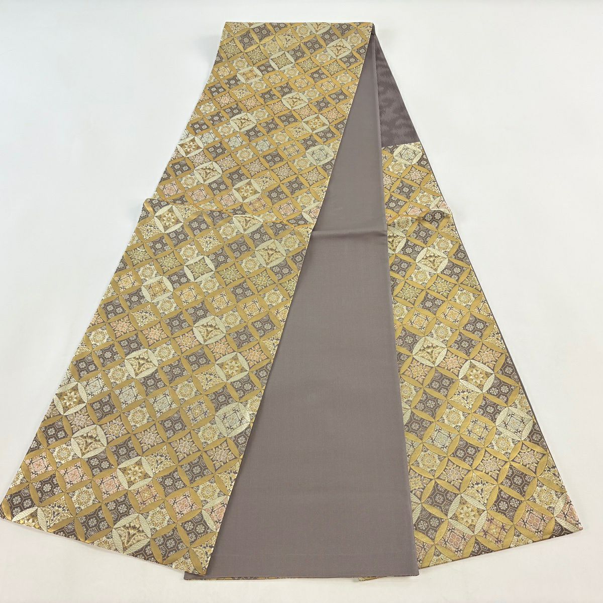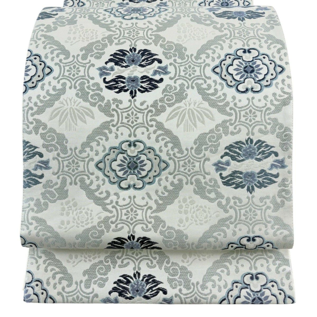 袋帯とは女性用の主にフォーマル用の帯で第一礼装として着用されることが多く、形状は表地にのみ柄があり裏地は無地になるように袋状に織って作成されたため袋帯という名が付きました。 帯を締める際にはおめでたいことが重なりますようにという願いが込められている二重太鼓や成人式の際に振袖に見かけるふくら雀や文庫結びなどの変わり結びを用いて着用します。