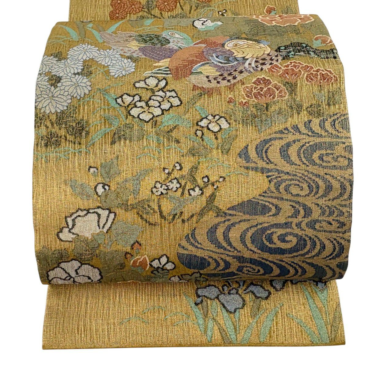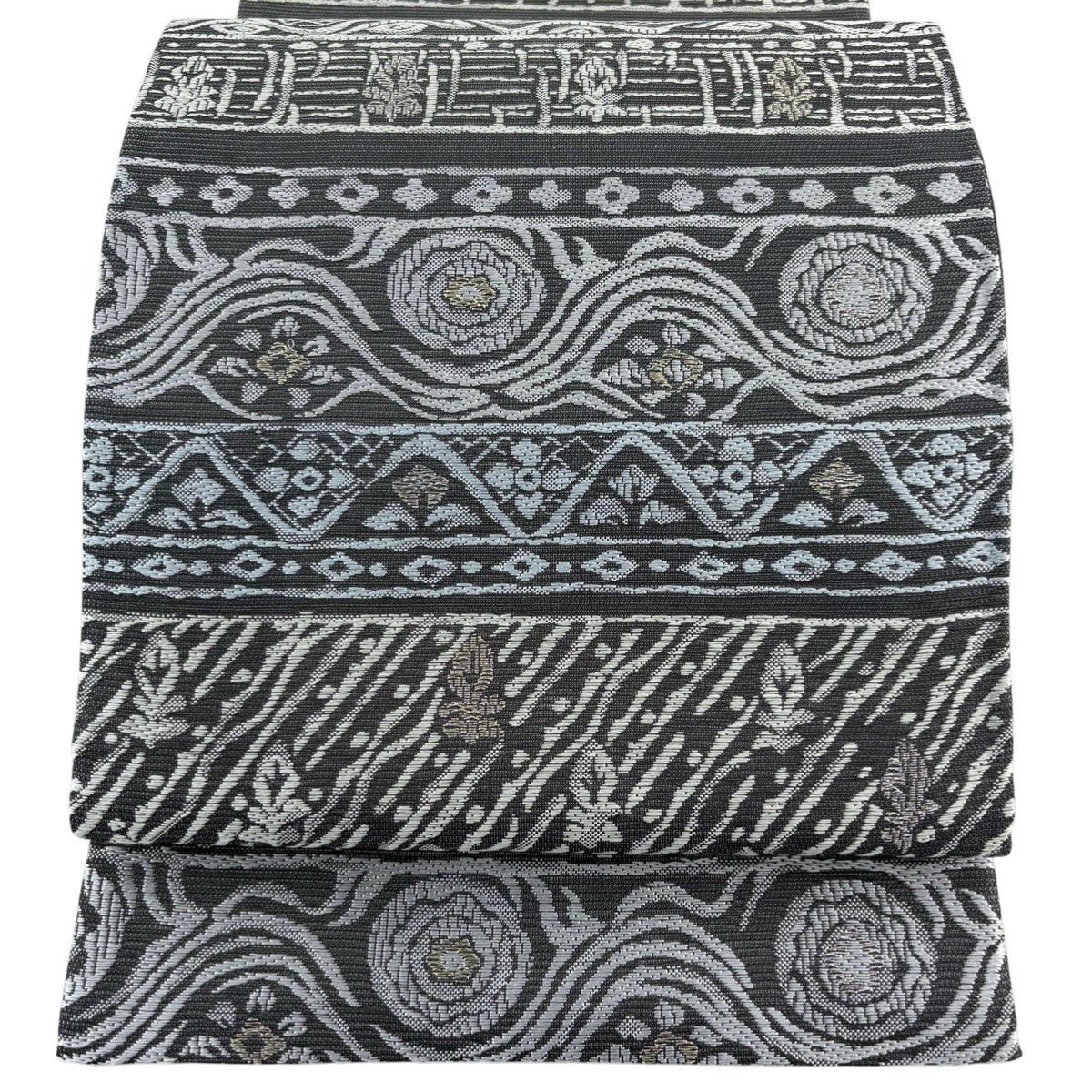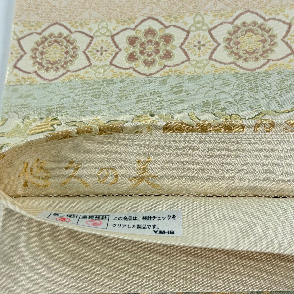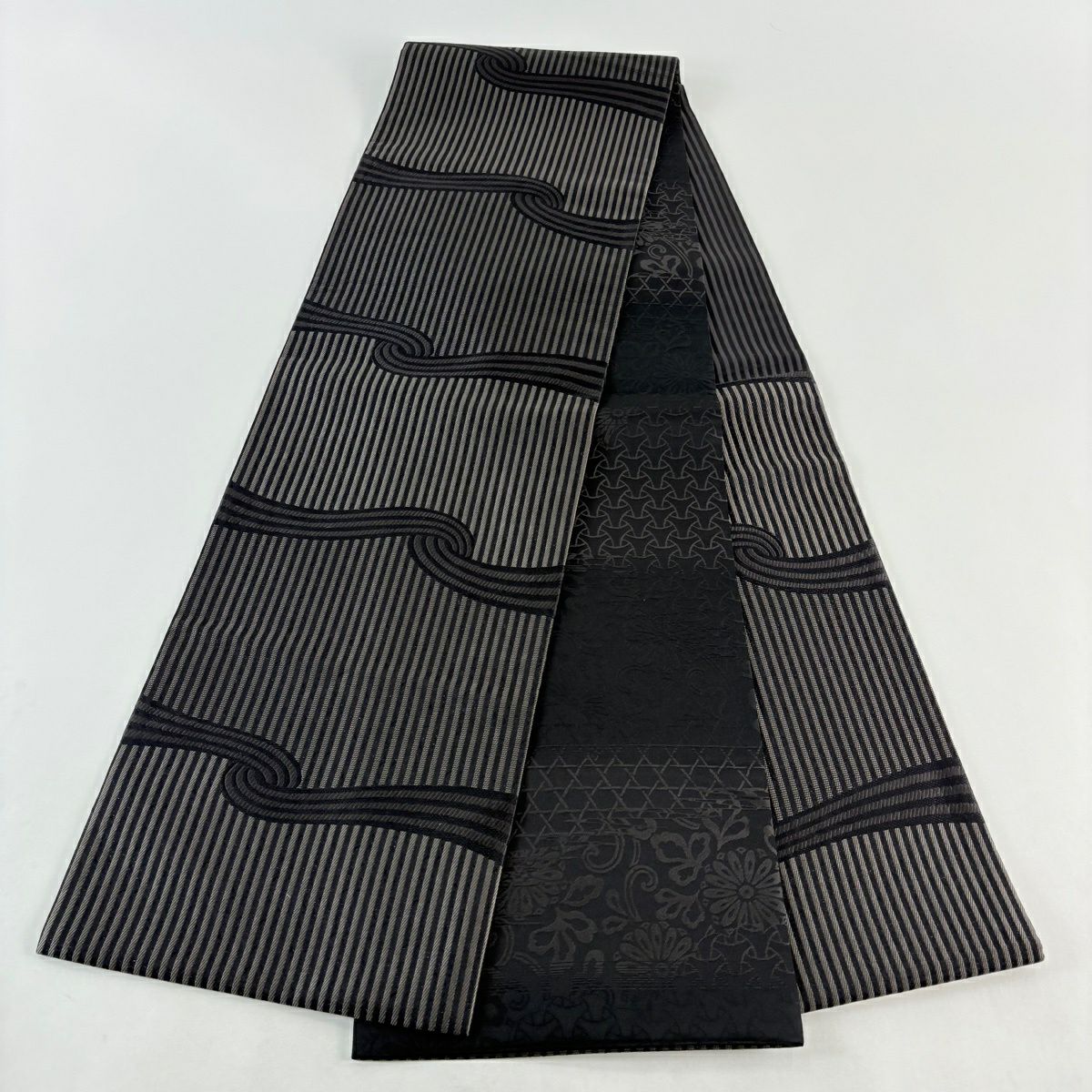 袋帯とは女性用の主にフォーマル用の帯で第一礼装として着用されることが多く、形状は表地にのみ柄があり裏地は無地になるように袋状に織って作成されたため袋帯という名が付きました。 帯を締める際にはおめでたいことが重なりますようにという願いが込められている二重太鼓や成人式の際に振袖に見かけるふくら雀や文庫結びなどの変わり結びを用いて着用します。