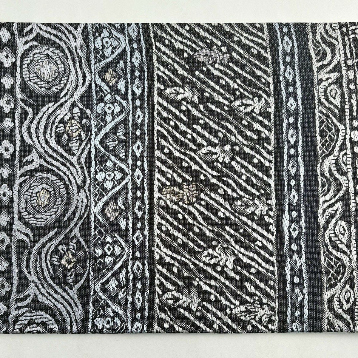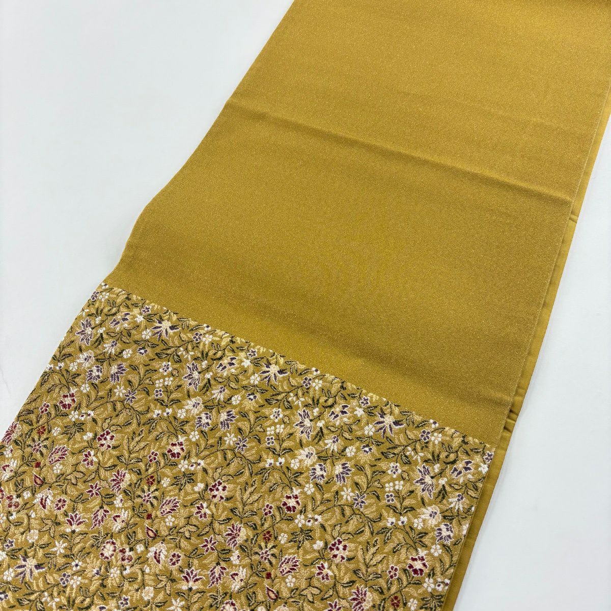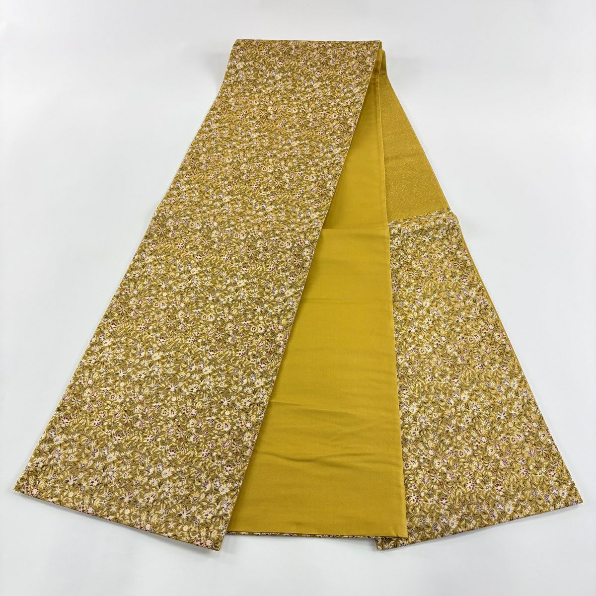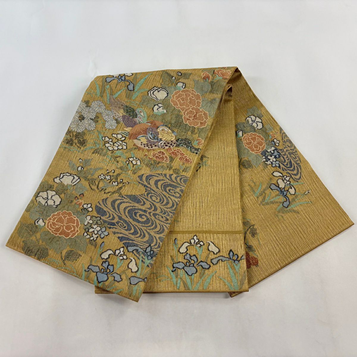 袋帯とは女性用の主にフォーマル用の帯で第一礼装として着用されることが多く、形状は表地にのみ柄があり裏地は無地になるように袋状に織って作成されたため袋帯という名が付きました。 帯を締める際にはおめでたいことが重なりますようにという願いが込められている二重太鼓や成人式の際に振袖に見かけるふくら雀や文庫結びなどの変わり結びを用いて着用します。