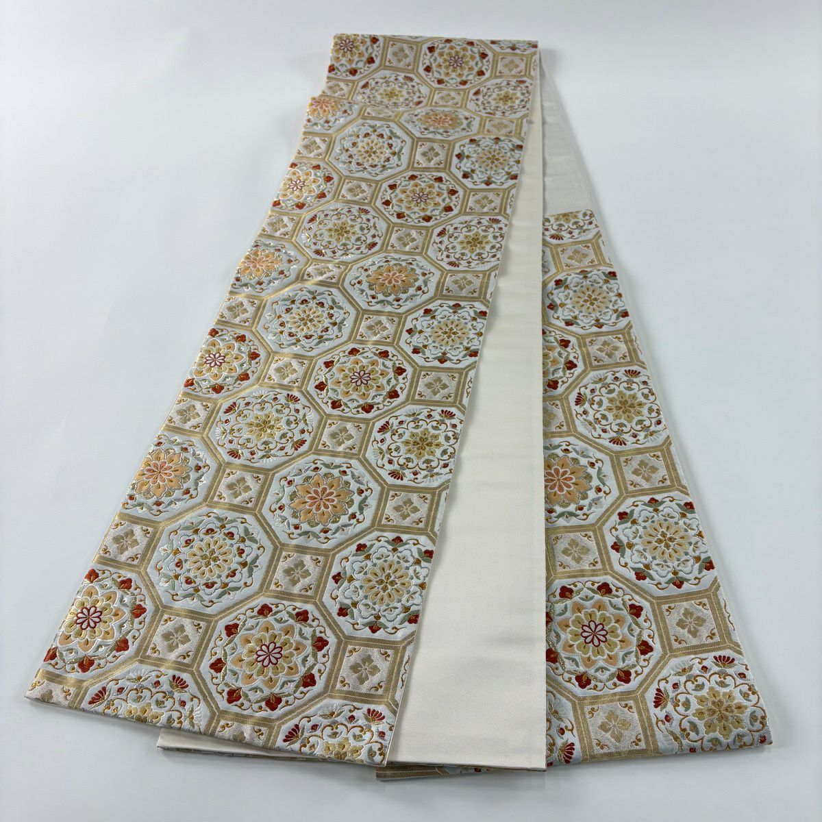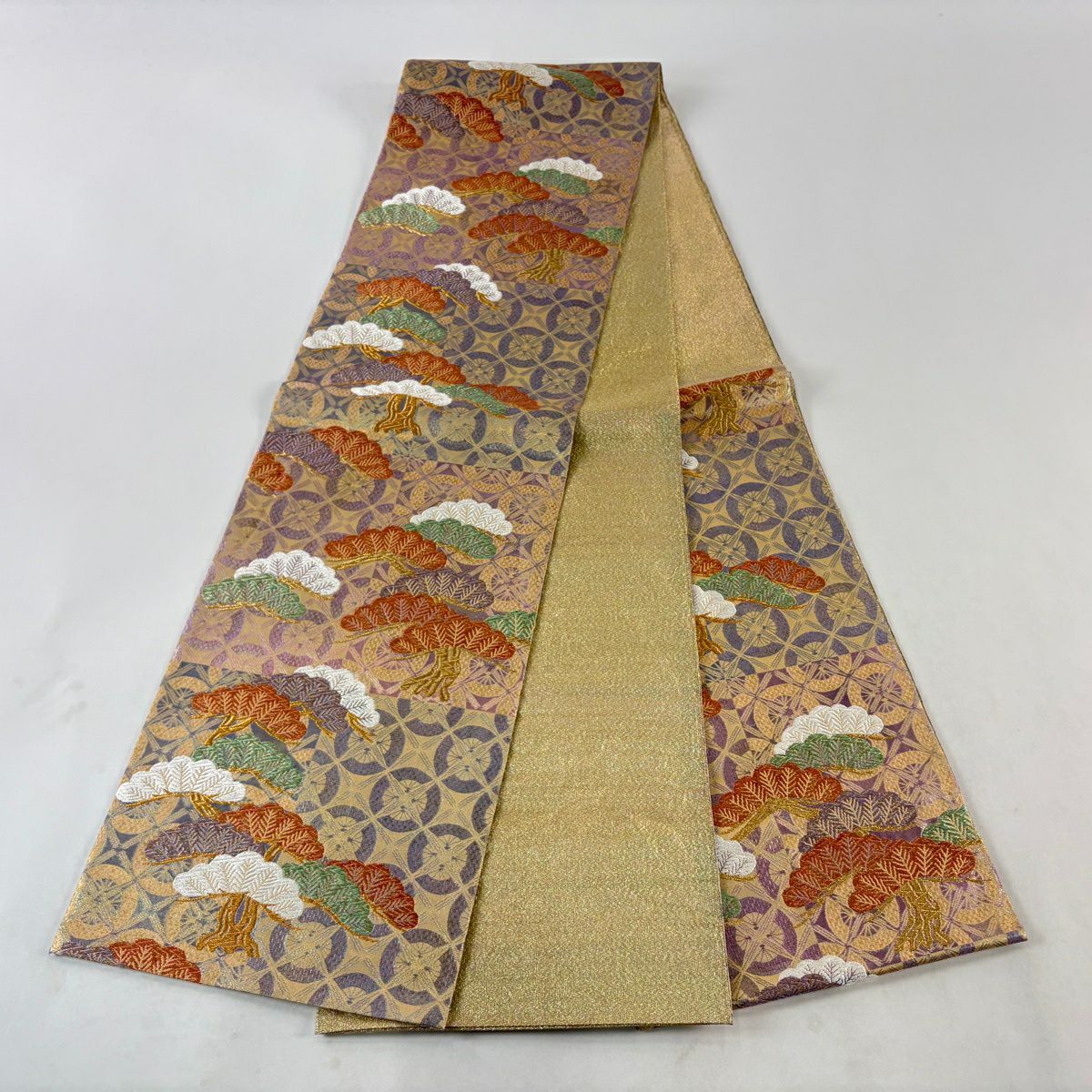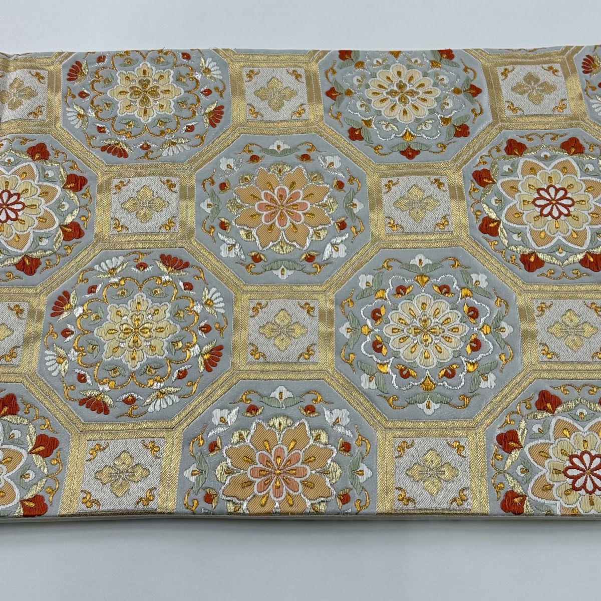 袋帯とは女性用の主にフォーマル用の帯で第一礼装として着用されることが多く、形状は表地にのみ柄があり裏地は無地になるように袋状に織って作成されたため袋帯という名が付きました。 帯を締める際にはおめでたいことが重なりますようにという願いが込められている二重太鼓や成人式の際に振袖に見かけるふくら雀や文庫結びなどの変わり結びを用いて着用します。
