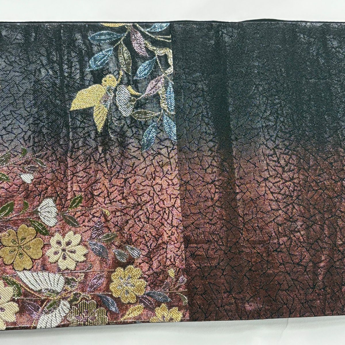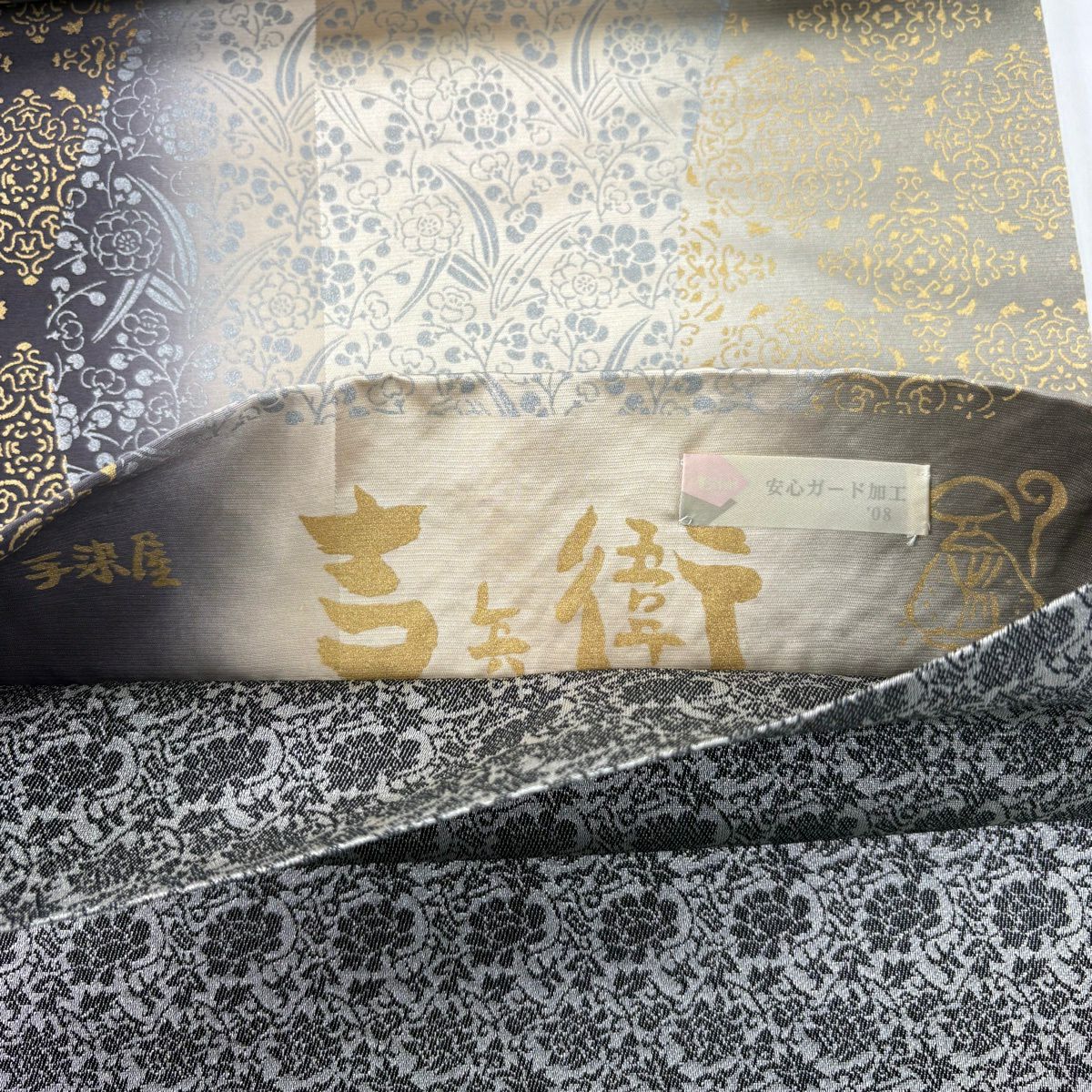 袋帯とは女性用の主にフォーマル用の帯で第一礼装として着用されることが多く、形状は表地にのみ柄があり裏地は無地になるように袋状に織って作成されたため袋帯という名が付きました。 帯を締める際にはおめでたいことが重なりますようにという願いが込められている二重太鼓や成人式の際に振袖に見かけるふくら雀や文庫結びなどの変わり結びを用いて着用します。