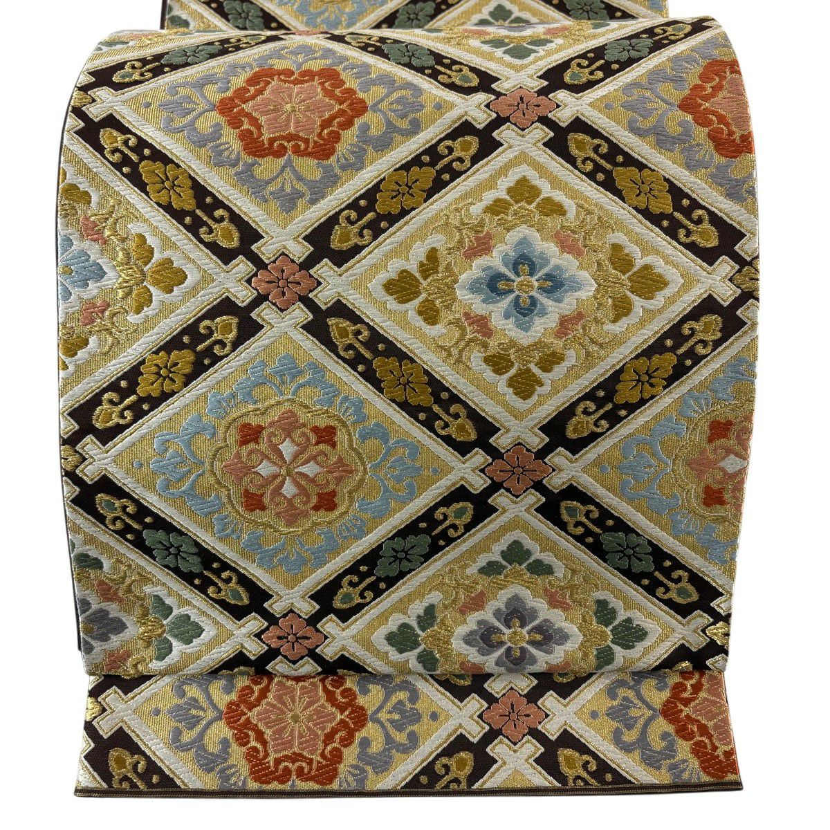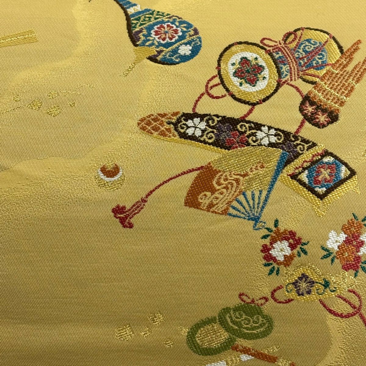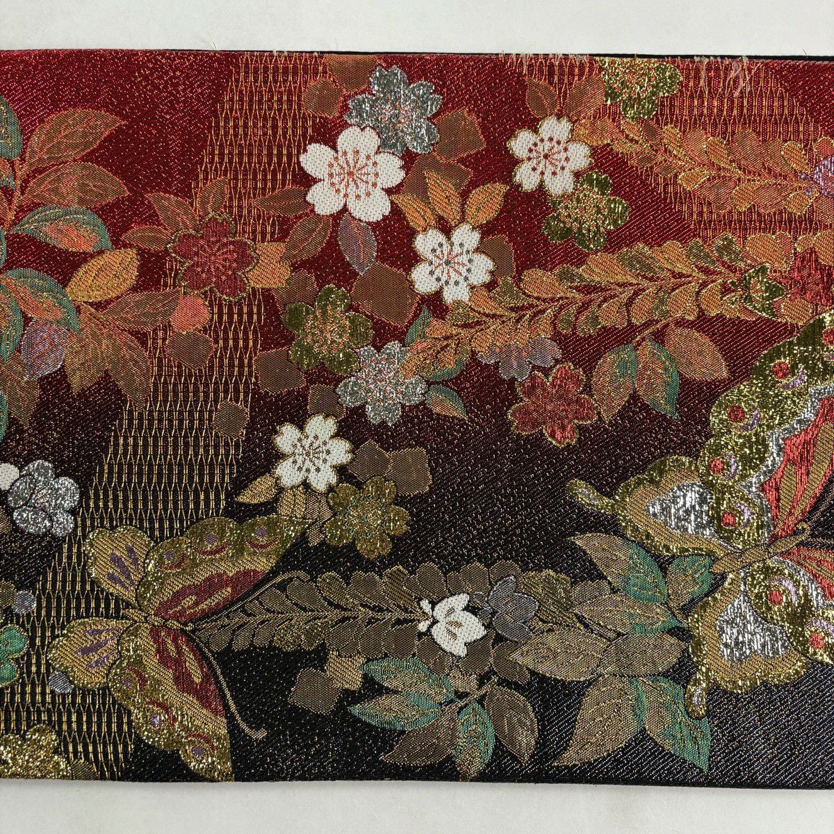 袋帯とは女性用の主にフォーマル用の帯で第一礼装として着用されることが多く、形状は表地にのみ柄があり裏地は無地になるように袋状に織って作成されたため袋帯という名が付きました。 帯を締める際にはおめでたいことが重なりますようにという願いが込められている二重太鼓や成人式の際に振袖に見かけるふくら雀や文庫結びなどの変わり結びを用いて着用します。