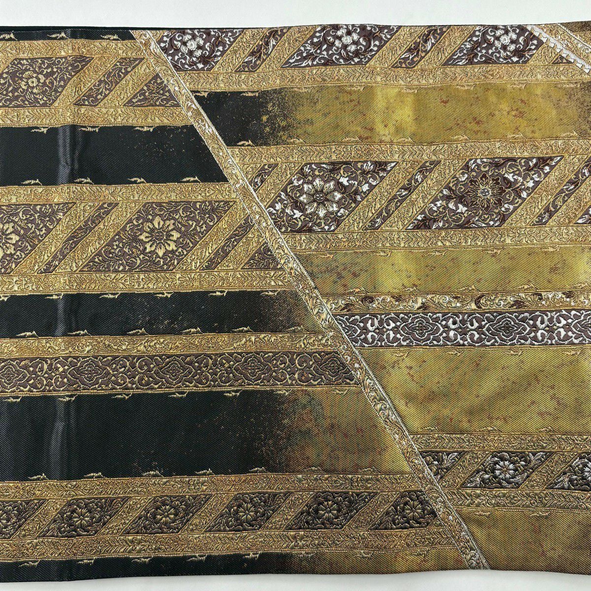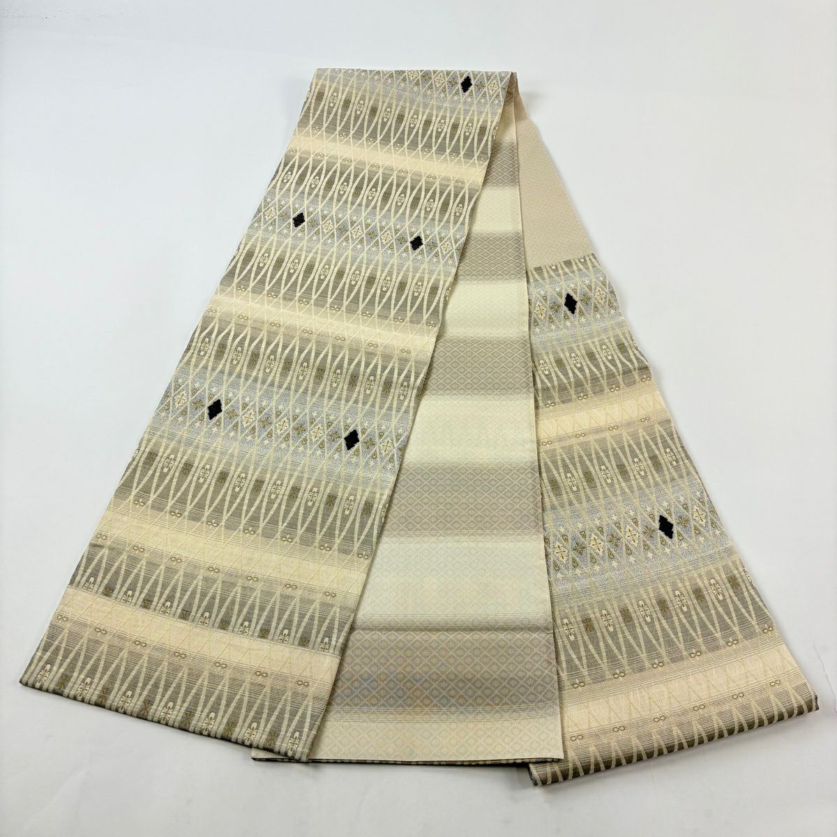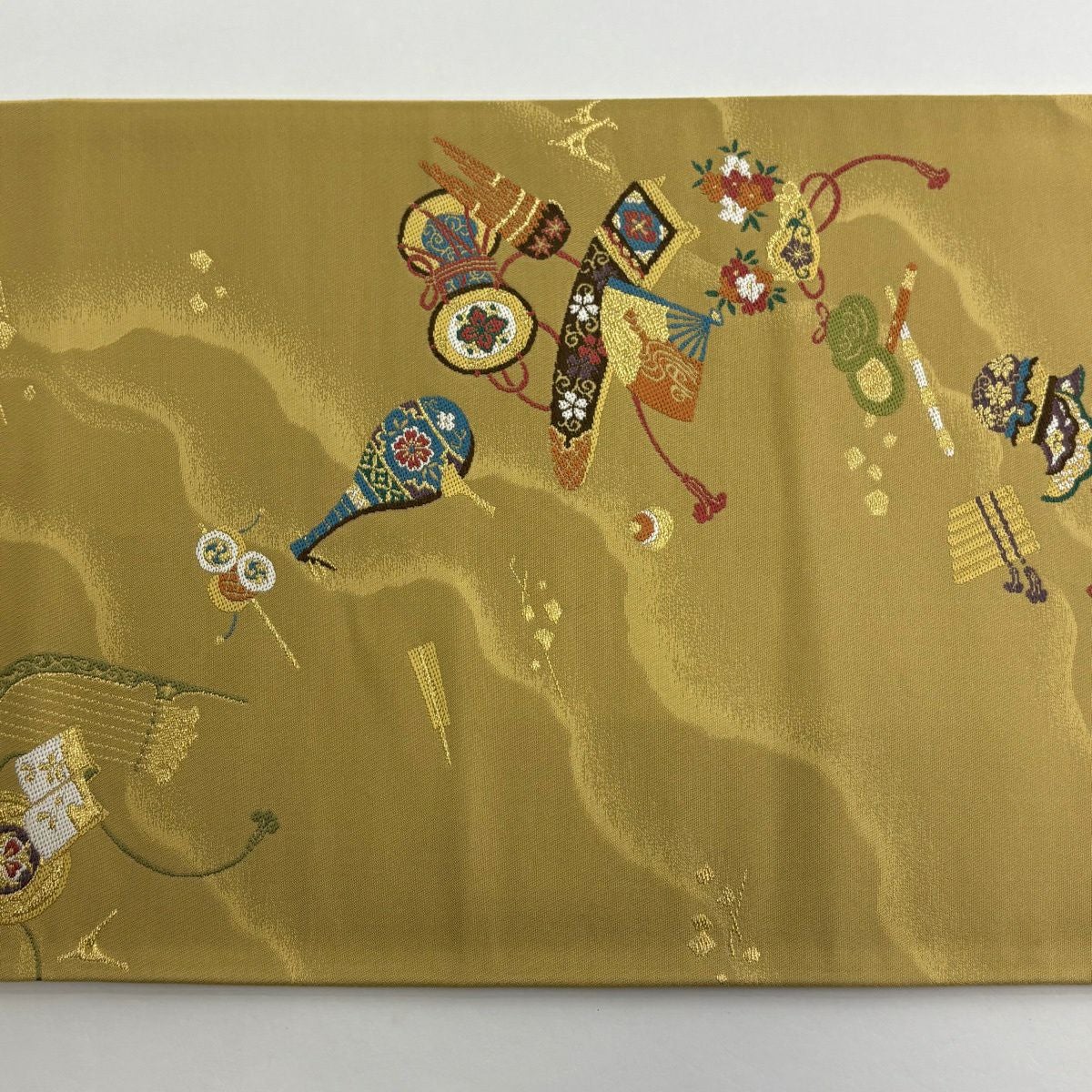 袋帯とは女性用の主にフォーマル用の帯で第一礼装として着用されることが多く、形状は表地にのみ柄があり裏地は無地になるように袋状に織って作成されたため袋帯という名が付きました。 帯を締める際にはおめでたいことが重なりますようにという願いが込められている二重太鼓や成人式の際に振袖に見かけるふくら雀や文庫結びなどの変わり結びを用いて着用します。