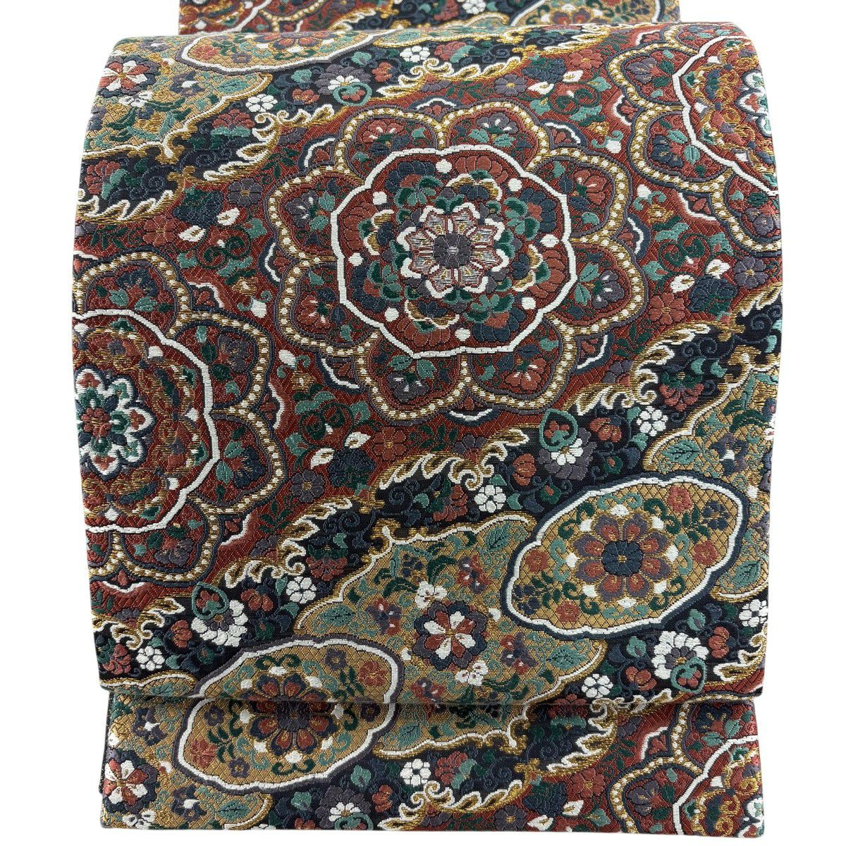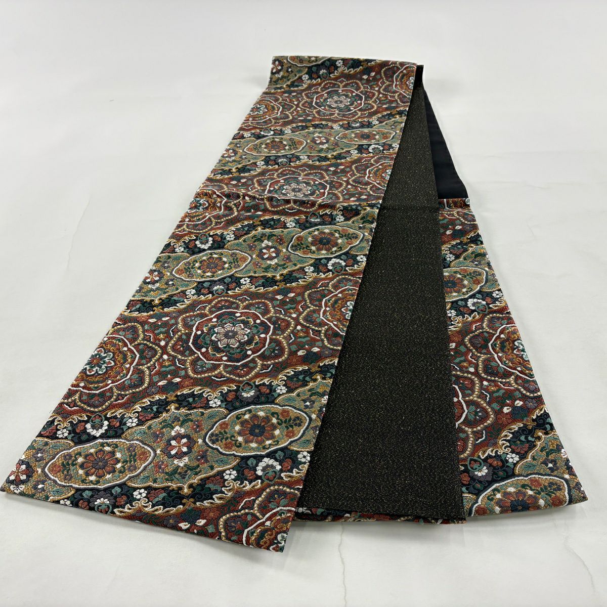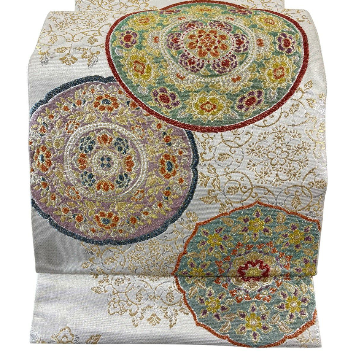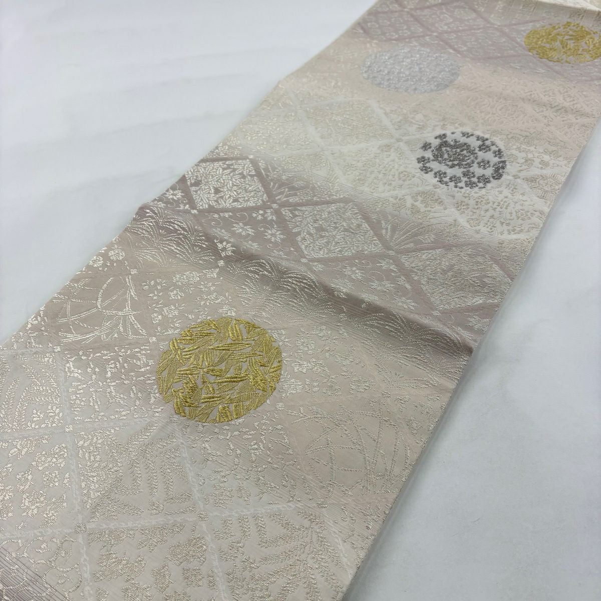 袋帯とは女性用の主にフォーマル用の帯で第一礼装として着用されることが多く、形状は表地にのみ柄があり裏地は無地になるように袋状に織って作成されたため袋帯という名が付きました。 帯を締める際にはおめでたいことが重なりますようにという願いが込められている二重太鼓や成人式の際に振袖に見かけるふくら雀や文庫結びなどの変わり結びを用いて着用します。