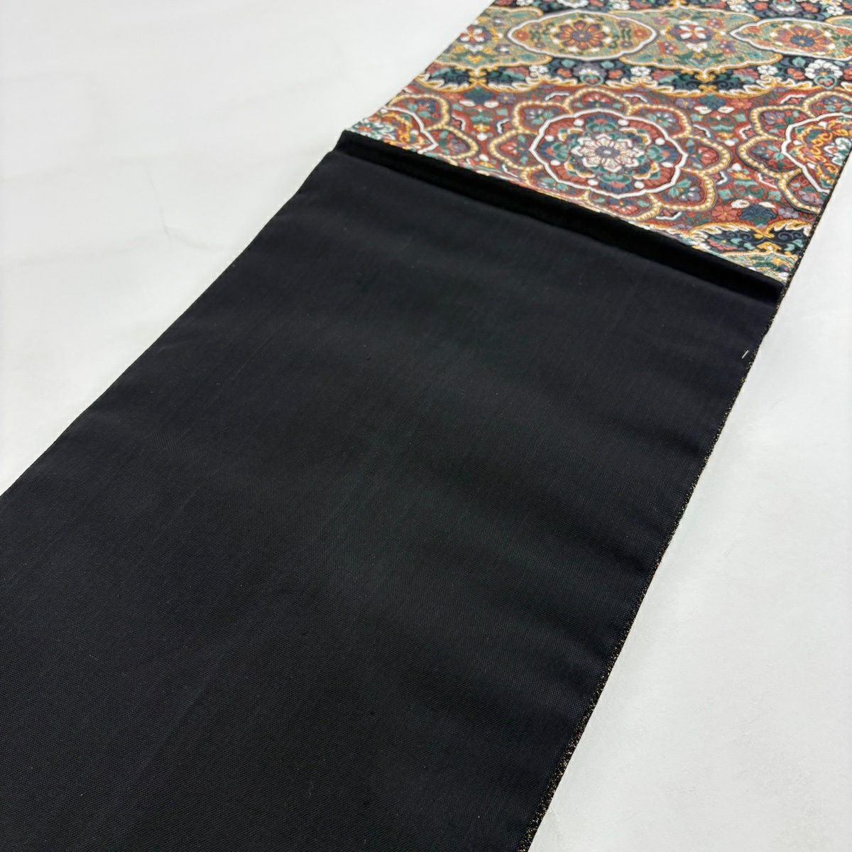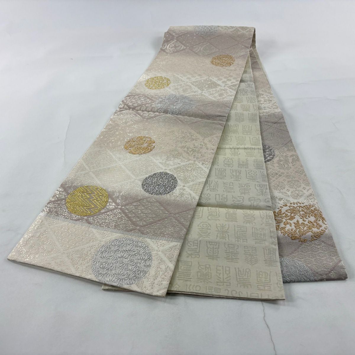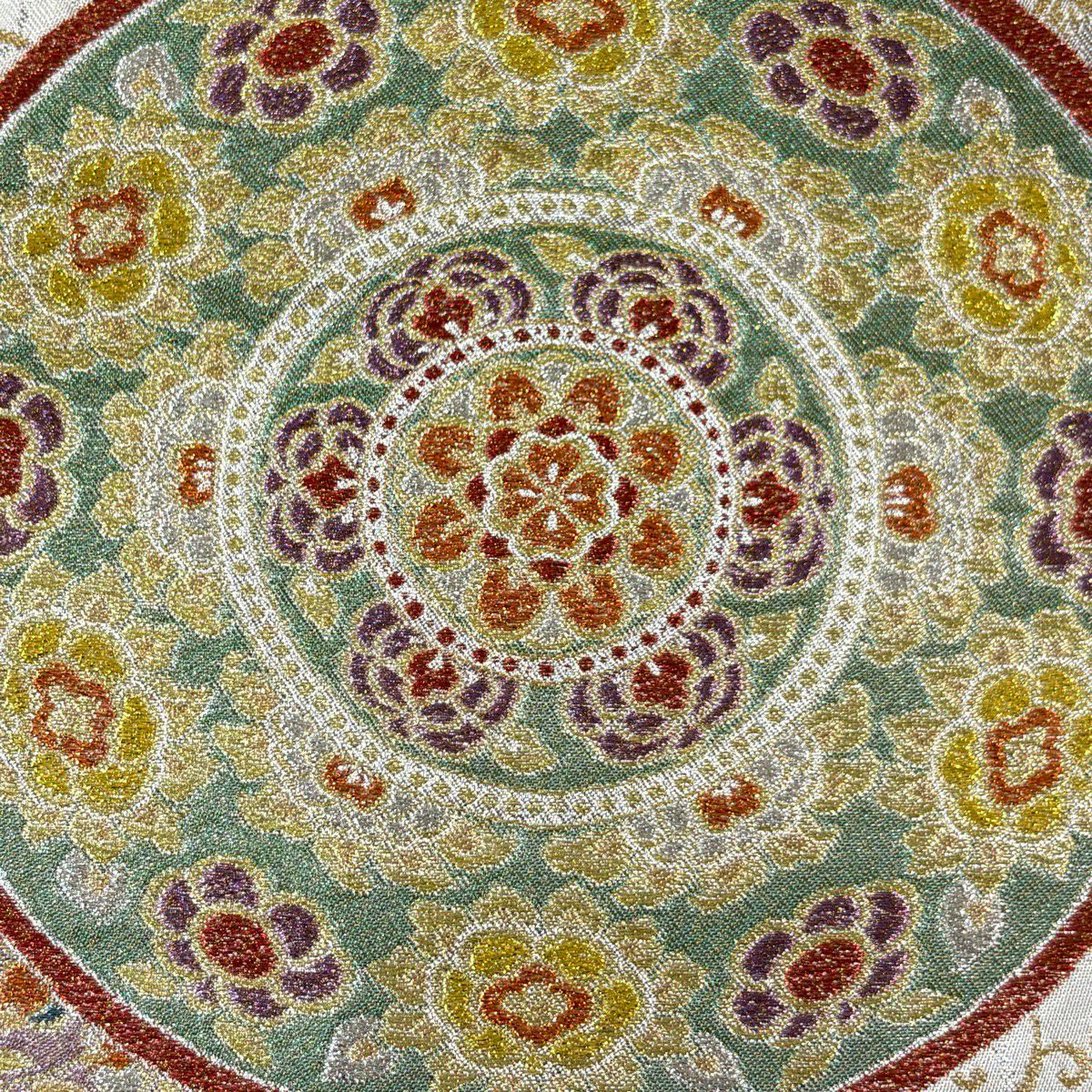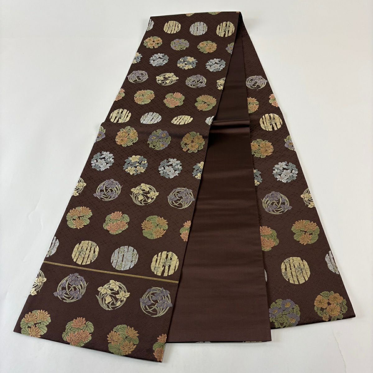 袋帯とは女性用の主にフォーマル用の帯で第一礼装として着用されることが多く、形状は表地にのみ柄があり裏地は無地になるように袋状に織って作成されたため袋帯という名が付きました。 帯を締める際にはおめでたいことが重なりますようにという願いが込められている二重太鼓や成人式の際に振袖に見かけるふくら雀や文庫結びなどの変わり結びを用いて着用します。