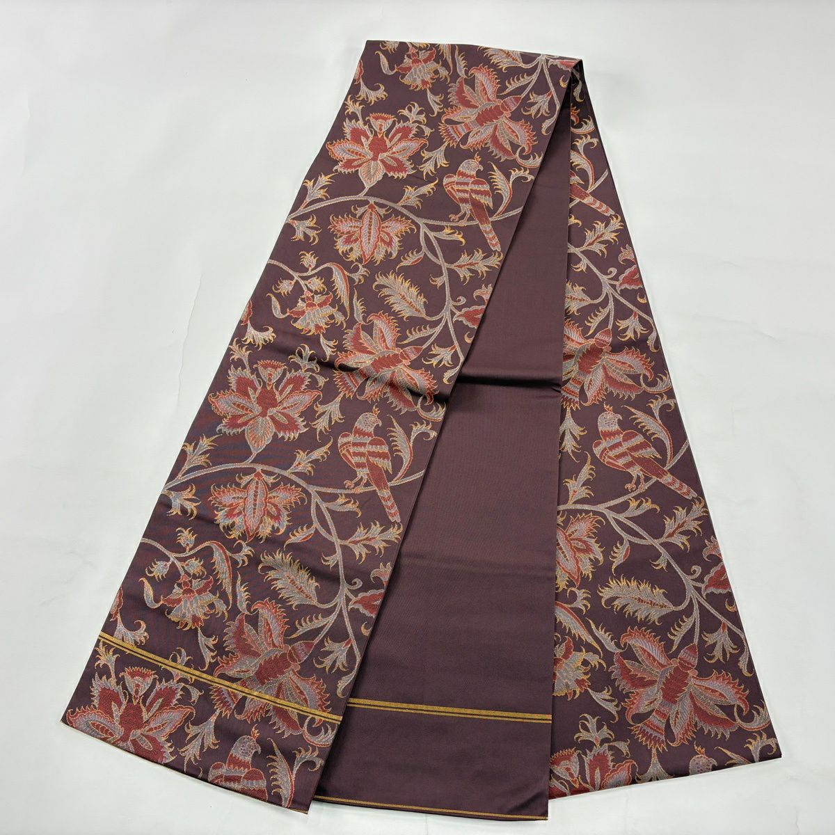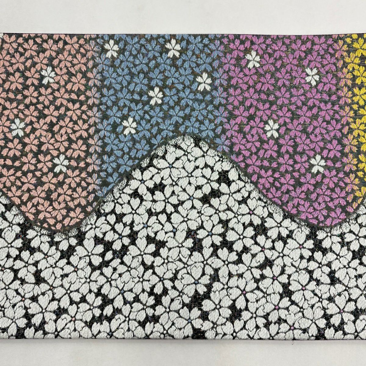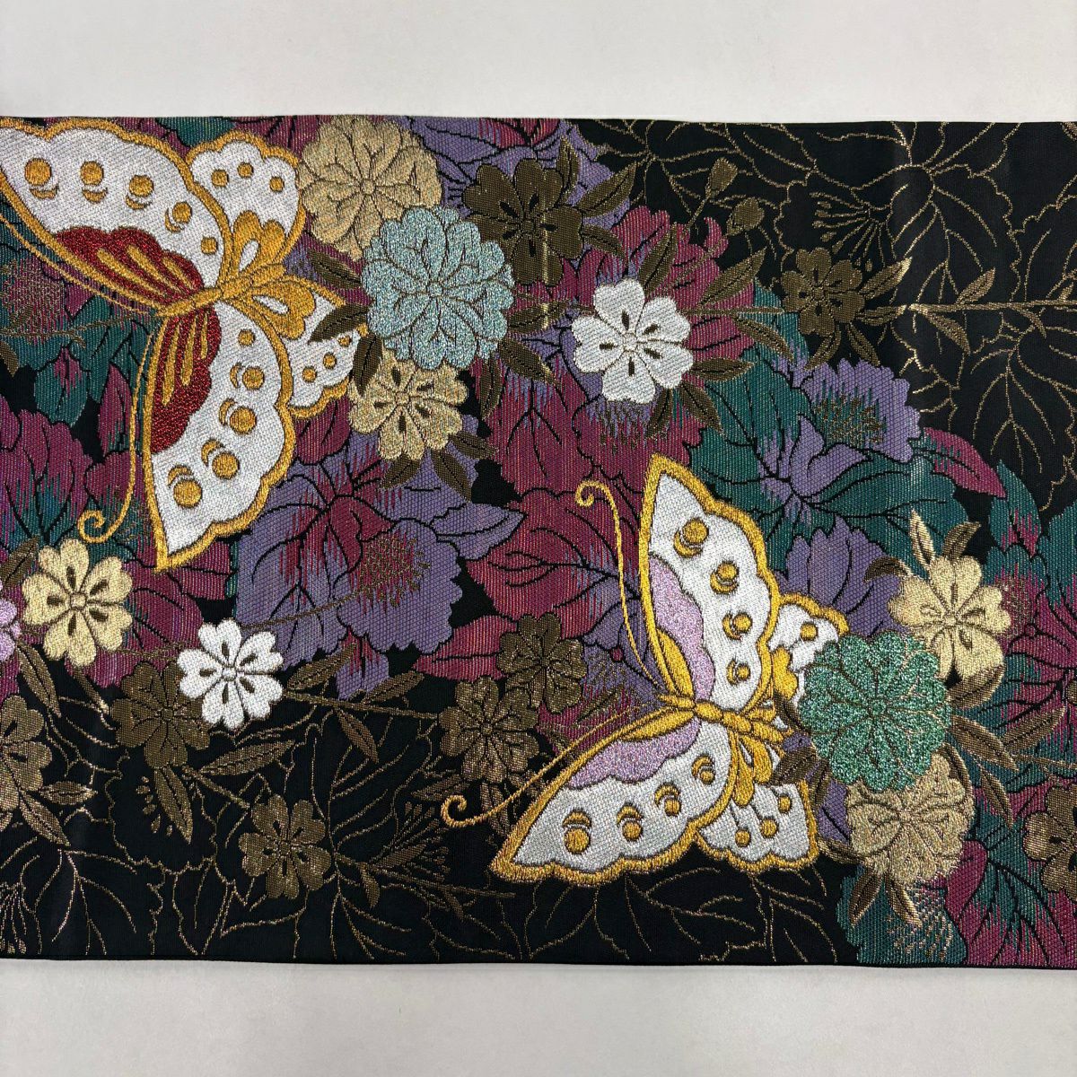 袋帯とは女性用の主にフォーマル用の帯で第一礼装として着用されることが多く、形状は表地にのみ柄があり裏地は無地になるように袋状に織って作成されたため袋帯という名が付きました。 帯を締める際にはおめでたいことが重なりますようにという願いが込められている二重太鼓や成人式の際に振袖に見かけるふくら雀や文庫結びなどの変わり結びを用いて着用します。
