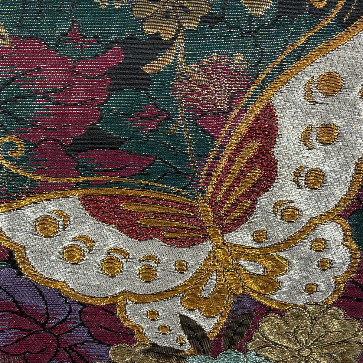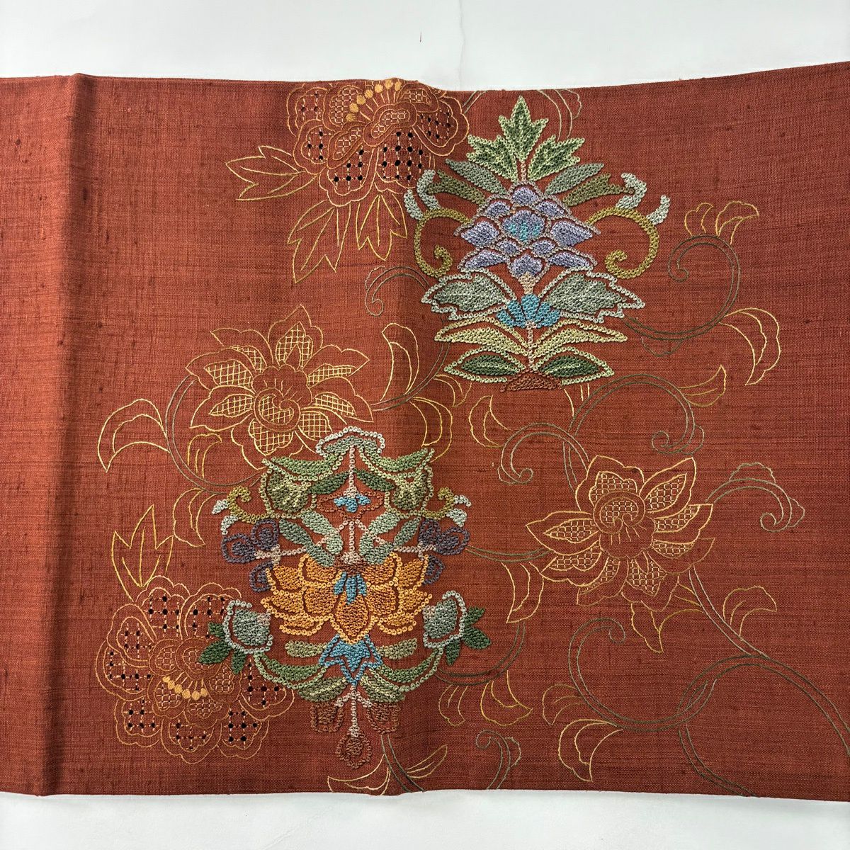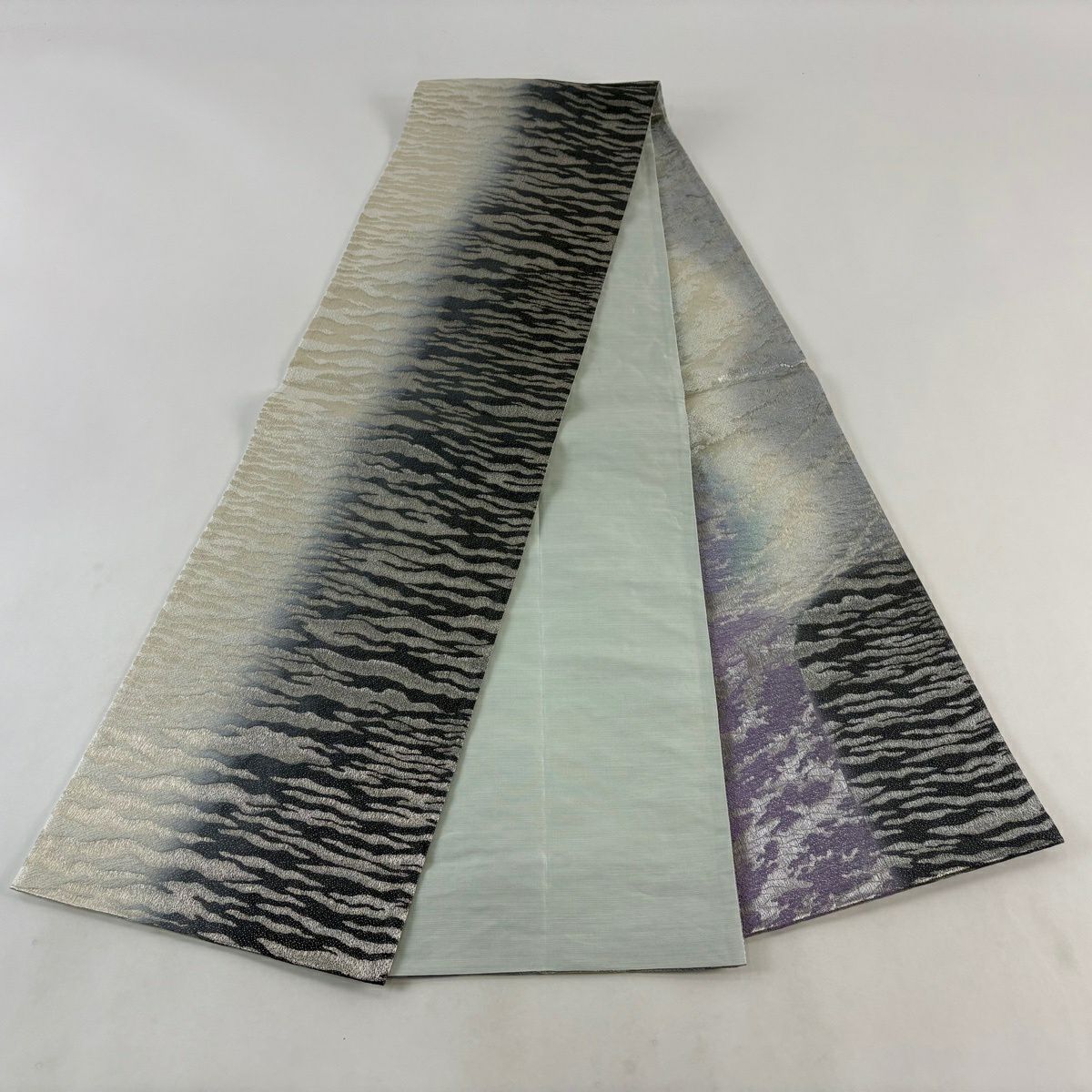 袋帯とは女性用の主にフォーマル用の帯で第一礼装として着用されることが多く、形状は表地にのみ柄があり裏地は無地になるように袋状に織って作成されたため袋帯という名が付きました。 帯を締める際にはおめでたいことが重なりますようにという願いが込められている二重太鼓や成人式の際に振袖に見かけるふくら雀や文庫結びなどの変わり結びを用いて着用します。