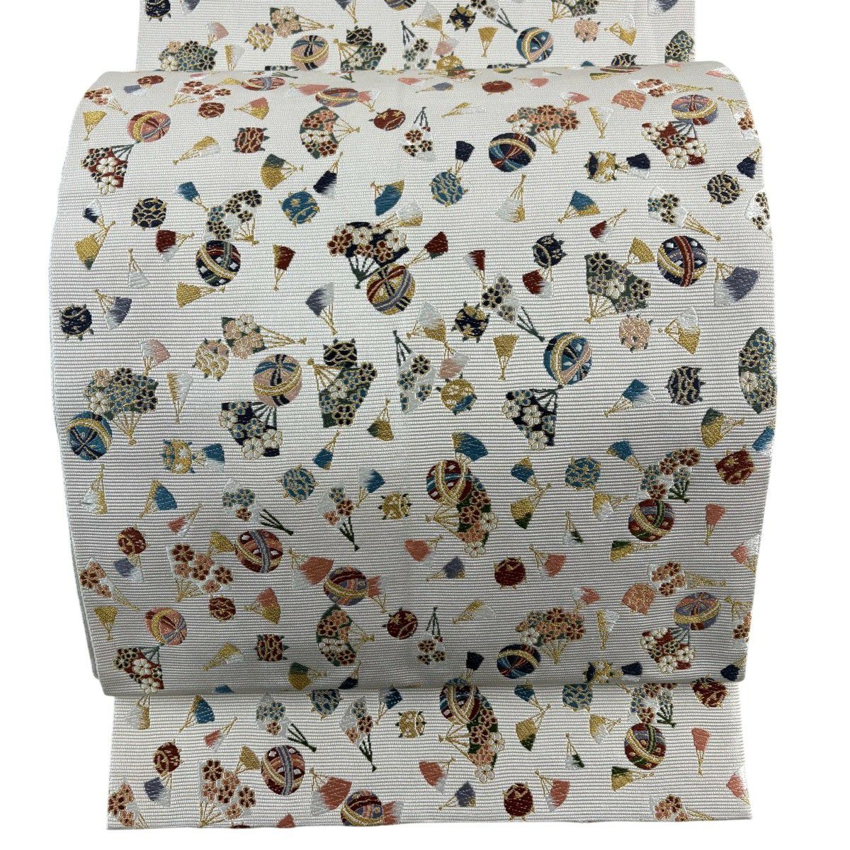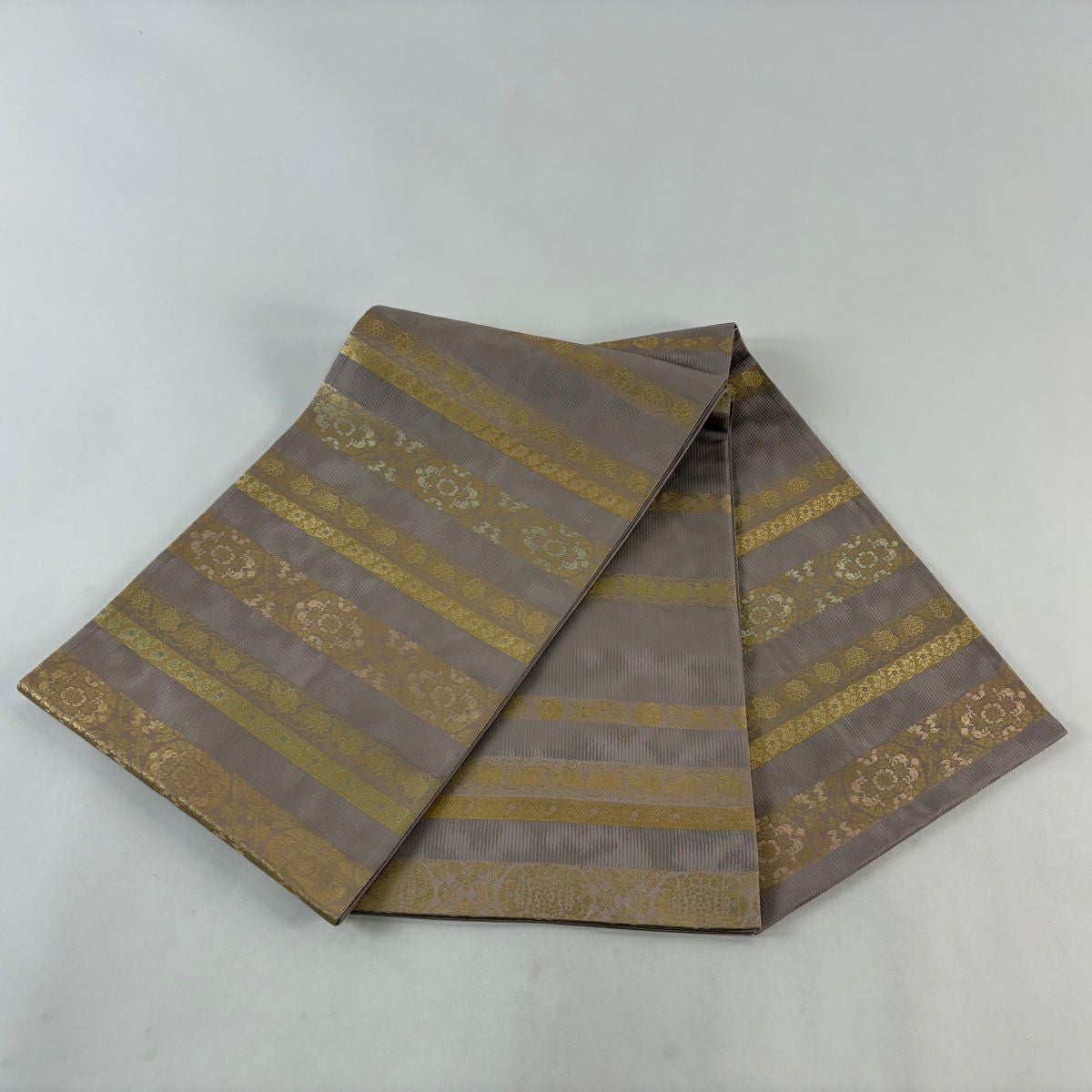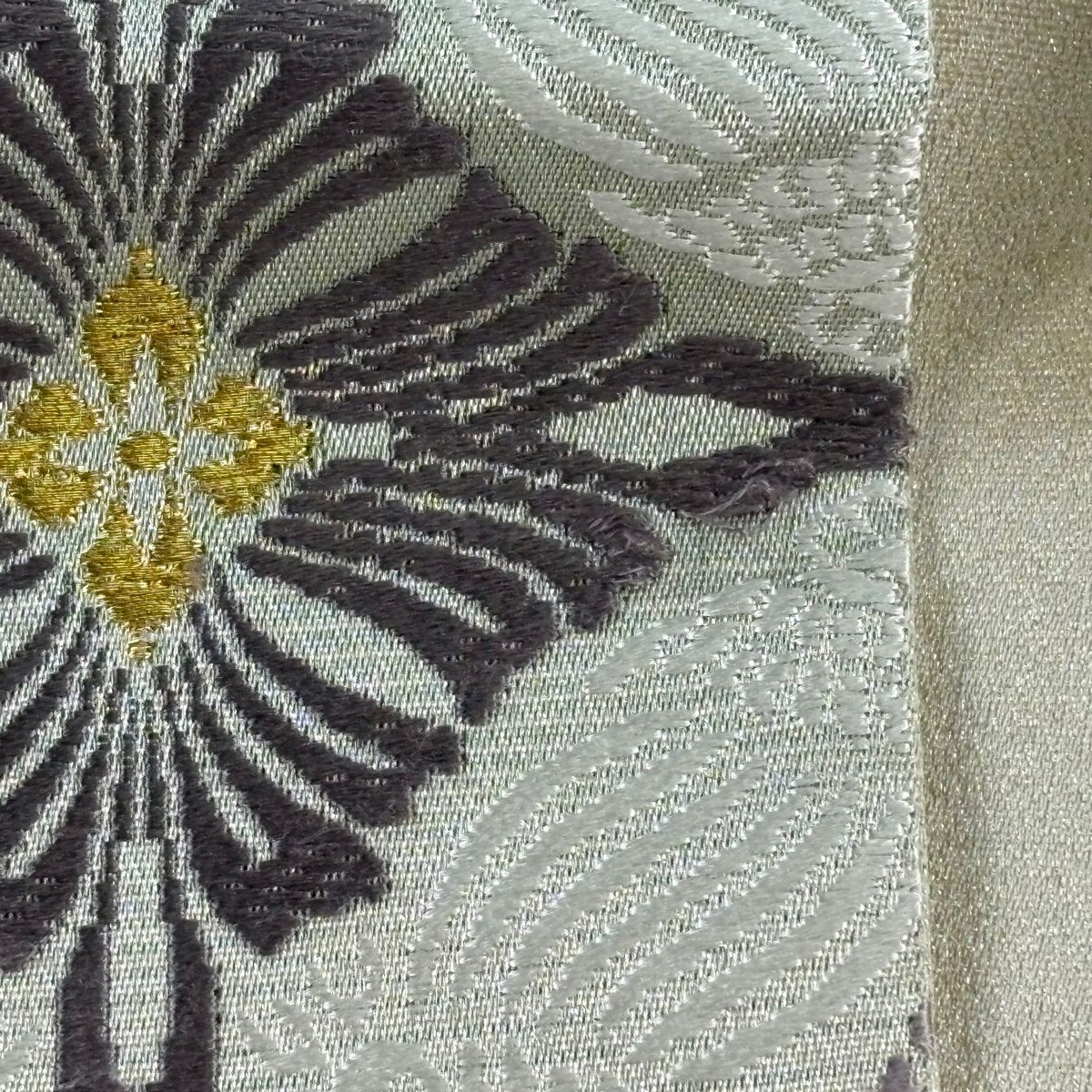 袋帯とは女性用の主にフォーマル用の帯で第一礼装として着用されることが多く、形状は表地にのみ柄があり裏地は無地になるように袋状に織って作成されたため袋帯という名が付きました。 帯を締める際にはおめでたいことが重なりますようにという願いが込められている二重太鼓や成人式の際に振袖に見かけるふくら雀や文庫結びなどの変わり結びを用いて着用します。