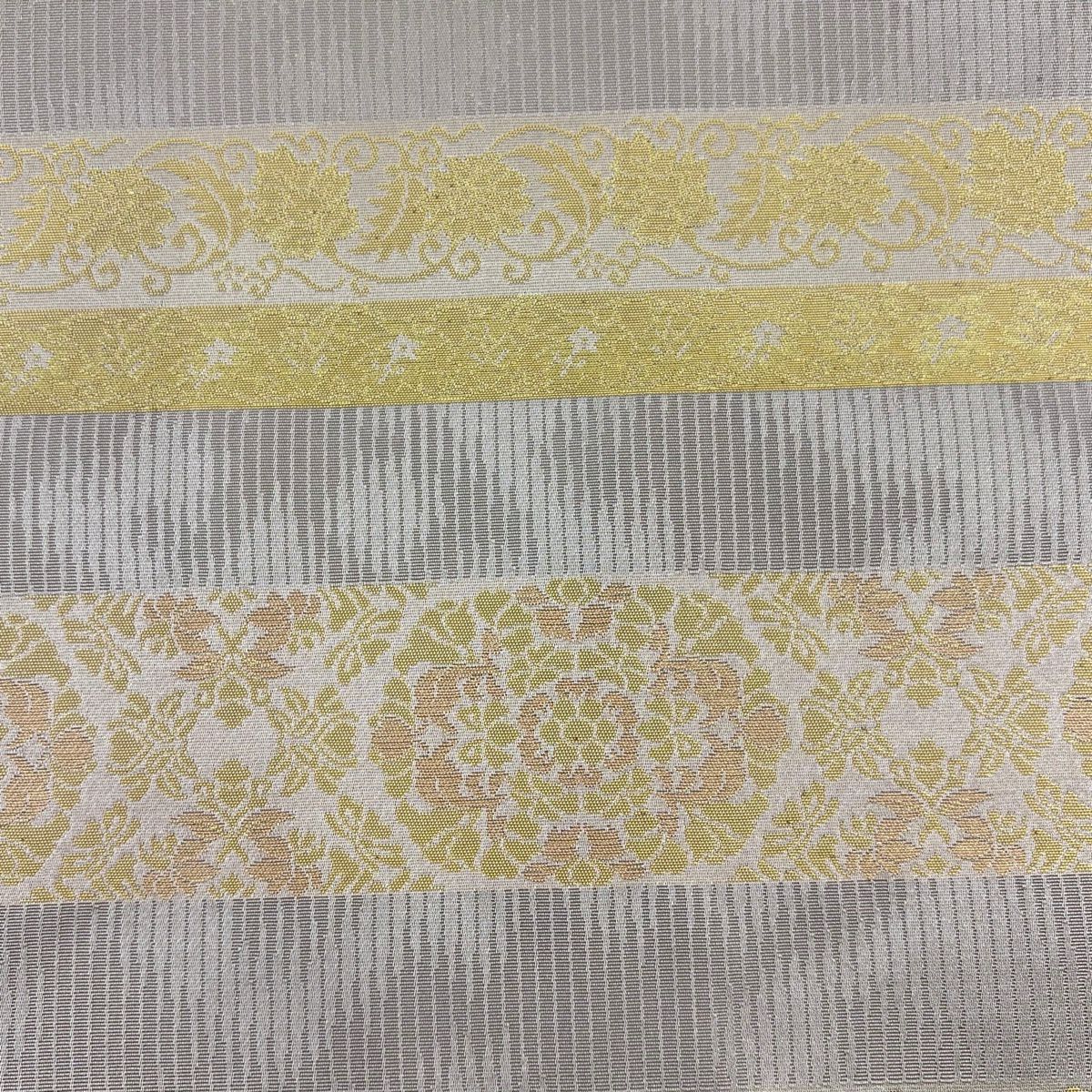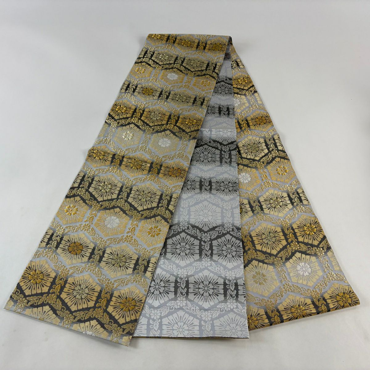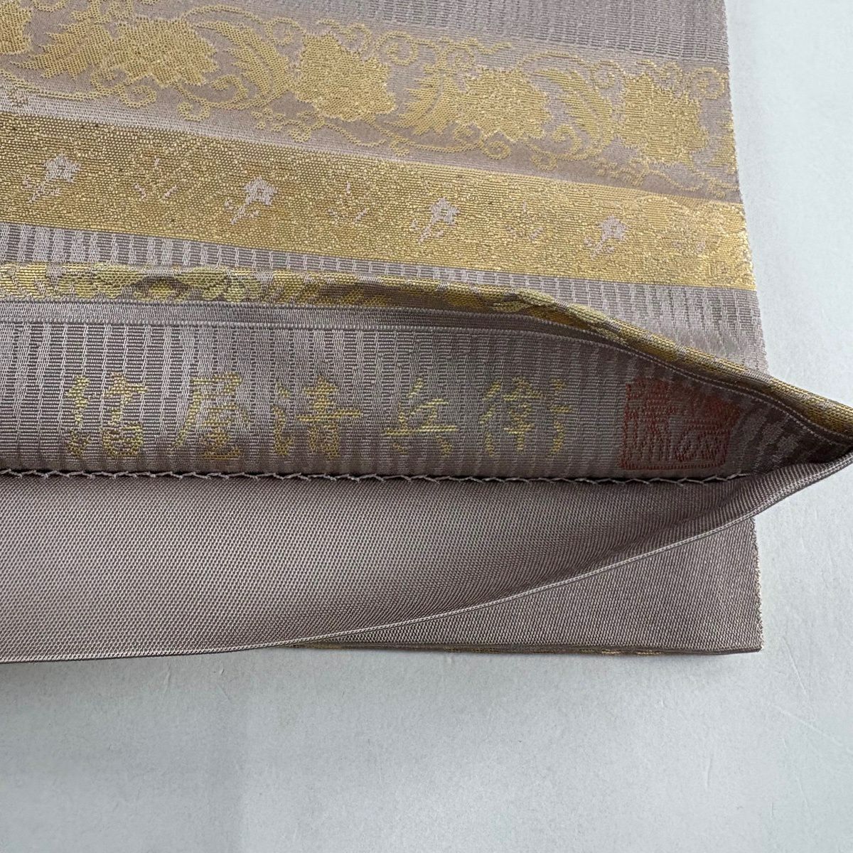 袋帯とは女性用の主にフォーマル用の帯で第一礼装として着用されることが多く、形状は表地にのみ柄があり裏地は無地になるように袋状に織って作成されたため袋帯という名が付きました。 帯を締める際にはおめでたいことが重なりますようにという願いが込められている二重太鼓や成人式の際に振袖に見かけるふくら雀や文庫結びなどの変わり結びを用いて着用します。