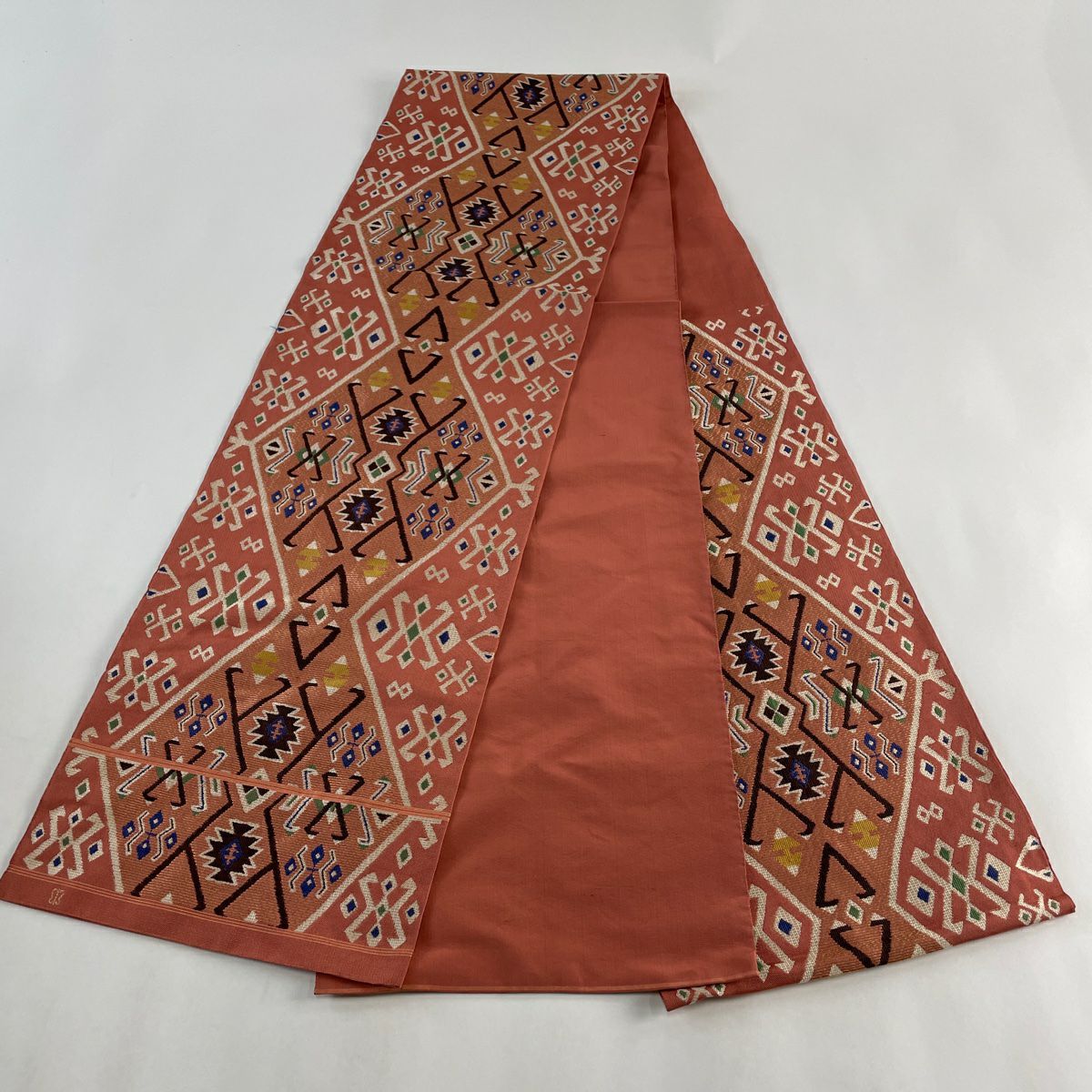 袋帯とは女性用の主にフォーマル用の帯で第一礼装として着用されることが多く、形状は表地にのみ柄があり裏地は無地になるように袋状に織って作成されたため袋帯という名が付きました。 帯を締める際にはおめでたいことが重なりますようにという願いが込められている二重太鼓や成人式の際に振袖に見かけるふくら雀や文庫結びなどの変わり結びを用いて着用します。