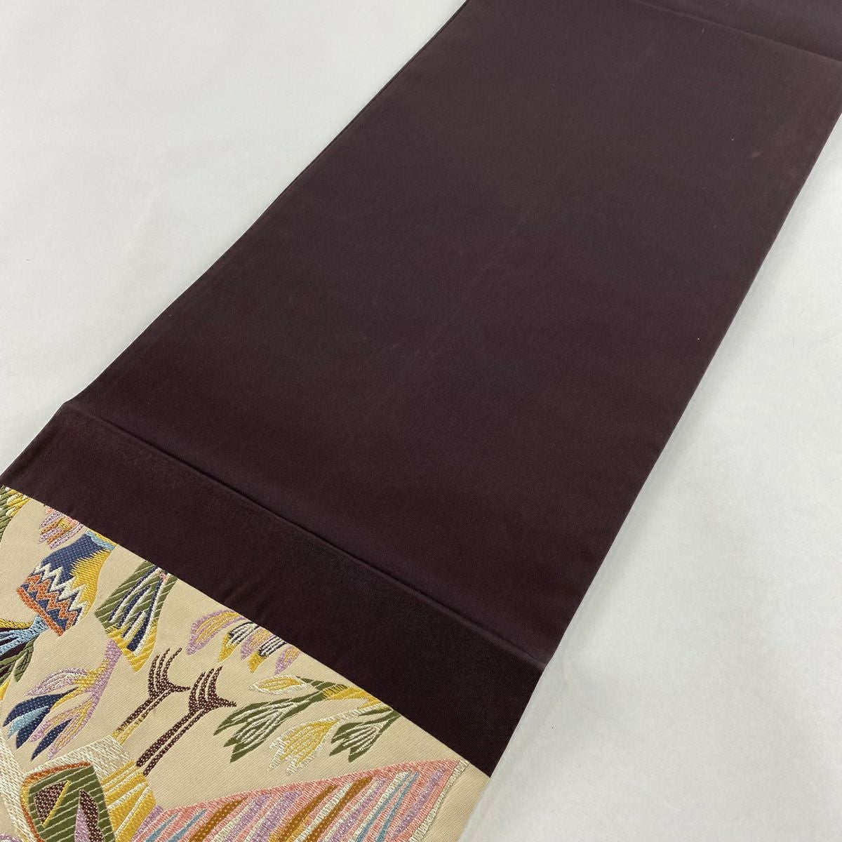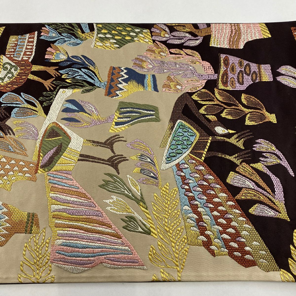 袋帯とは女性用の主にフォーマル用の帯で第一礼装として着用されることが多く、形状は表地にのみ柄があり裏地は無地になるように袋状に織って作成されたため袋帯という名が付きました。 帯を締める際にはおめでたいことが重なりますようにという願いが込められている二重太鼓や成人式の際に振袖に見かけるふくら雀や文庫結びなどの変わり結びを用いて着用します。
