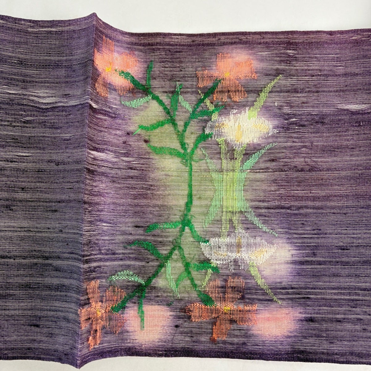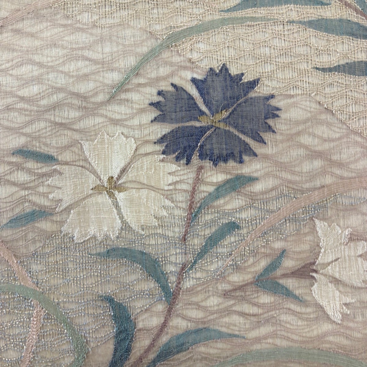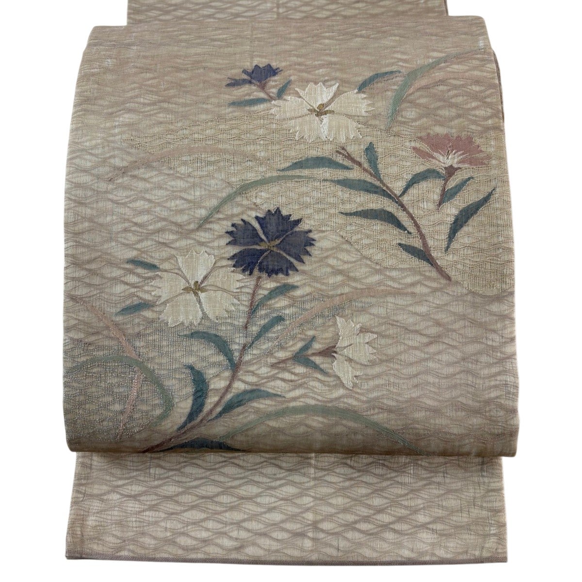 袋帯とは女性用の主にフォーマル用の帯で第一礼装として着用されることが多く、形状は表地にのみ柄があり裏地は無地になるように袋状に織って作成されたため袋帯という名が付きました。 帯を締める際にはおめでたいことが重なりますようにという願いが込められている二重太鼓や成人式の際に振袖に見かけるふくら雀や文庫結びなどの変わり結びを用いて着用します。