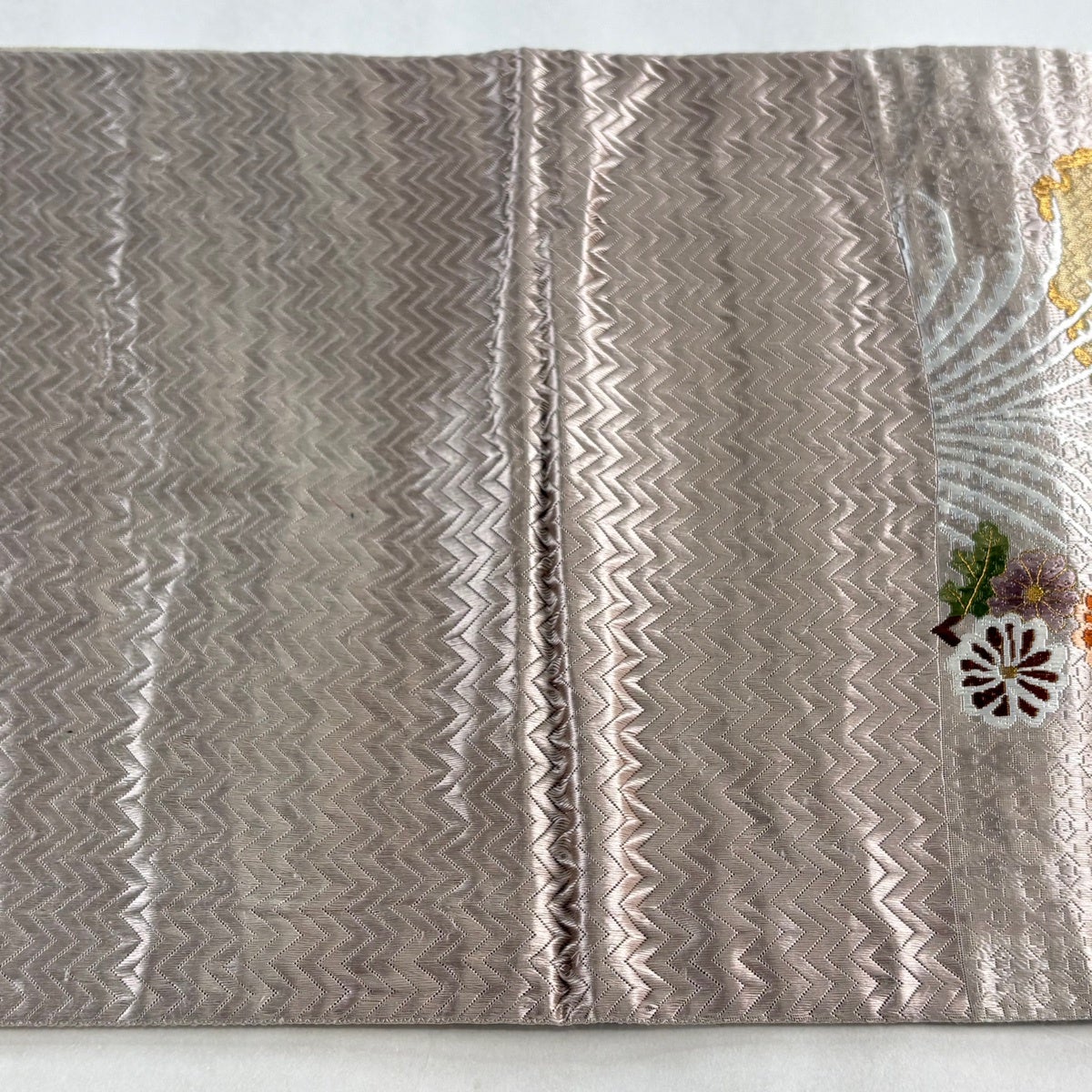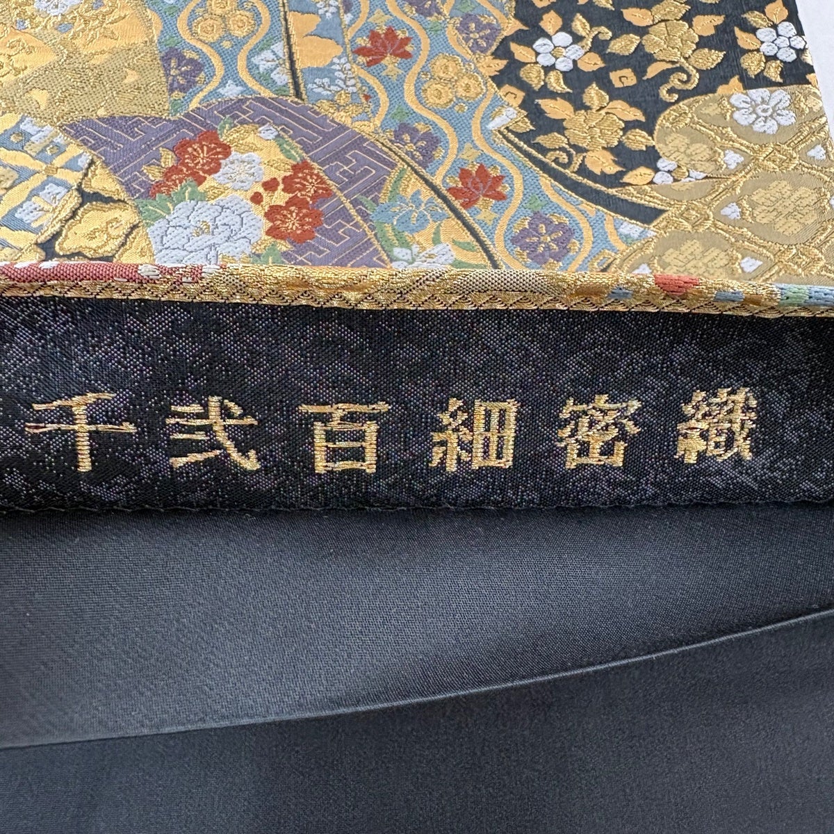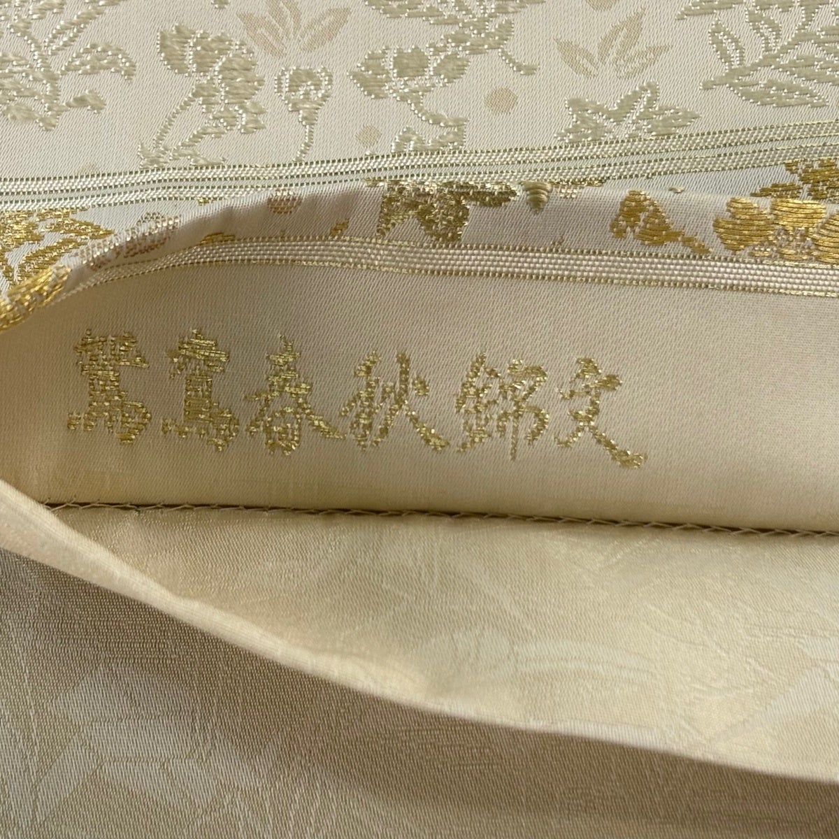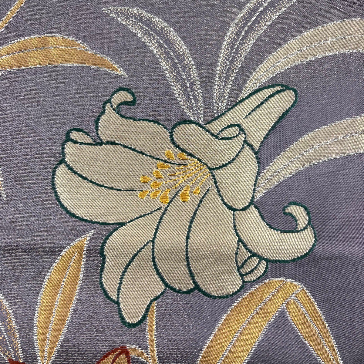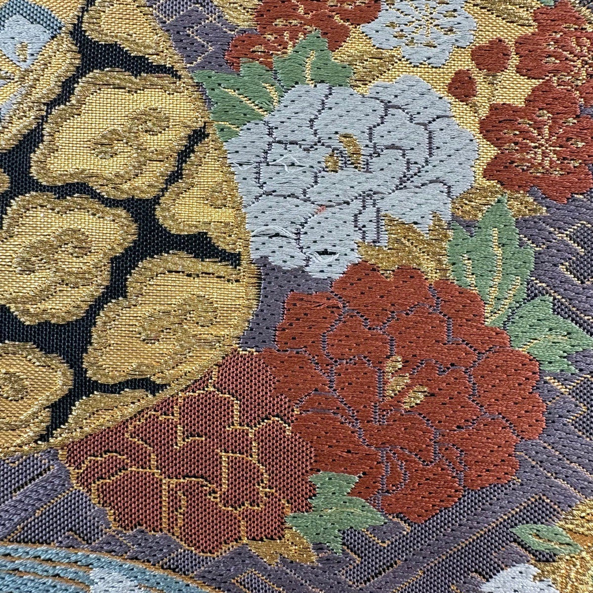 袋帯とは女性用の主にフォーマル用の帯で第一礼装として着用されることが多く、形状は表地にのみ柄があり裏地は無地になるように袋状に織って作成されたため袋帯という名が付きました。 帯を締める際にはおめでたいことが重なりますようにという願いが込められている二重太鼓や成人式の際に振袖に見かけるふくら雀や文庫結びなどの変わり結びを用いて着用します。