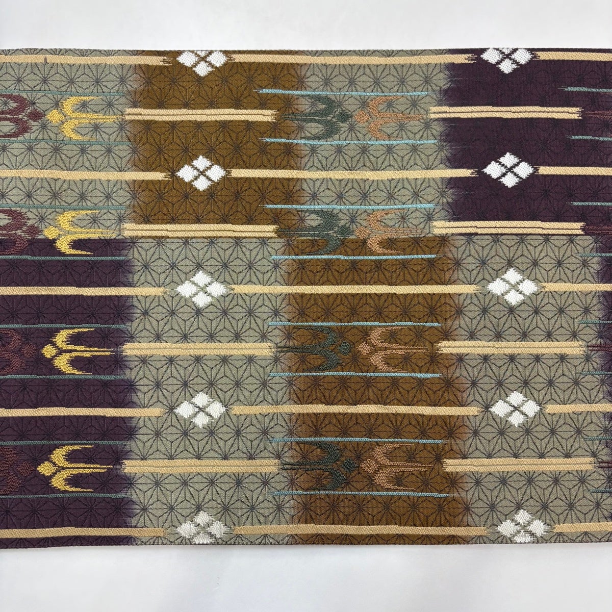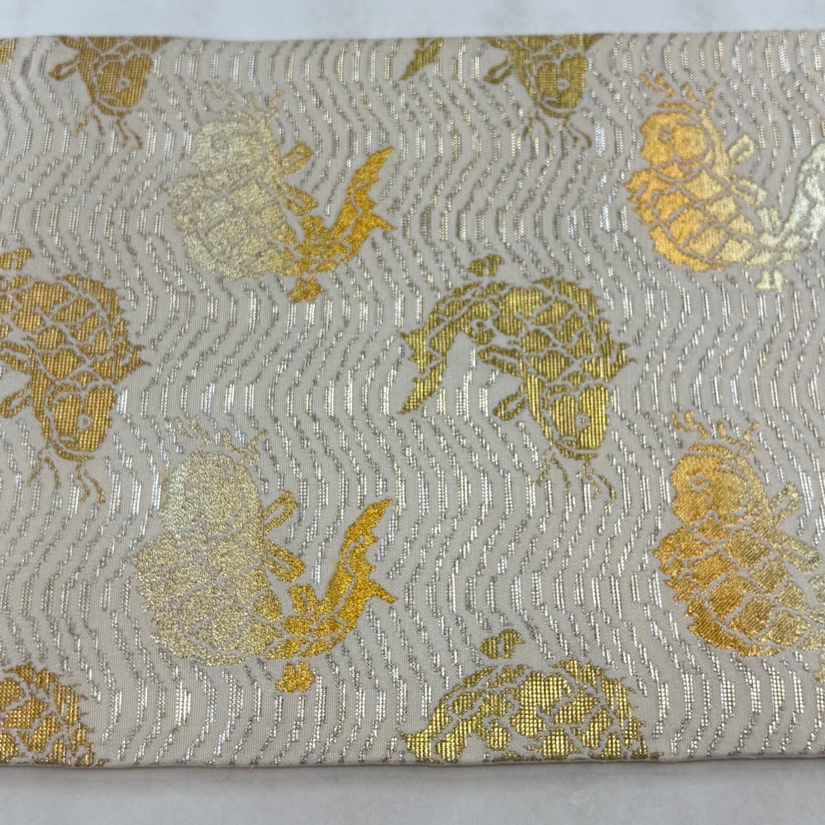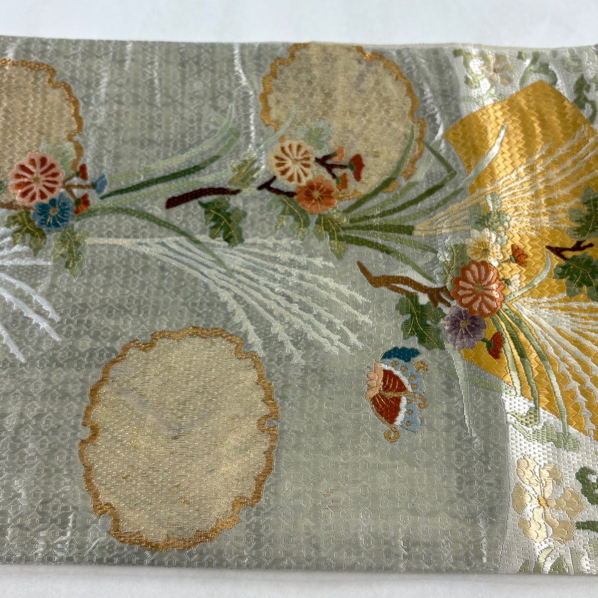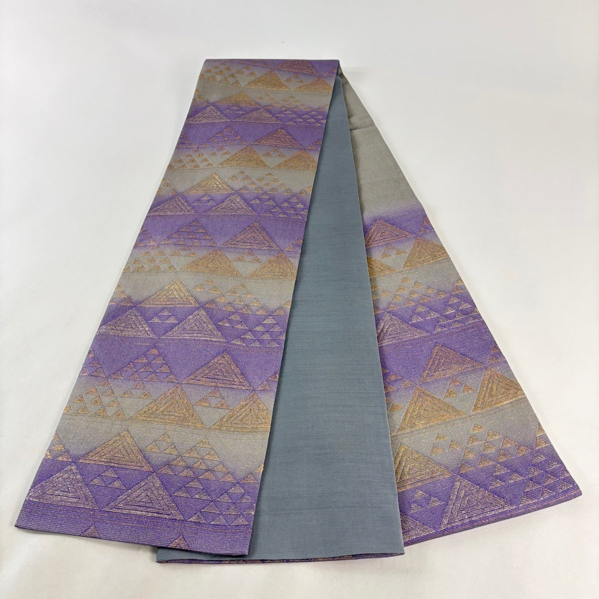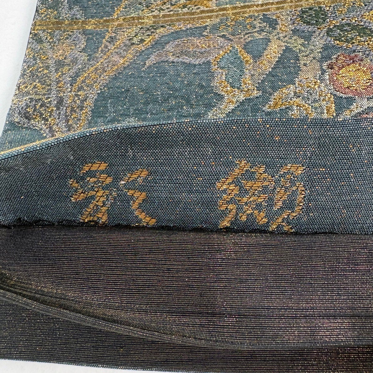 袋帯とは女性用の主にフォーマル用の帯で第一礼装として着用されることが多く、形状は表地にのみ柄があり裏地は無地になるように袋状に織って作成されたため袋帯という名が付きました。 帯を締める際にはおめでたいことが重なりますようにという願いが込められている二重太鼓や成人式の際に振袖に見かけるふくら雀や文庫結びなどの変わり結びを用いて着用します。