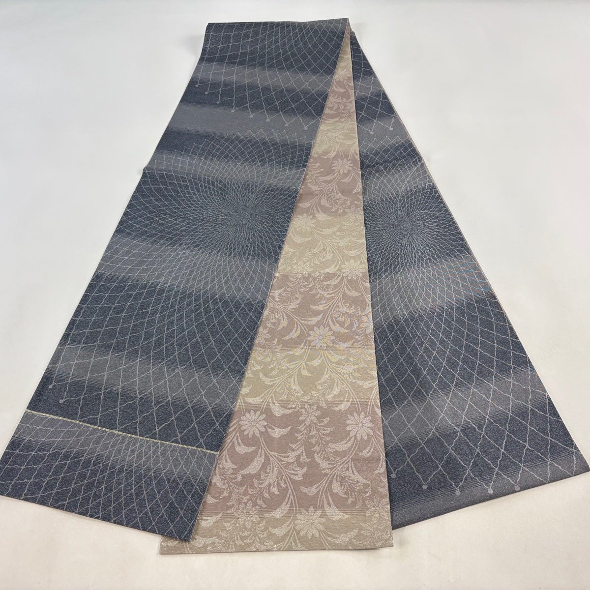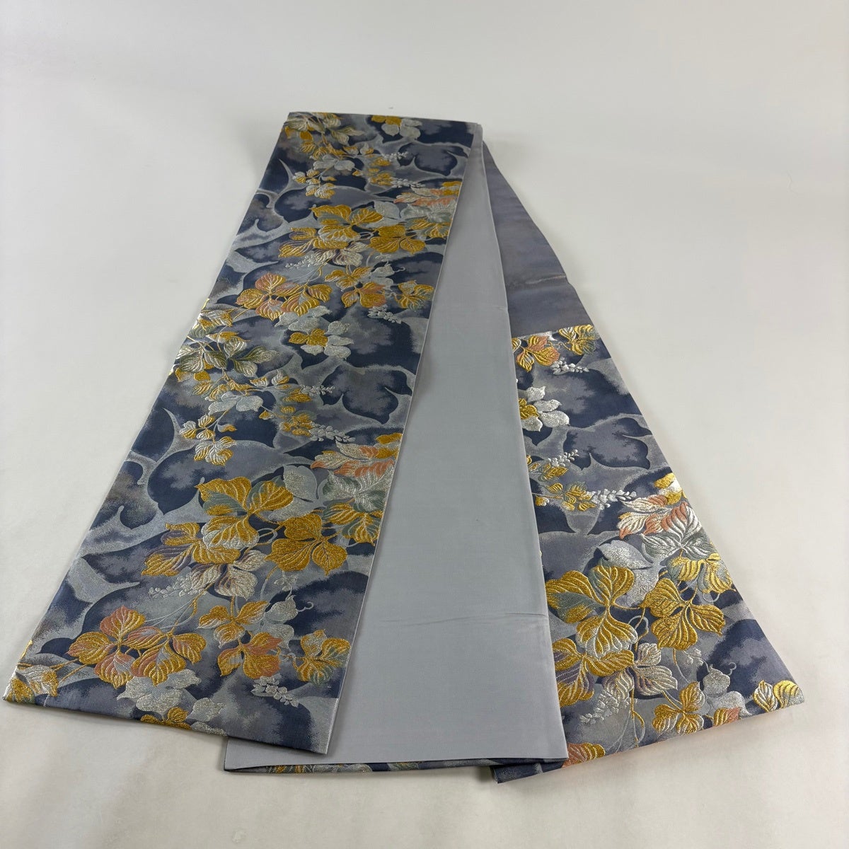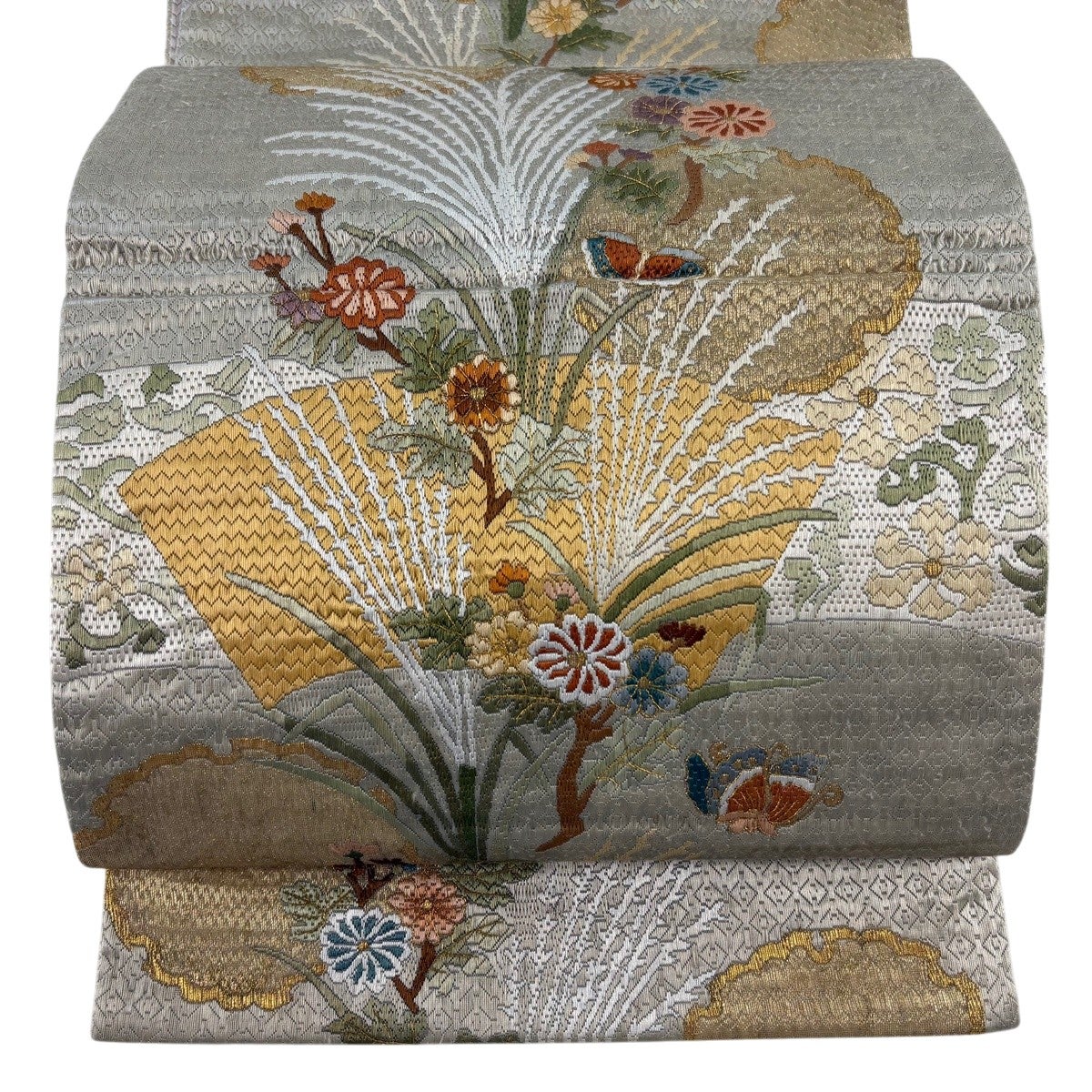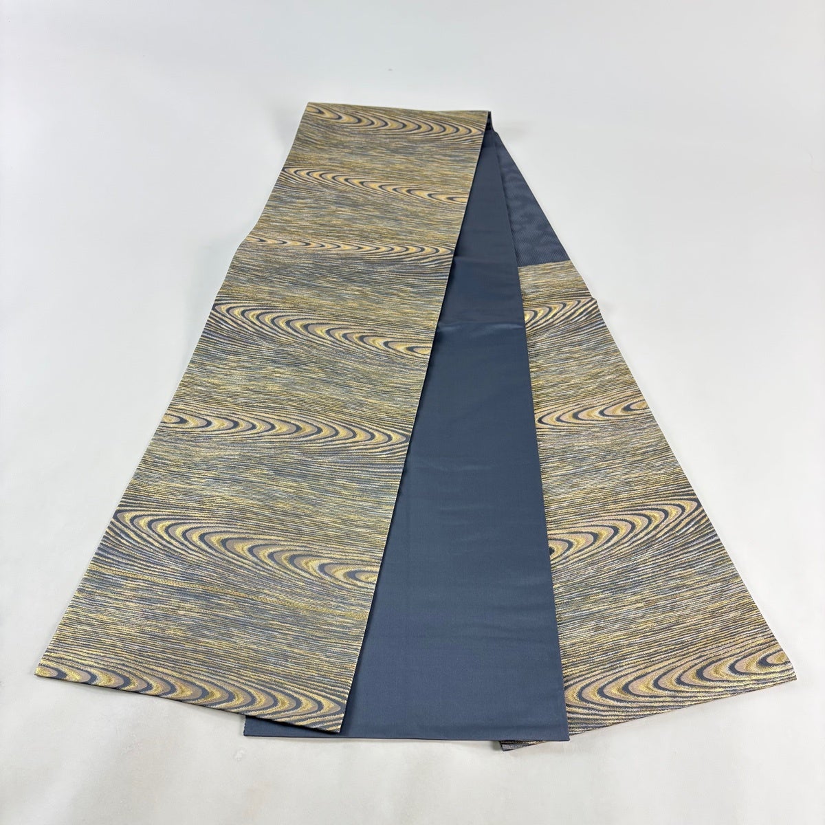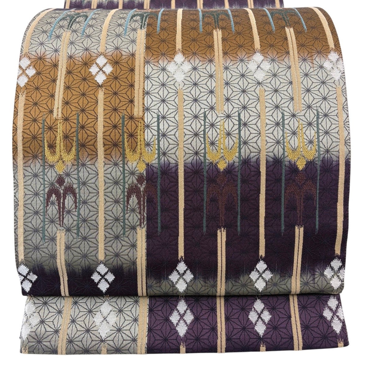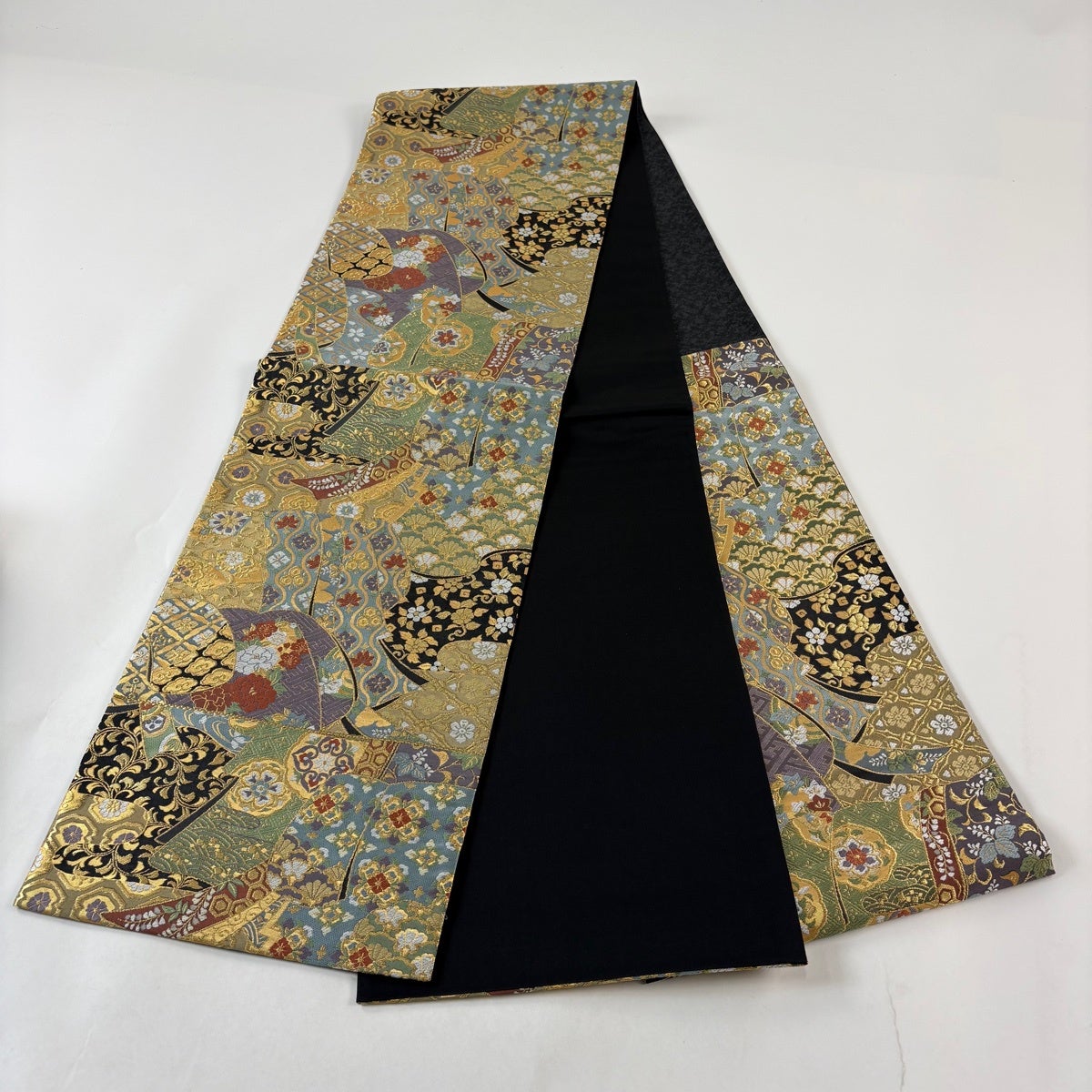 袋帯とは女性用の主にフォーマル用の帯で第一礼装として着用されることが多く、形状は表地にのみ柄があり裏地は無地になるように袋状に織って作成されたため袋帯という名が付きました。 帯を締める際にはおめでたいことが重なりますようにという願いが込められている二重太鼓や成人式の際に振袖に見かけるふくら雀や文庫結びなどの変わり結びを用いて着用します。
