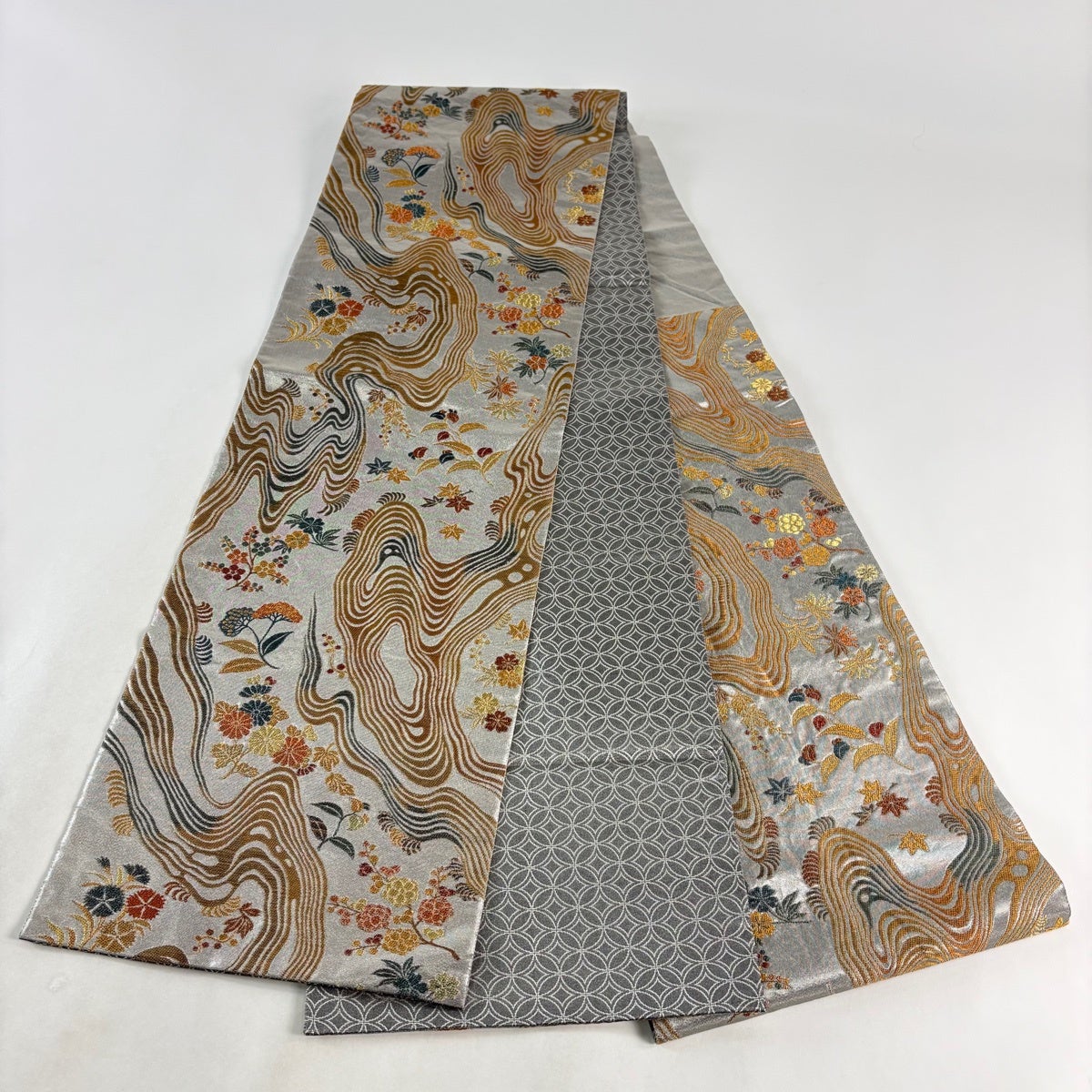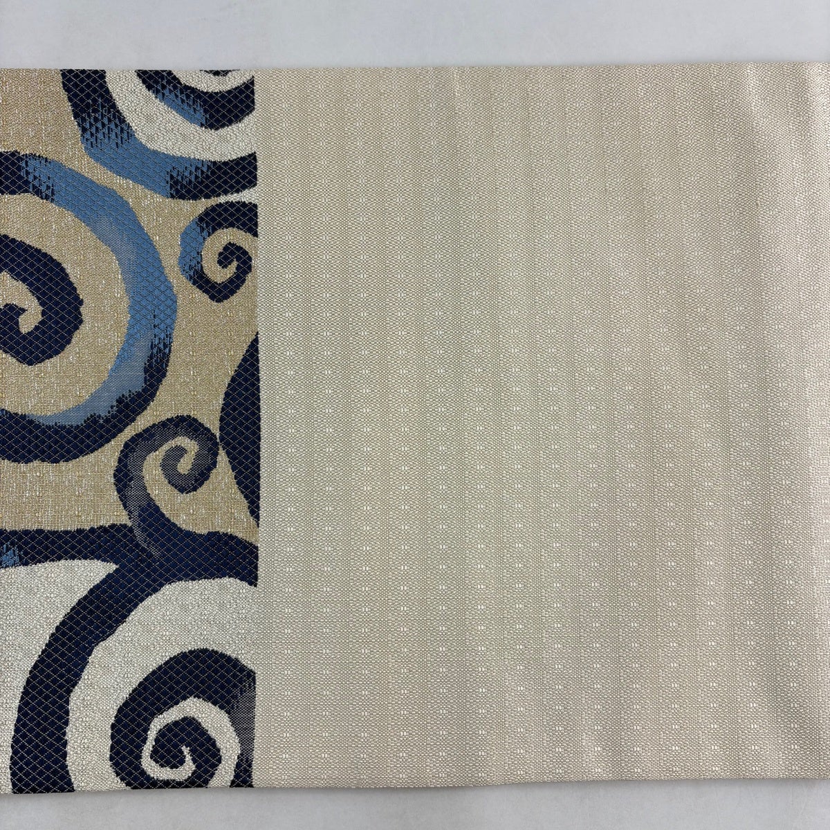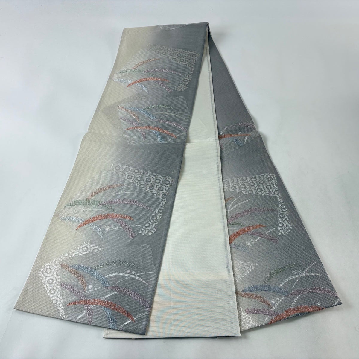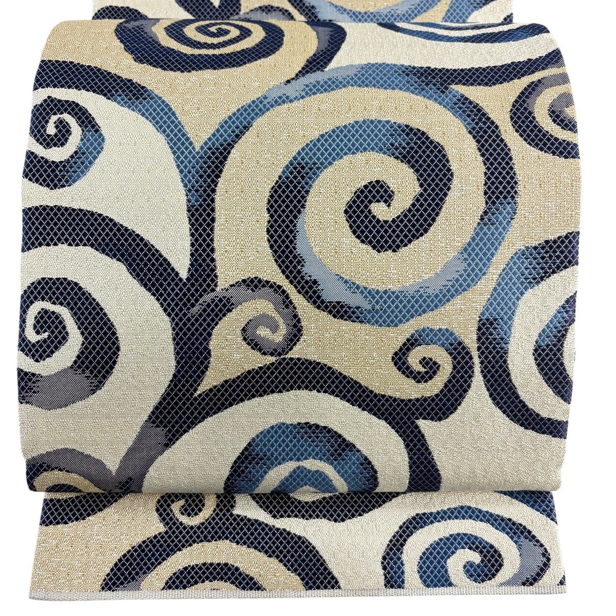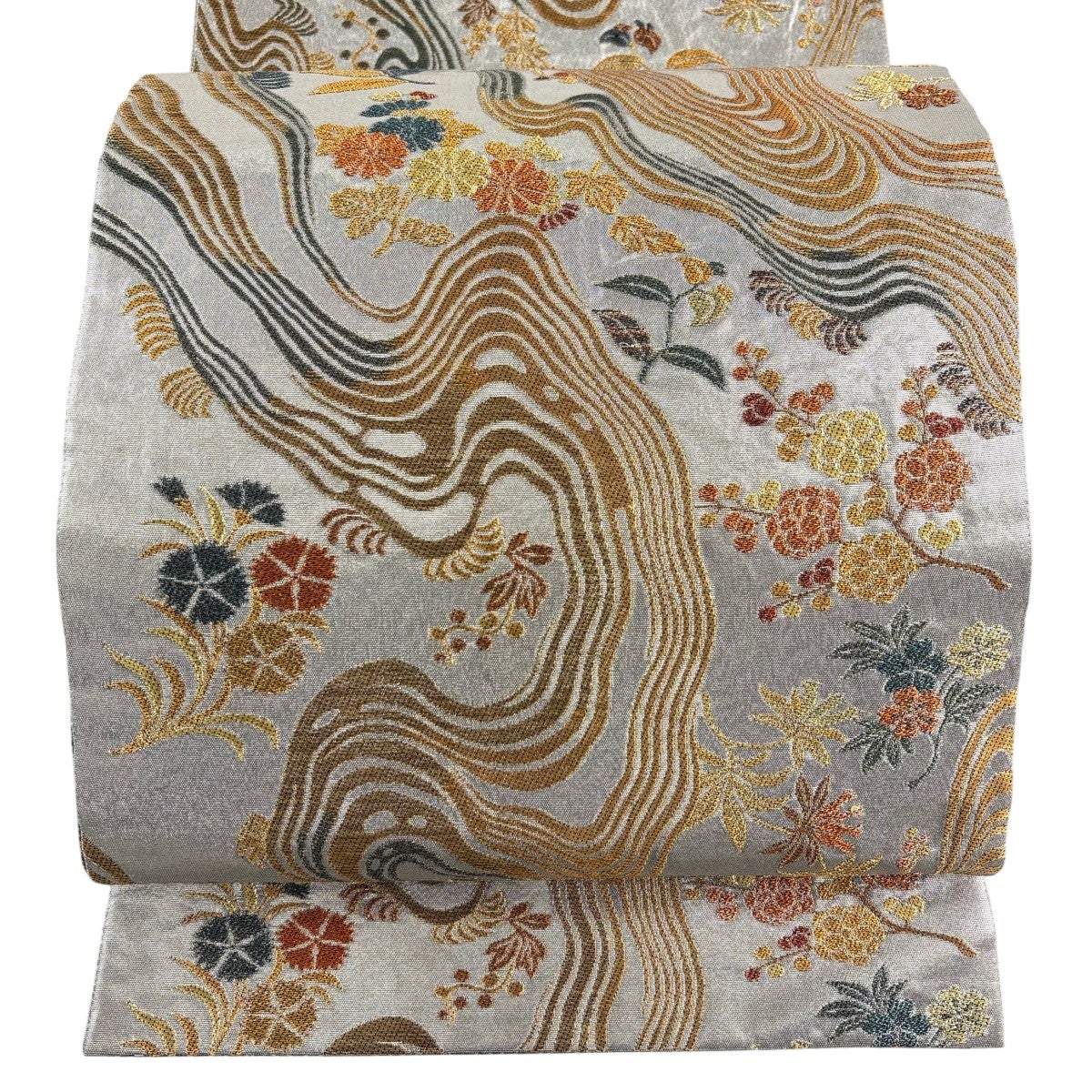 袋帯とは女性用の主にフォーマル用の帯で第一礼装として着用されることが多く、形状は表地にのみ柄があり裏地は無地になるように袋状に織って作成されたため袋帯という名が付きました。 帯を締める際にはおめでたいことが重なりますようにという願いが込められている二重太鼓や成人式の際に振袖に見かけるふくら雀や文庫結びなどの変わり結びを用いて着用します。