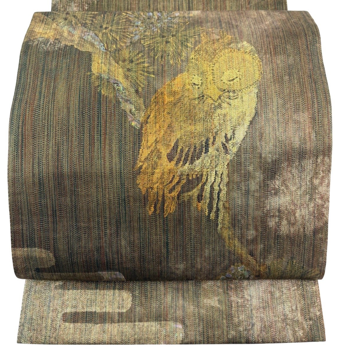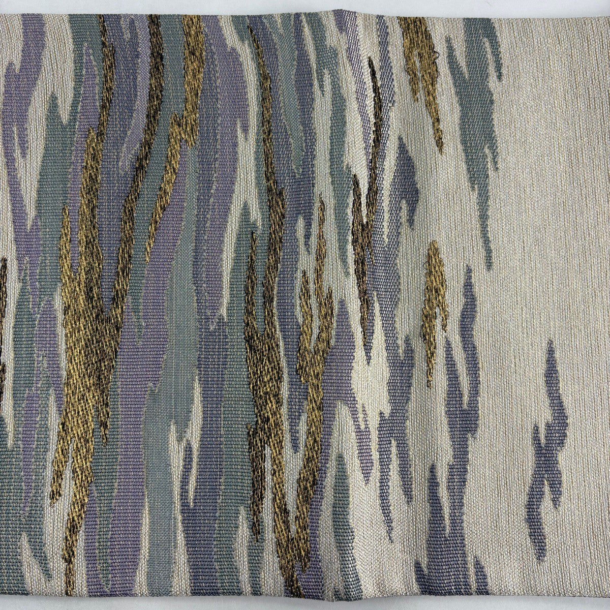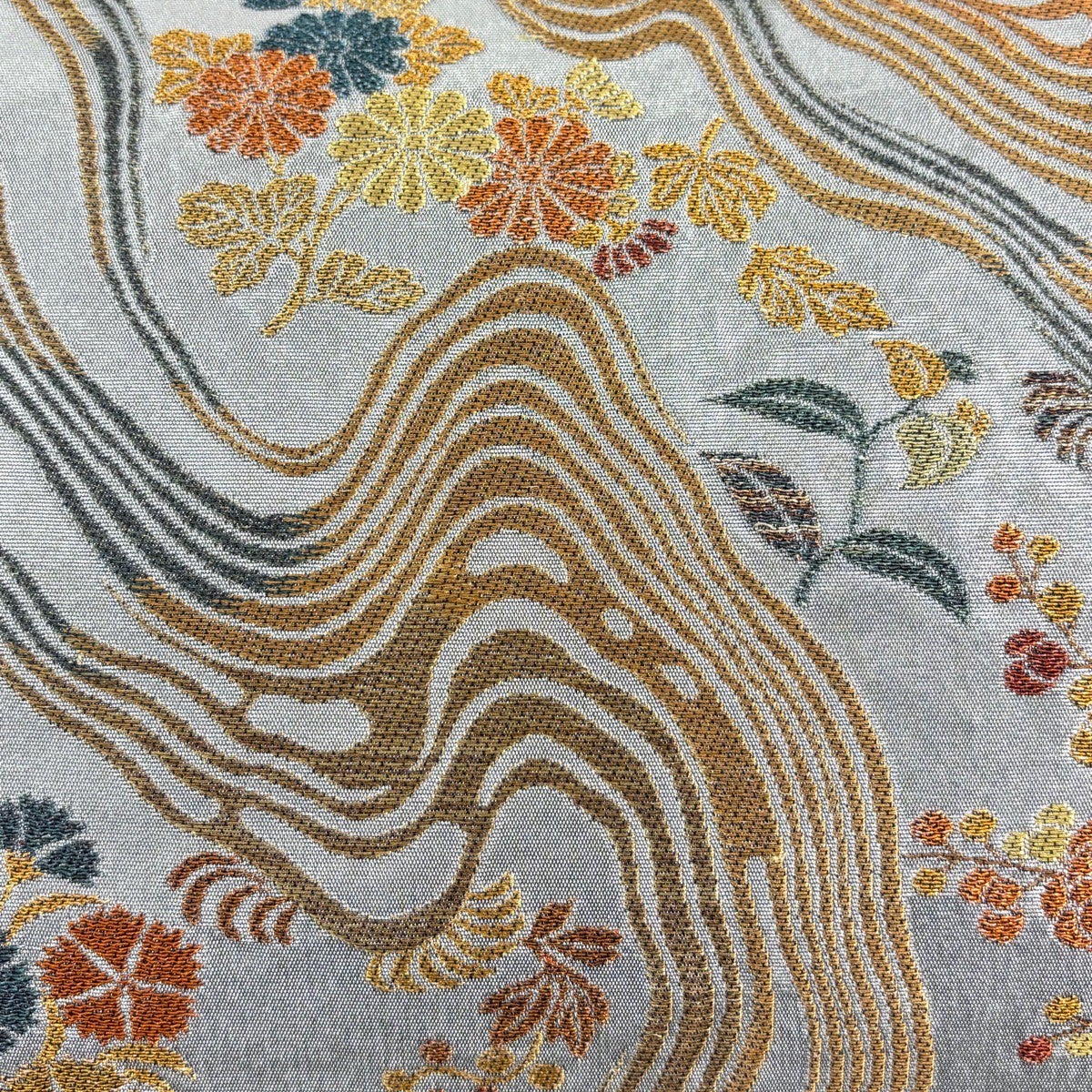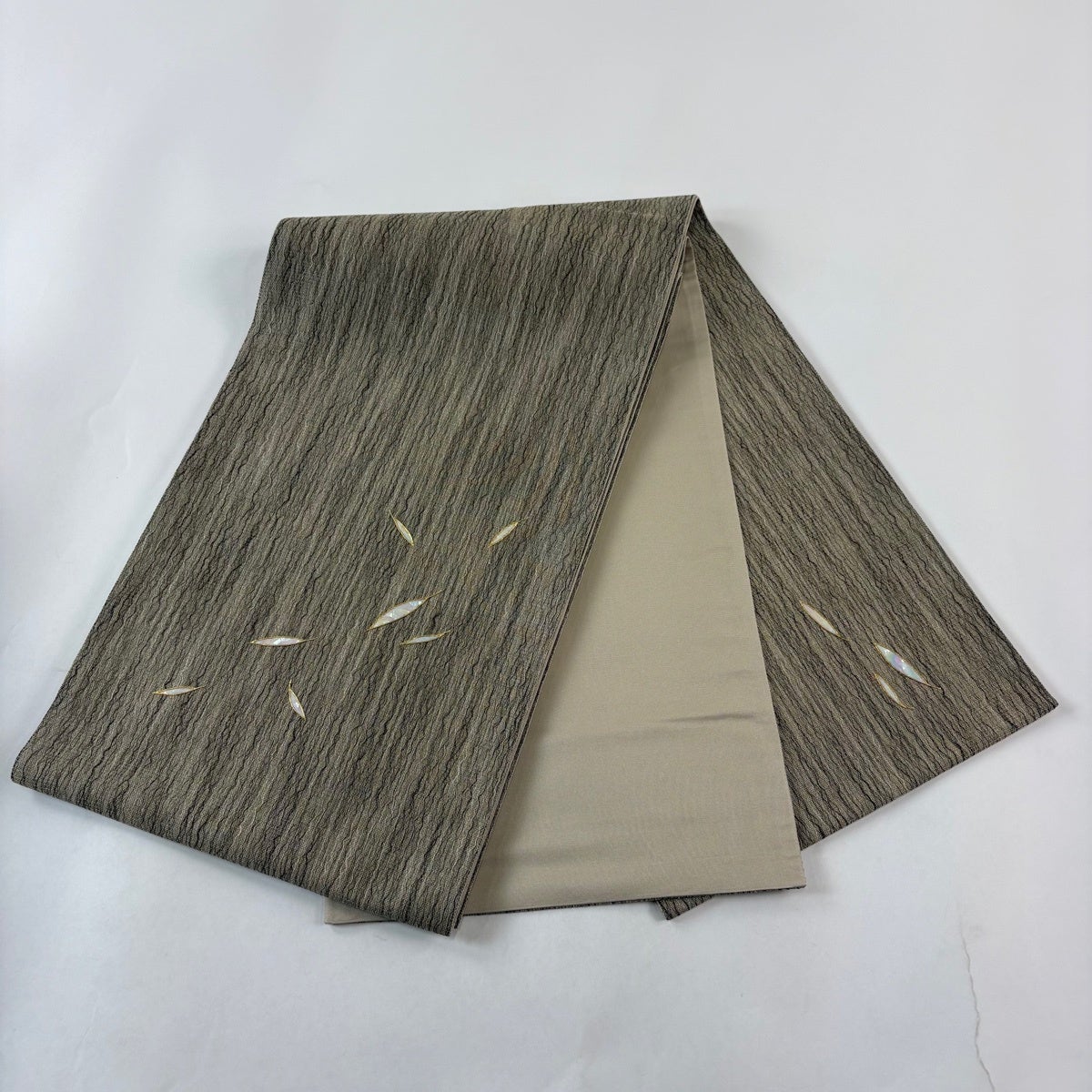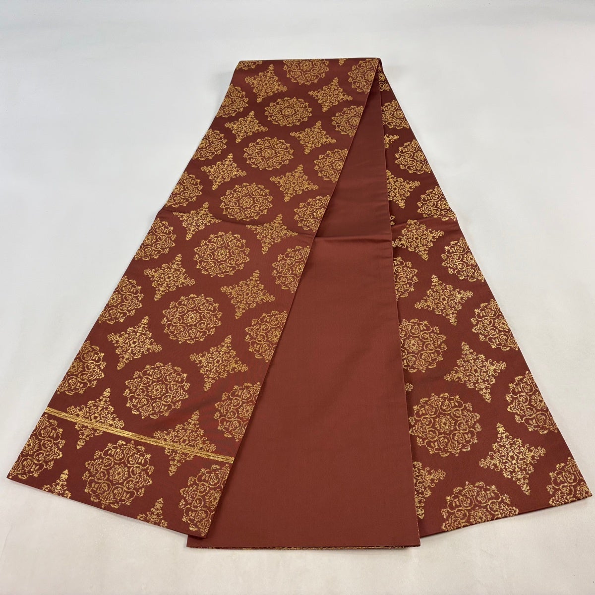 袋帯とは女性用の主にフォーマル用の帯で第一礼装として着用されることが多く、形状は表地にのみ柄があり裏地は無地になるように袋状に織って作成されたため袋帯という名が付きました。 帯を締める際にはおめでたいことが重なりますようにという願いが込められている二重太鼓や成人式の際に振袖に見かけるふくら雀や文庫結びなどの変わり結びを用いて着用します。