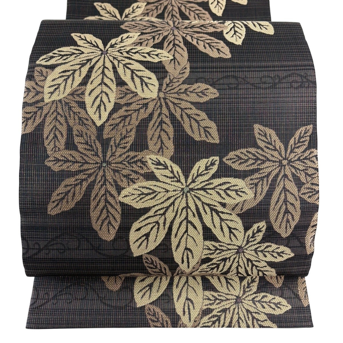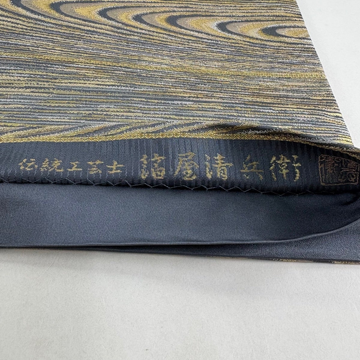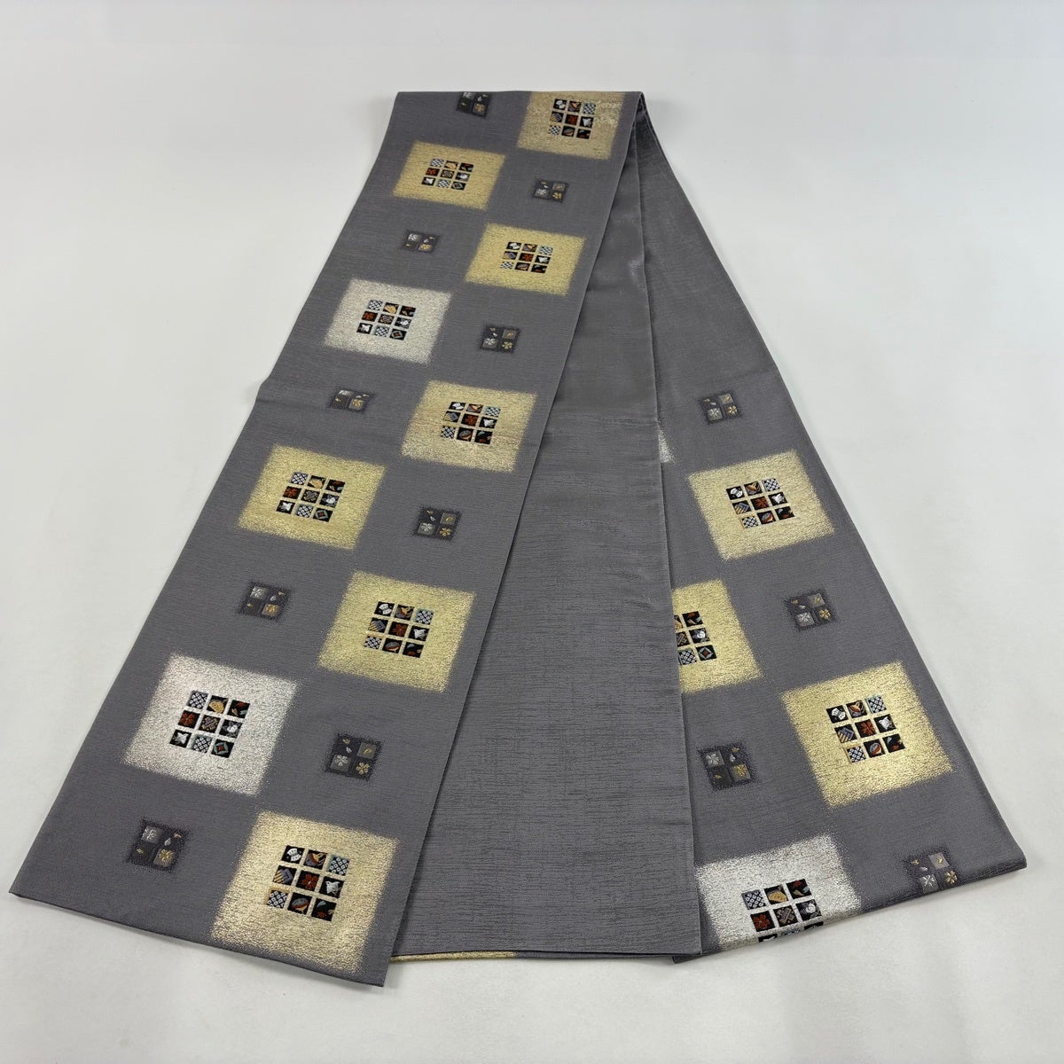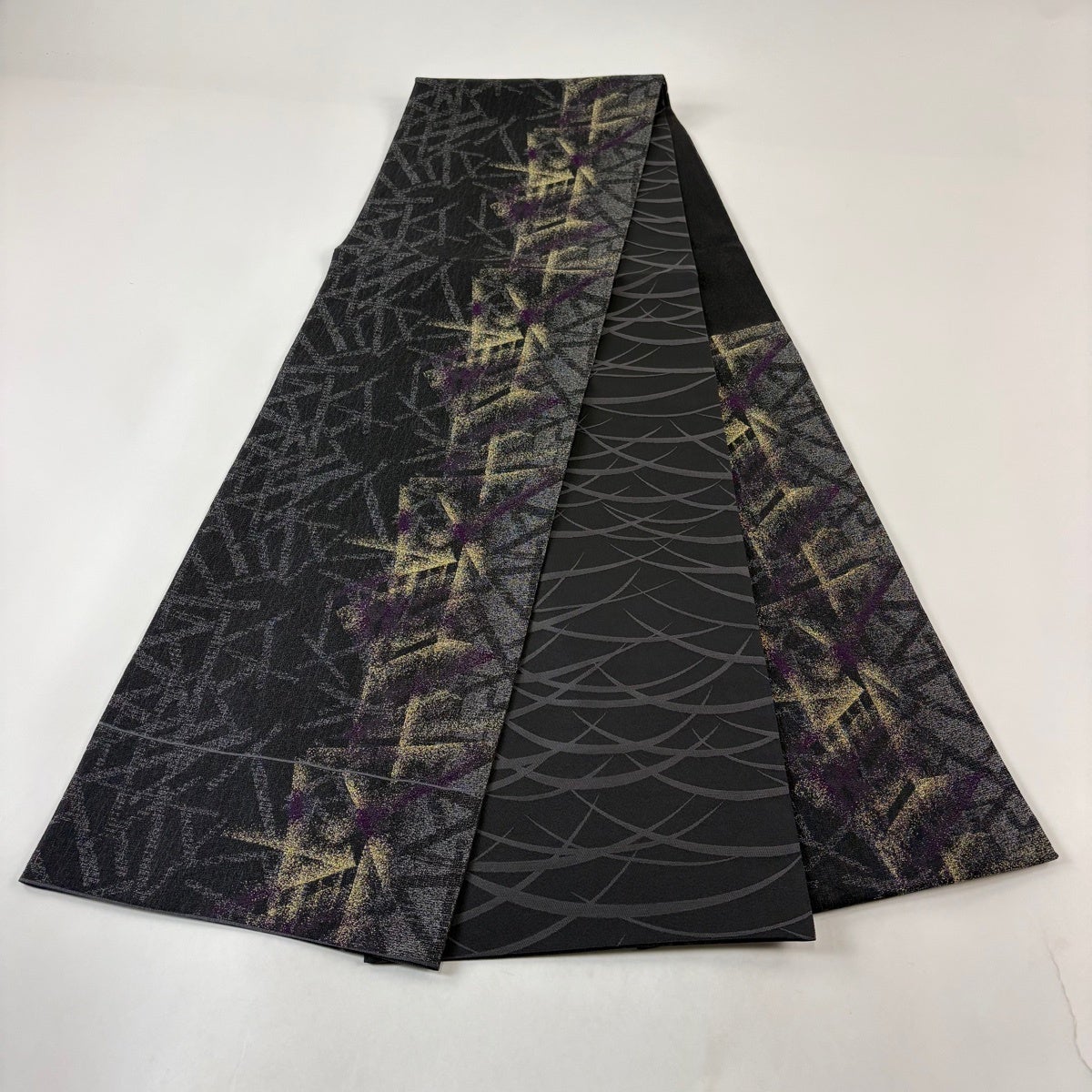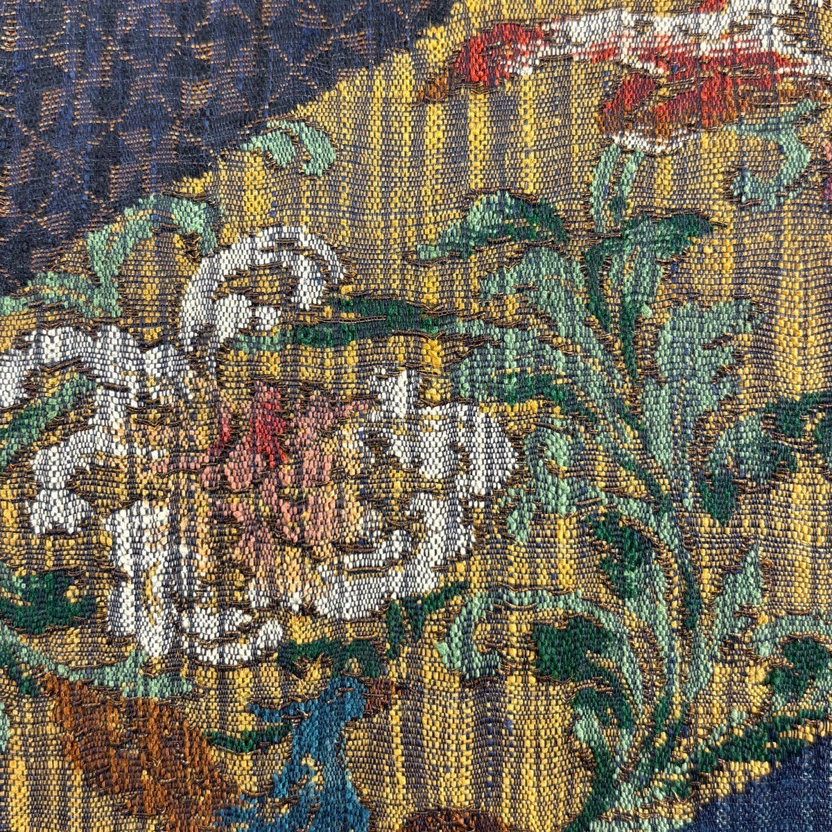 袋帯とは女性用の主にフォーマル用の帯で第一礼装として着用されることが多く、形状は表地にのみ柄があり裏地は無地になるように袋状に織って作成されたため袋帯という名が付きました。 帯を締める際にはおめでたいことが重なりますようにという願いが込められている二重太鼓や成人式の際に振袖に見かけるふくら雀や文庫結びなどの変わり結びを用いて着用します。