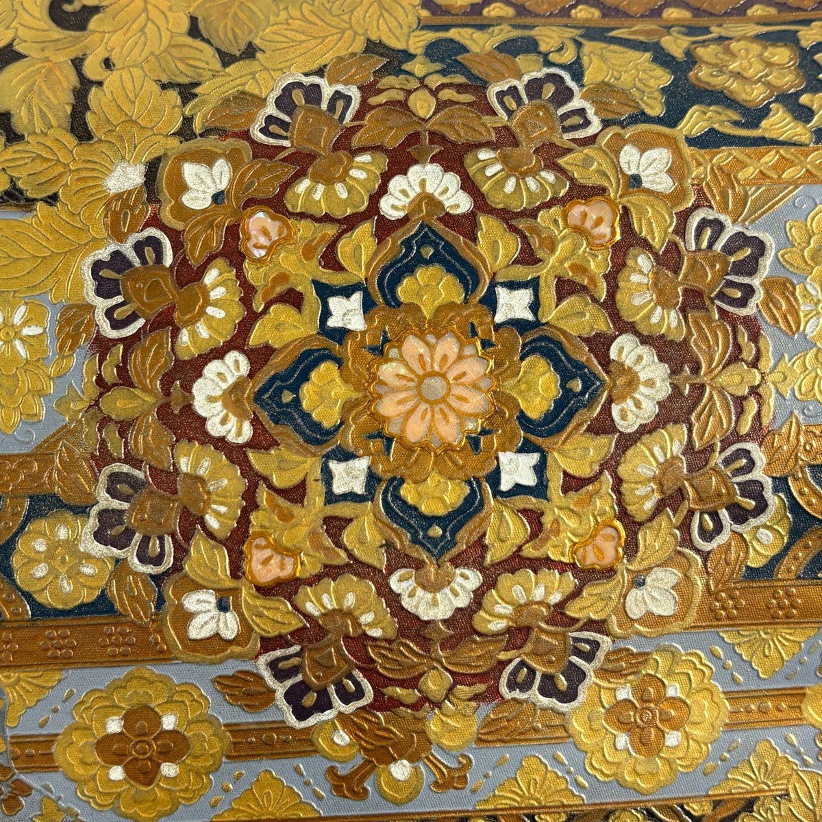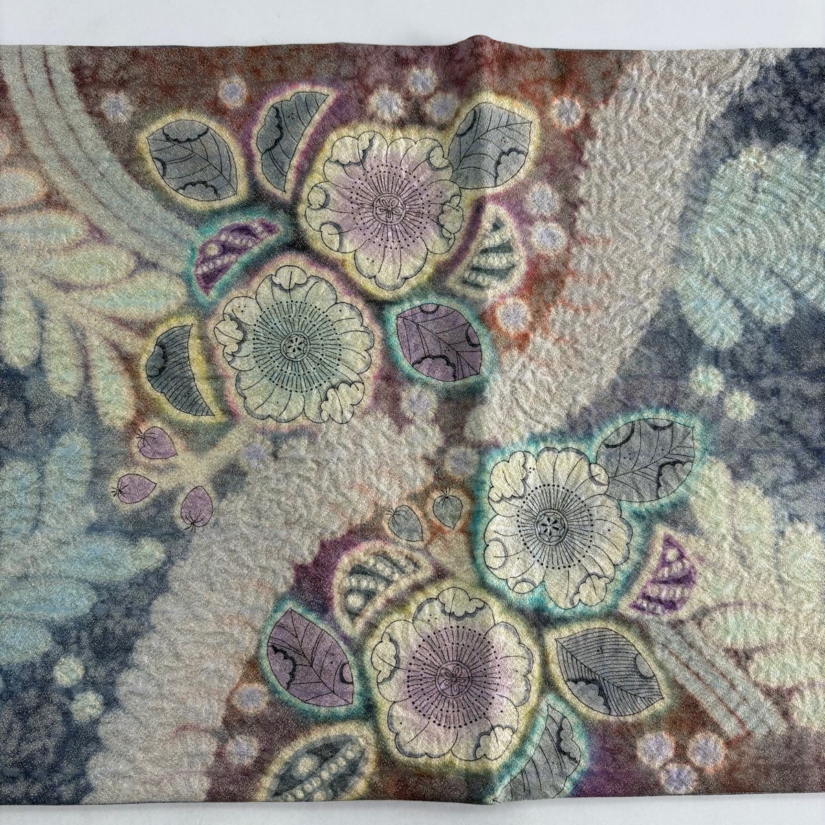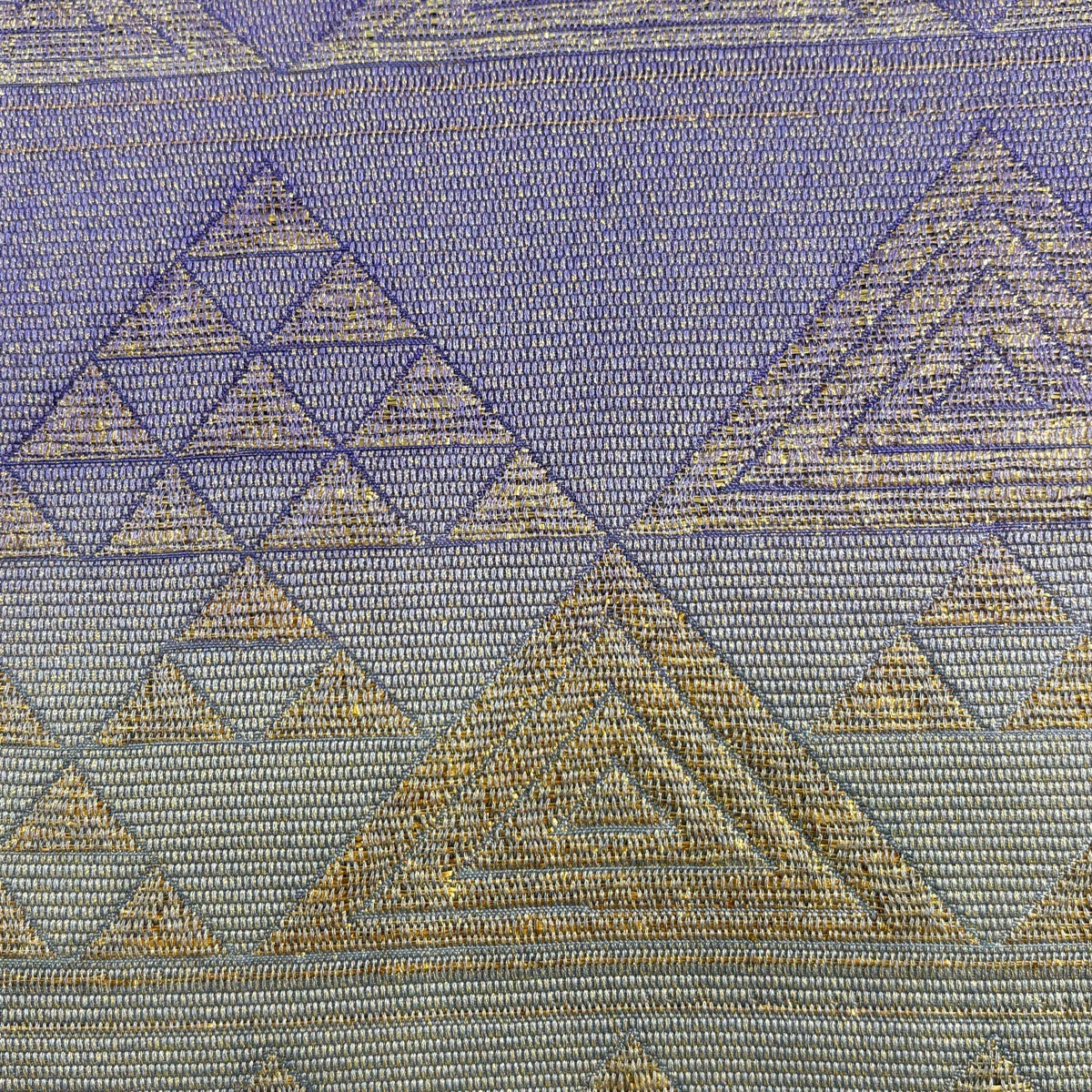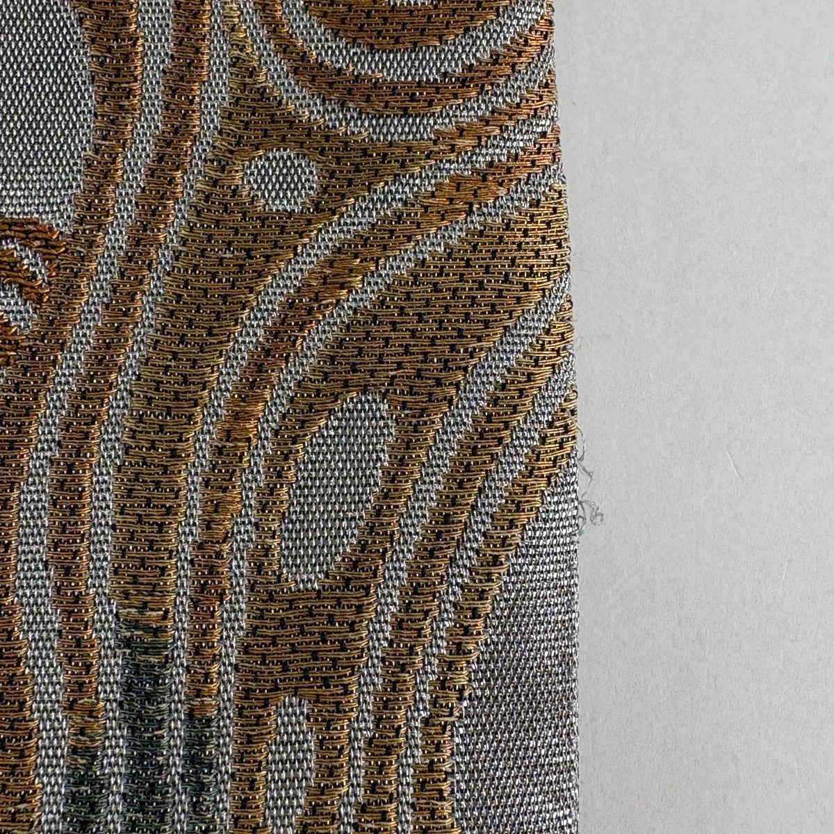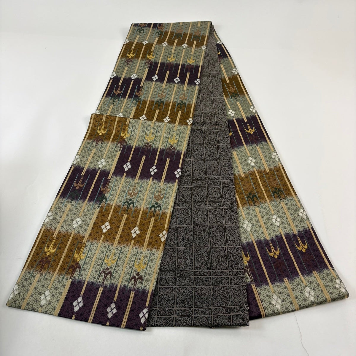 袋帯とは女性用の主にフォーマル用の帯で第一礼装として着用されることが多く、形状は表地にのみ柄があり裏地は無地になるように袋状に織って作成されたため袋帯という名が付きました。 帯を締める際にはおめでたいことが重なりますようにという願いが込められている二重太鼓や成人式の際に振袖に見かけるふくら雀や文庫結びなどの変わり結びを用いて着用します。