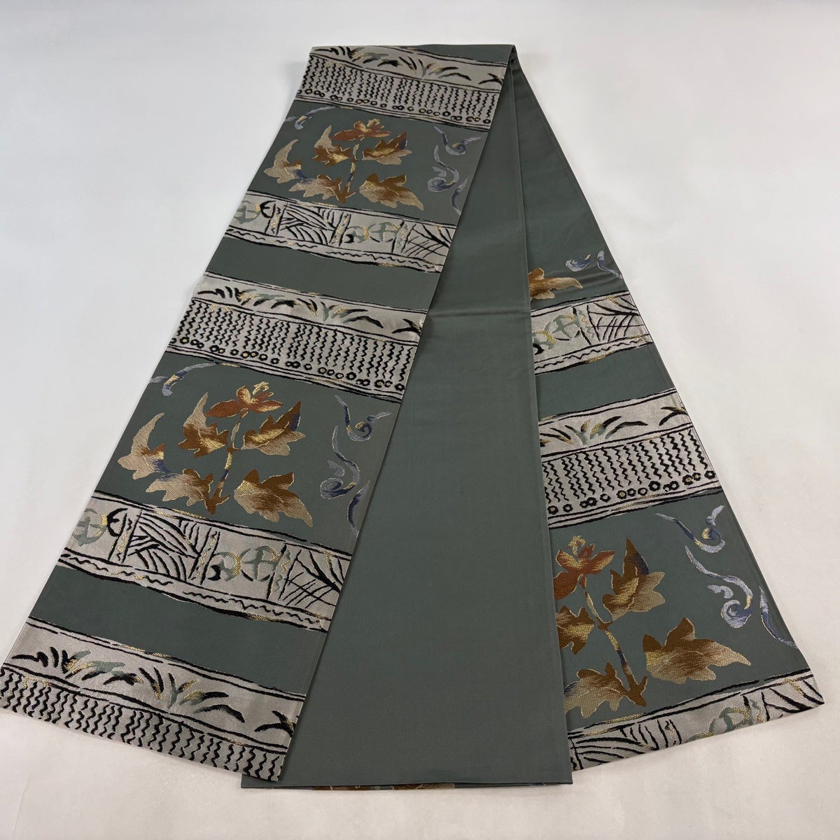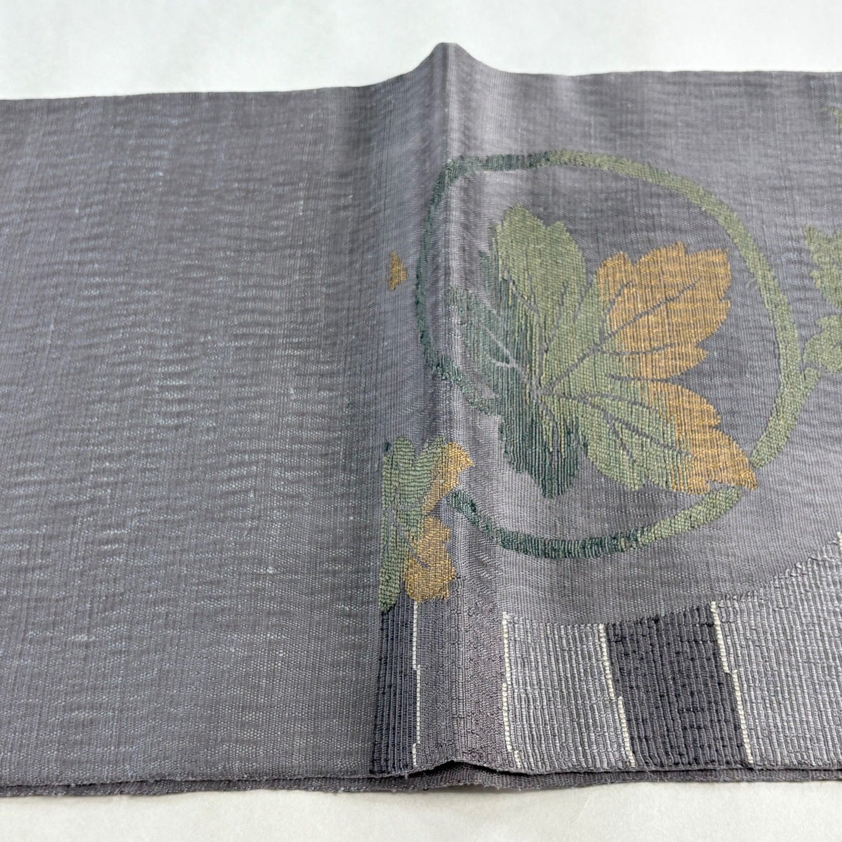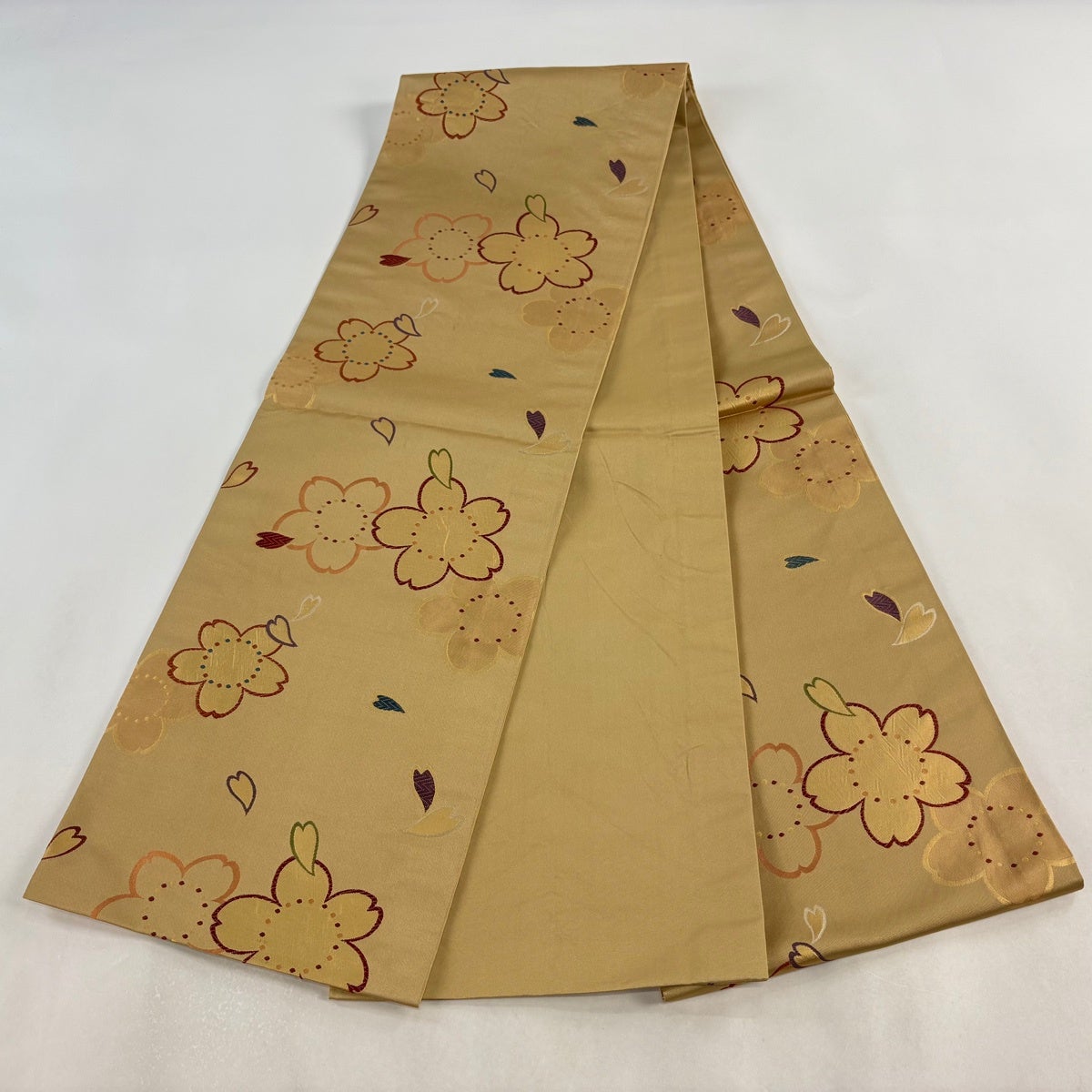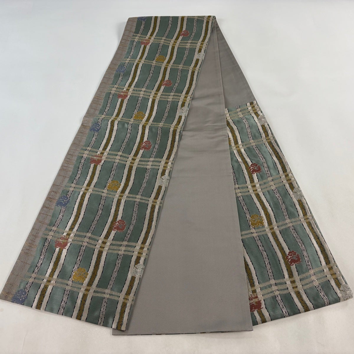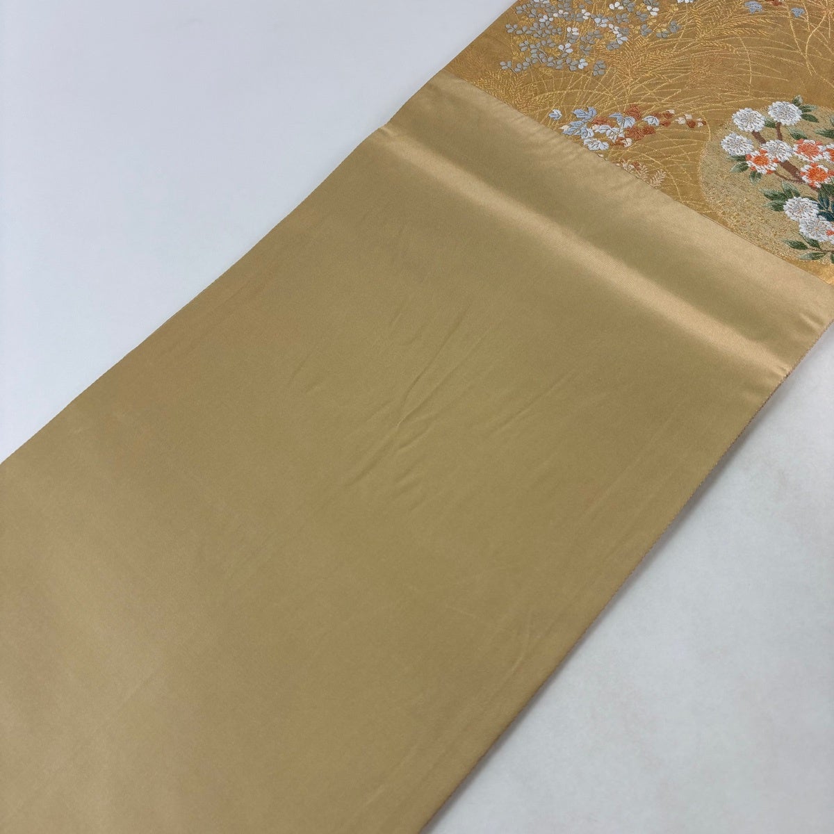 袋帯とは女性用の主にフォーマル用の帯で第一礼装として着用されることが多く、形状は表地にのみ柄があり裏地は無地になるように袋状に織って作成されたため袋帯という名が付きました。 帯を締める際にはおめでたいことが重なりますようにという願いが込められている二重太鼓や成人式の際に振袖に見かけるふくら雀や文庫結びなどの変わり結びを用いて着用します。