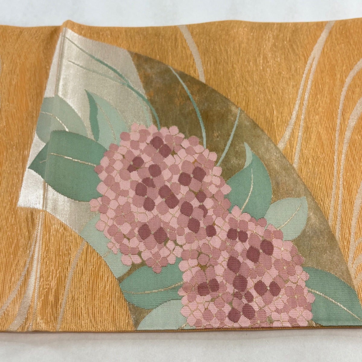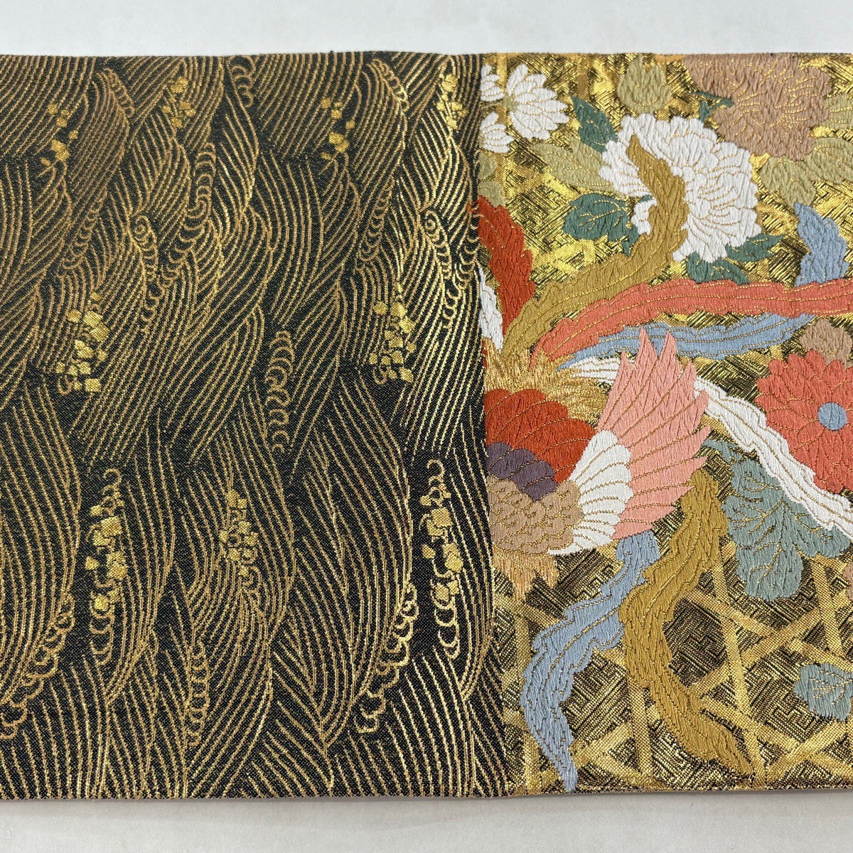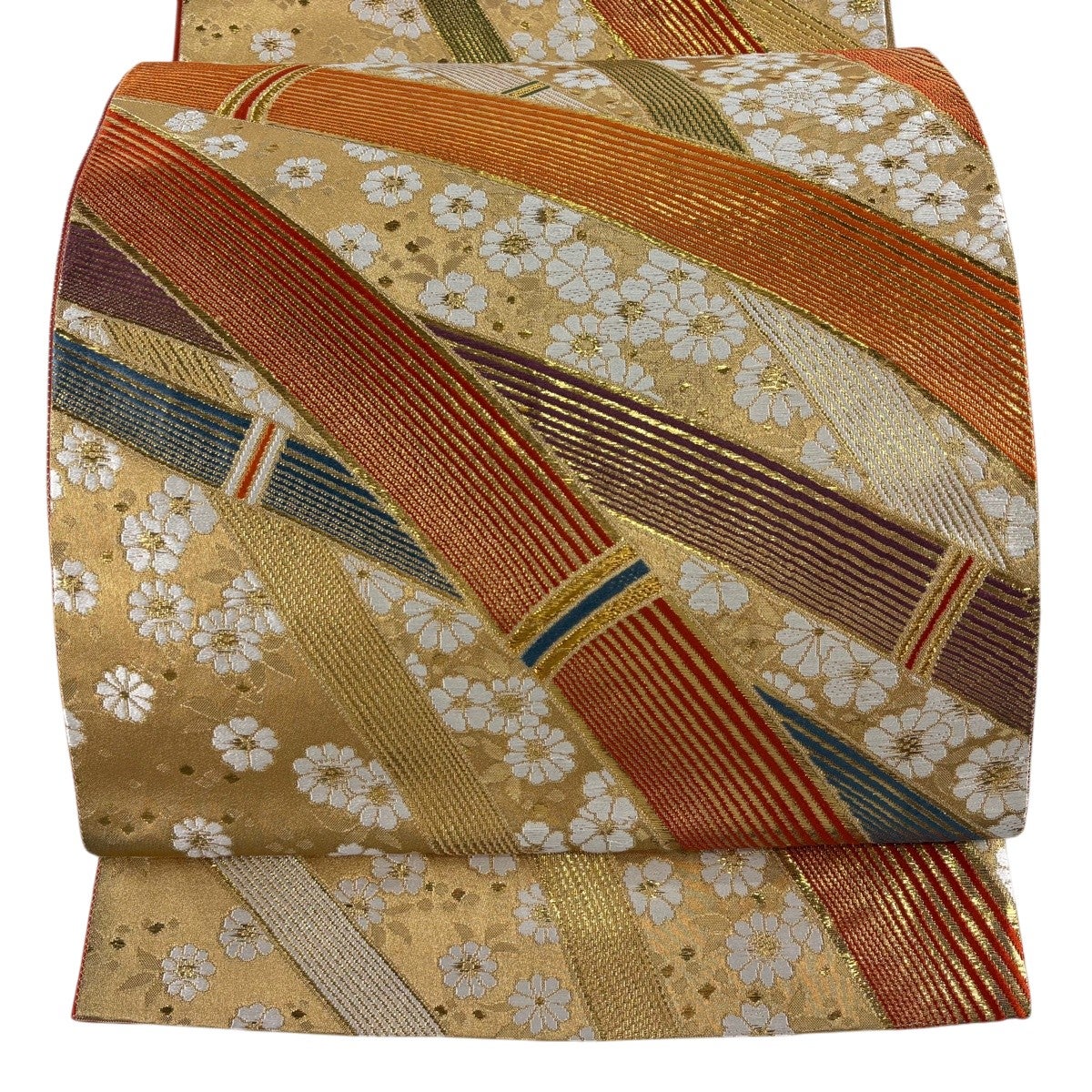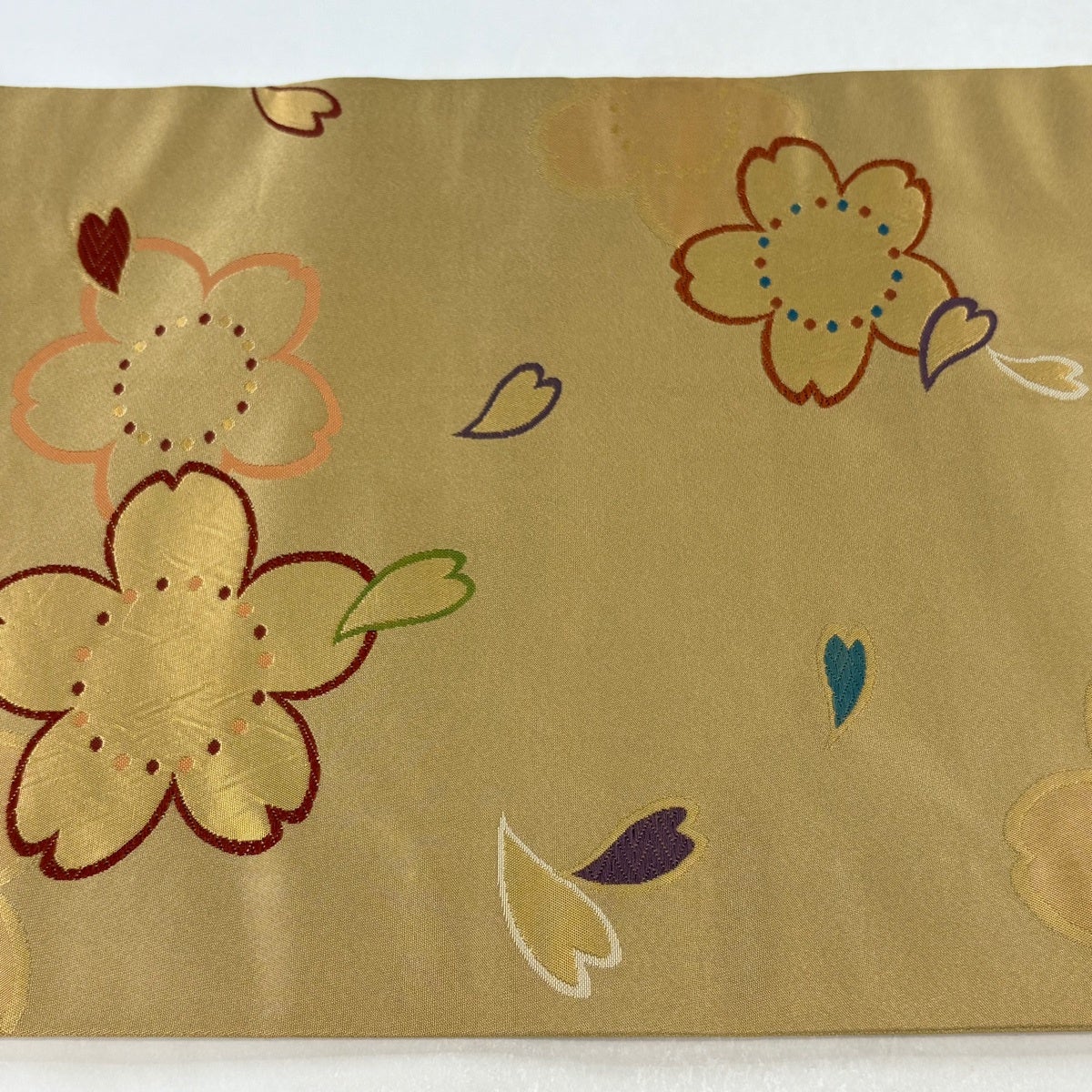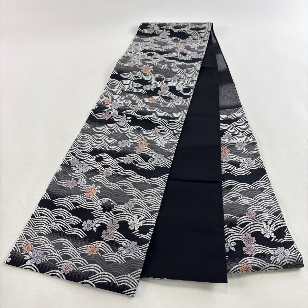 袋帯とは女性用の主にフォーマル用の帯で第一礼装として着用されることが多く、形状は表地にのみ柄があり裏地は無地になるように袋状に織って作成されたため袋帯という名が付きました。 帯を締める際にはおめでたいことが重なりますようにという願いが込められている二重太鼓や成人式の際に振袖に見かけるふくら雀や文庫結びなどの変わり結びを用いて着用します。