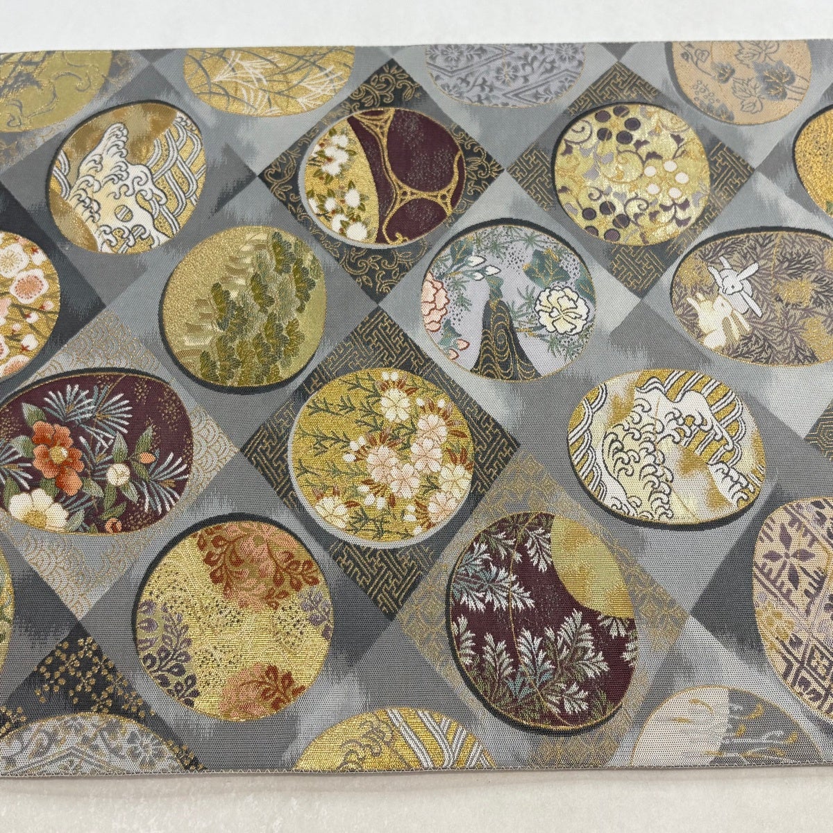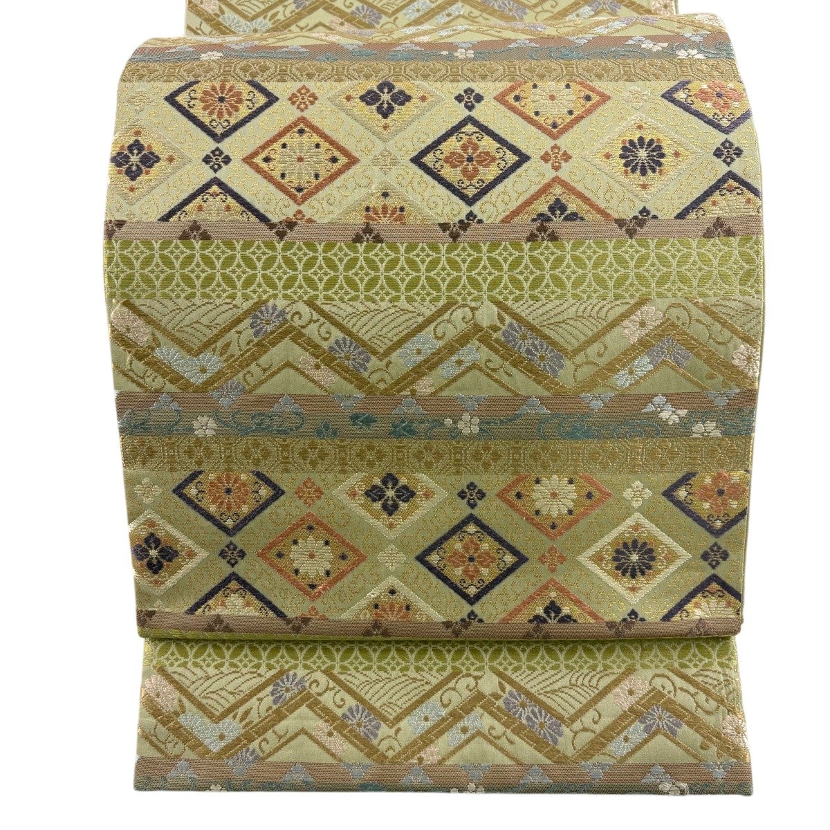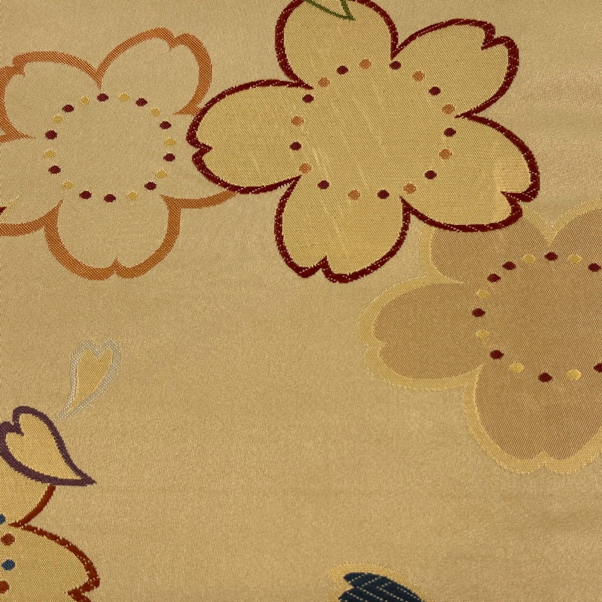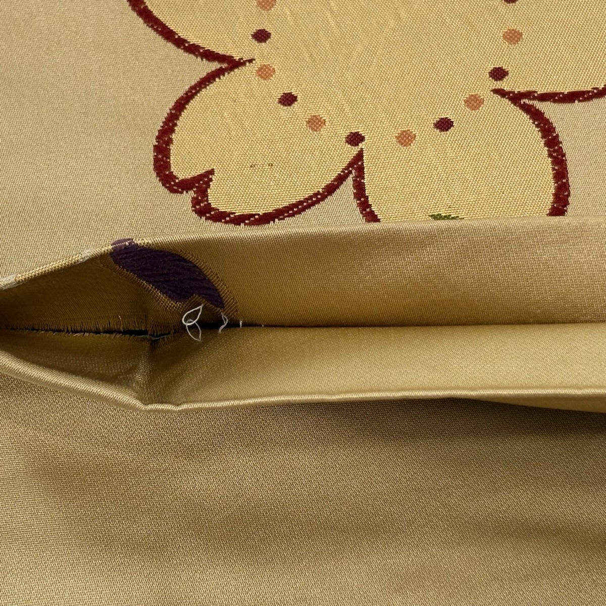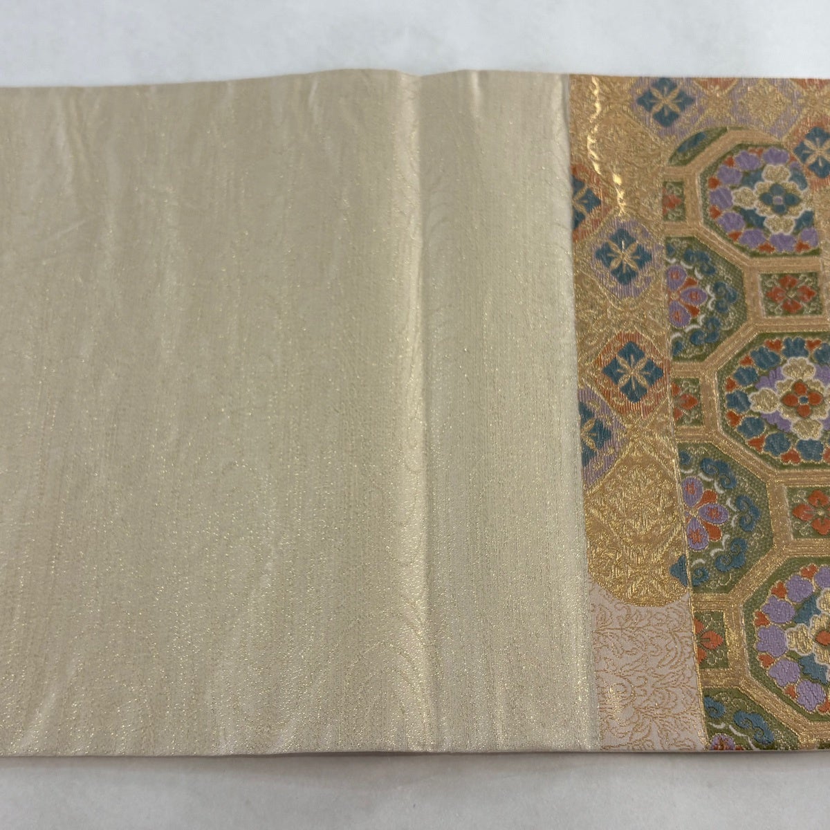 袋帯とは女性用の主にフォーマル用の帯で第一礼装として着用されることが多く、形状は表地にのみ柄があり裏地は無地になるように袋状に織って作成されたため袋帯という名が付きました。 帯を締める際にはおめでたいことが重なりますようにという願いが込められている二重太鼓や成人式の際に振袖に見かけるふくら雀や文庫結びなどの変わり結びを用いて着用します。