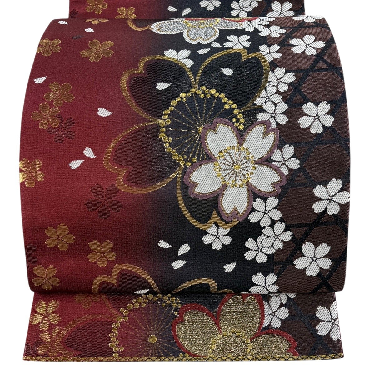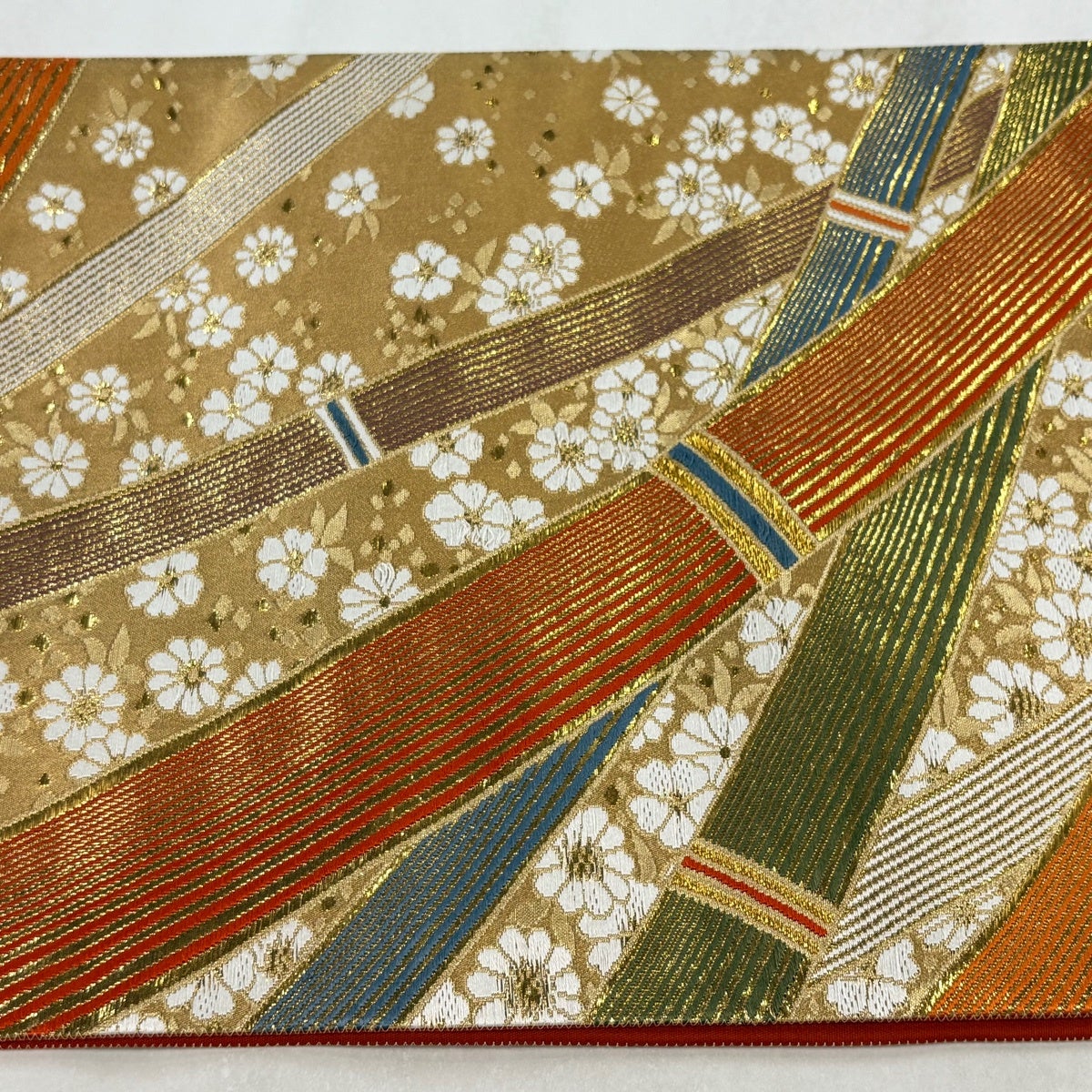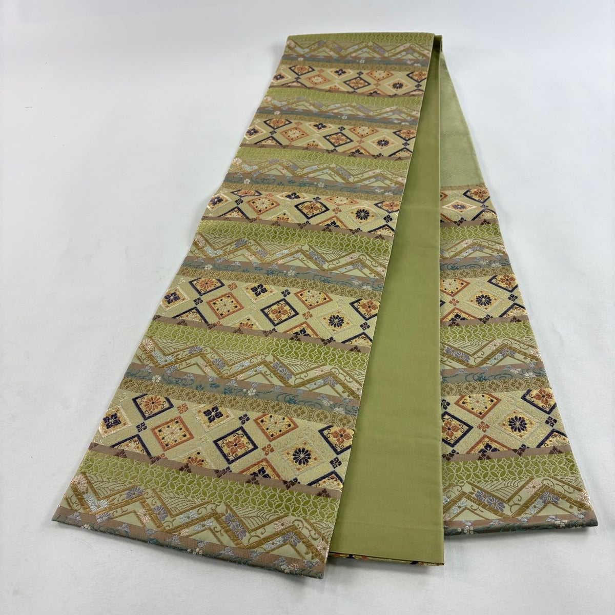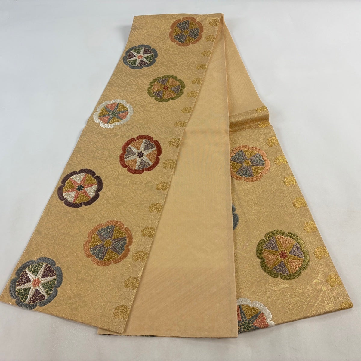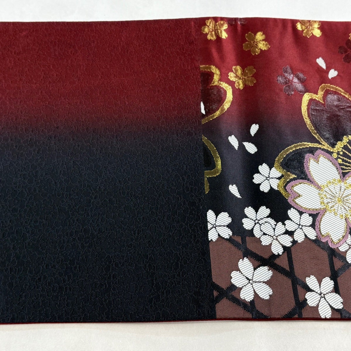 袋帯とは女性用の主にフォーマル用の帯で第一礼装として着用されることが多く、形状は表地にのみ柄があり裏地は無地になるように袋状に織って作成されたため袋帯という名が付きました。 帯を締める際にはおめでたいことが重なりますようにという願いが込められている二重太鼓や成人式の際に振袖に見かけるふくら雀や文庫結びなどの変わり結びを用いて着用します。