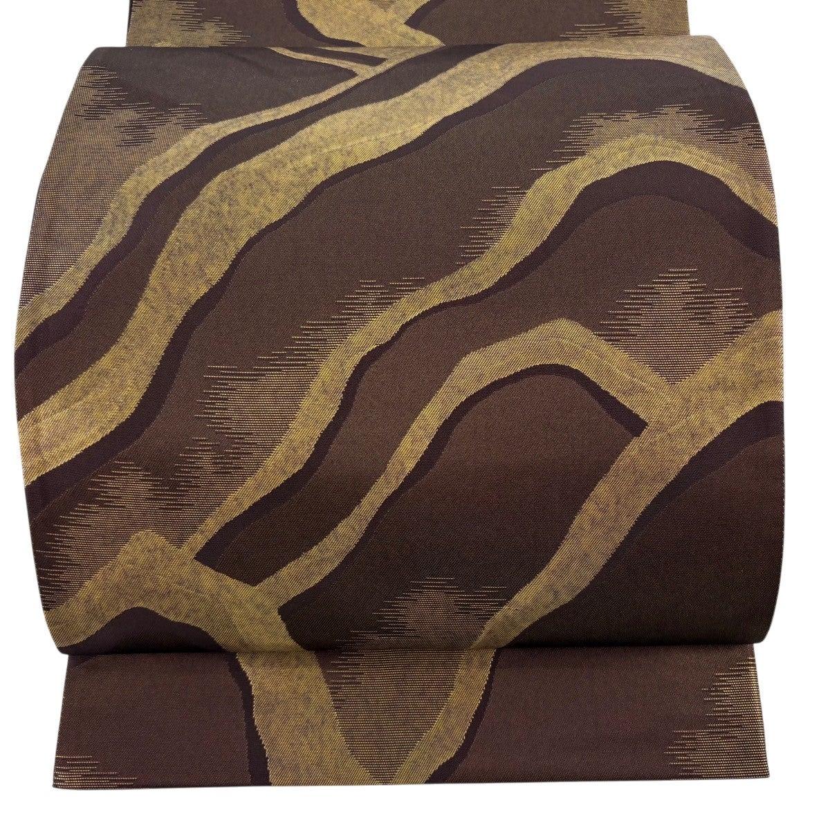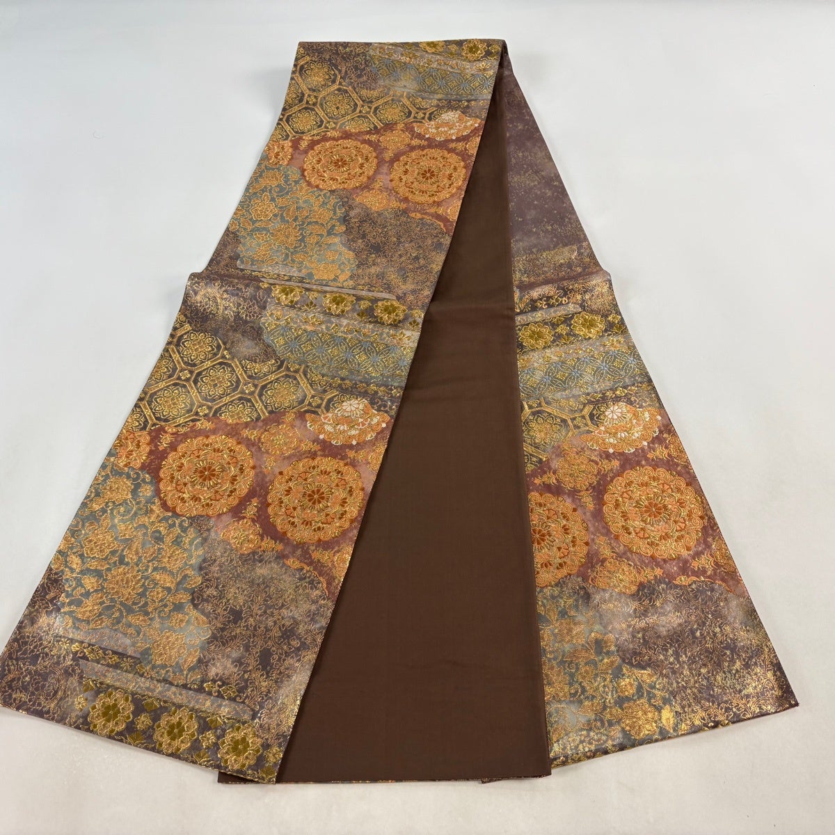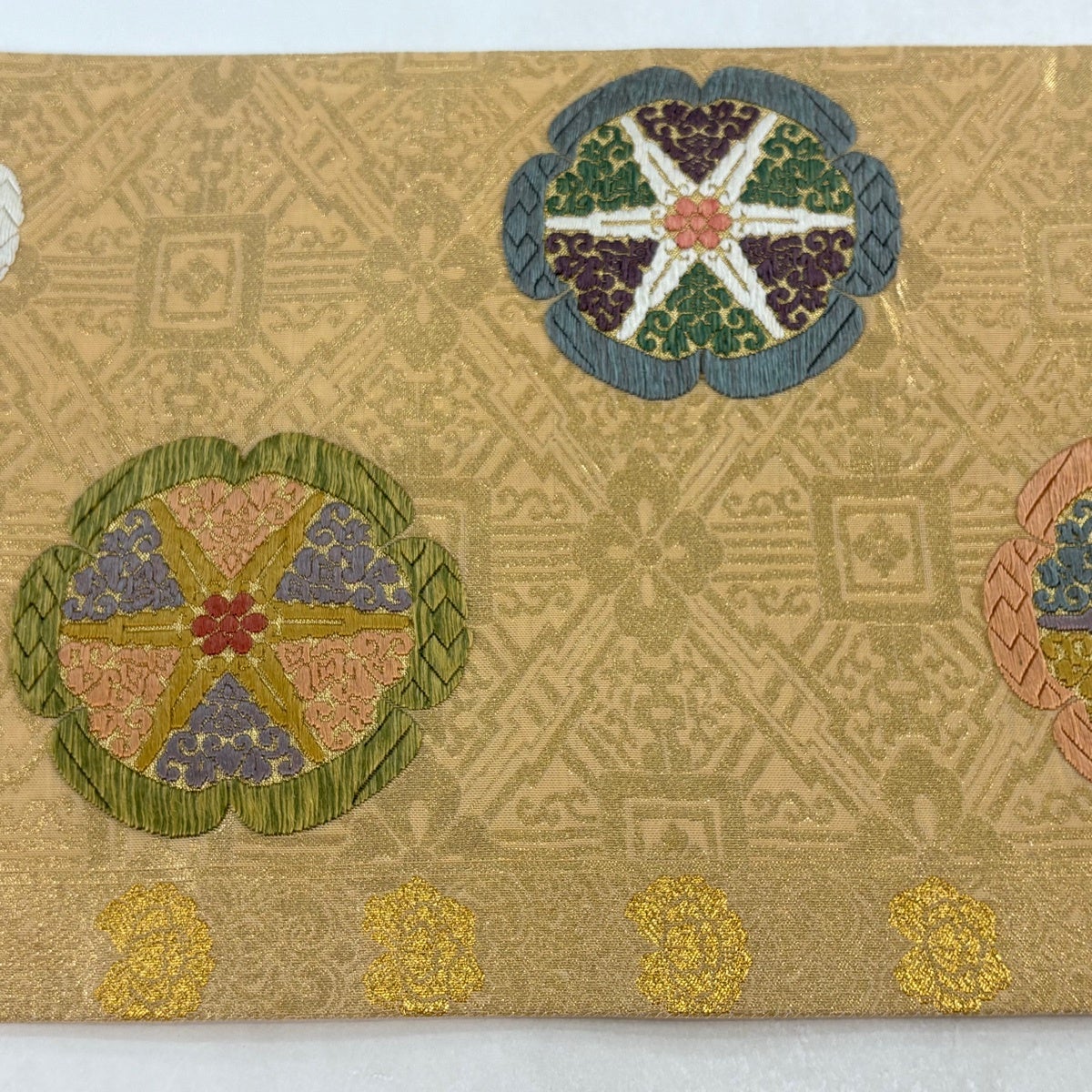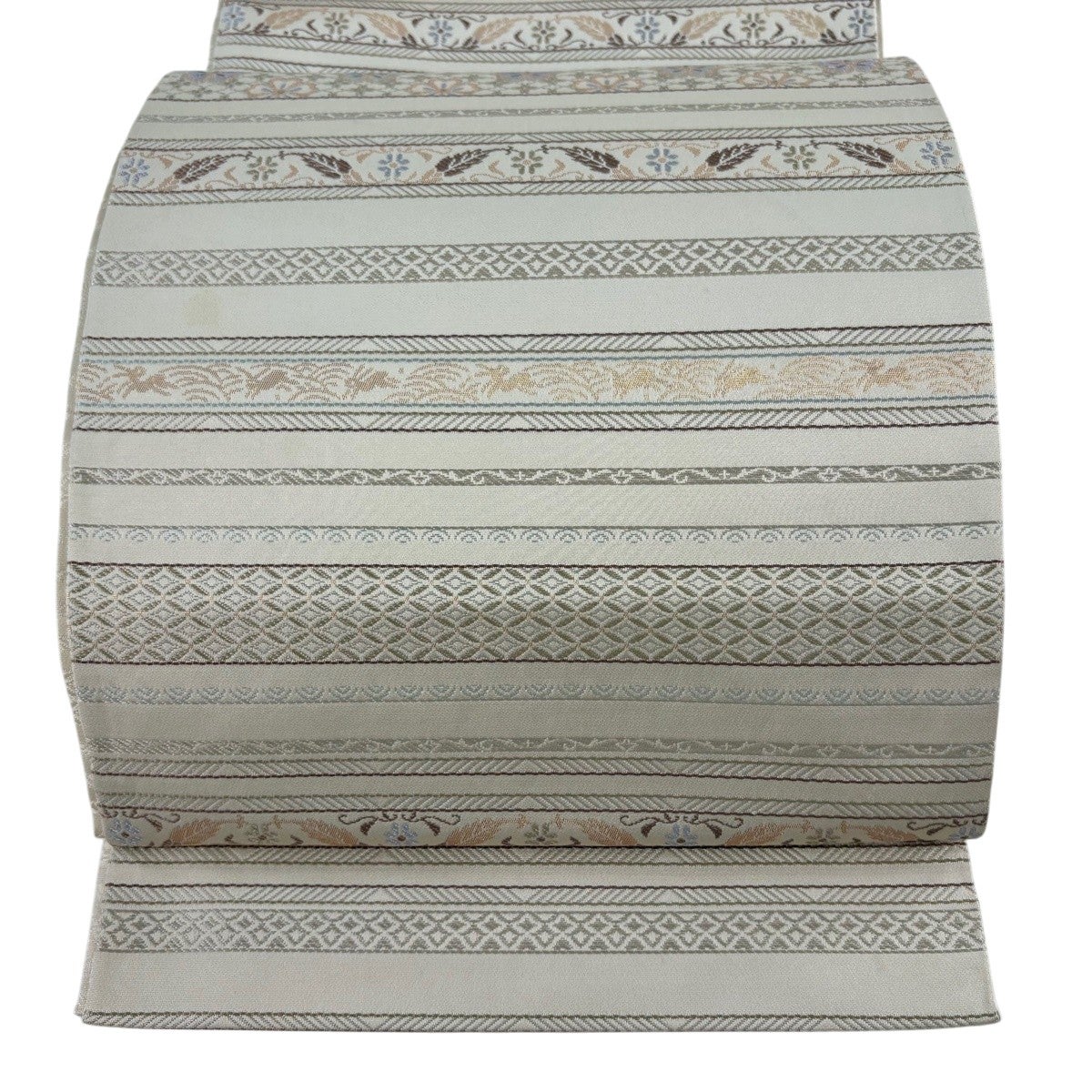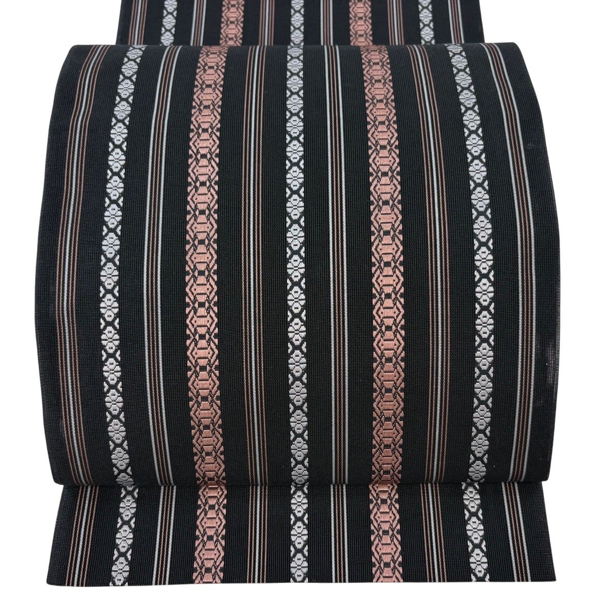 袋帯とは女性用の主にフォーマル用の帯で第一礼装として着用されることが多く、形状は表地にのみ柄があり裏地は無地になるように袋状に織って作成されたため袋帯という名が付きました。 帯を締める際にはおめでたいことが重なりますようにという願いが込められている二重太鼓や成人式の際に振袖に見かけるふくら雀や文庫結びなどの変わり結びを用いて着用します。