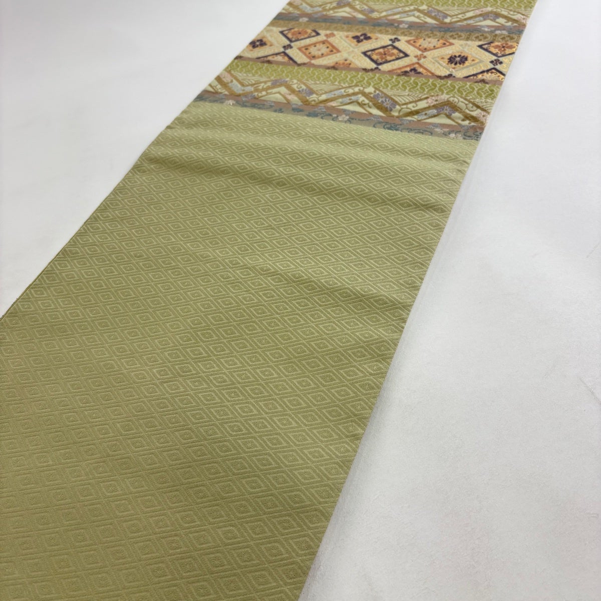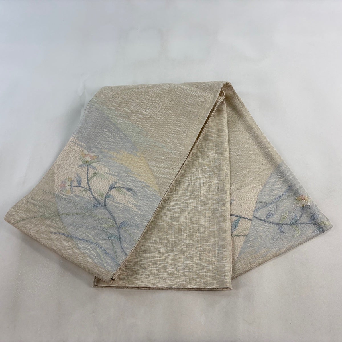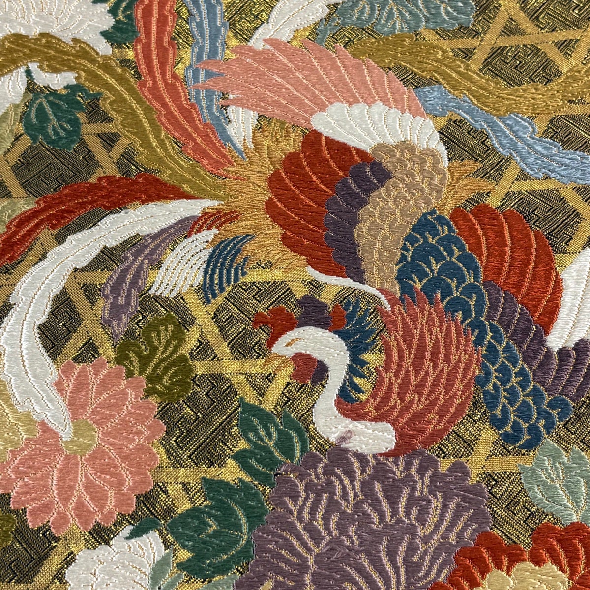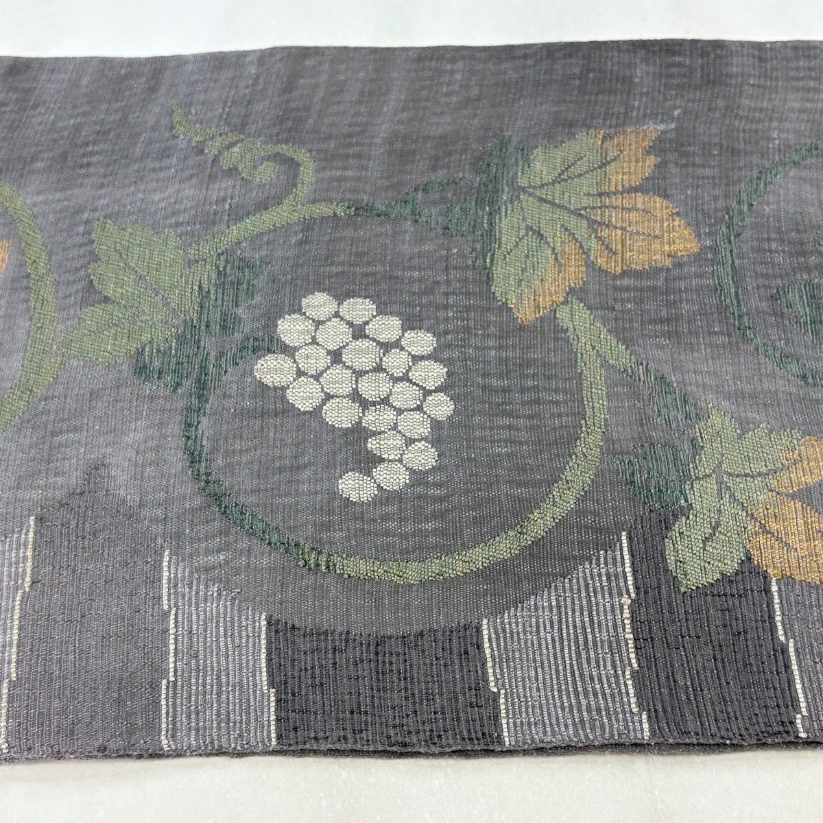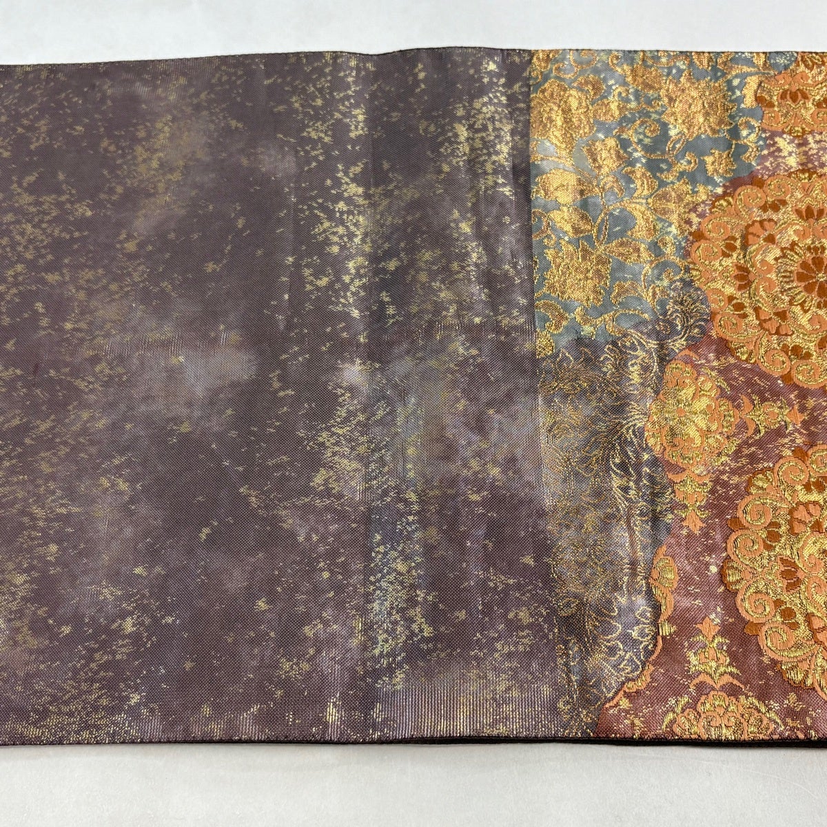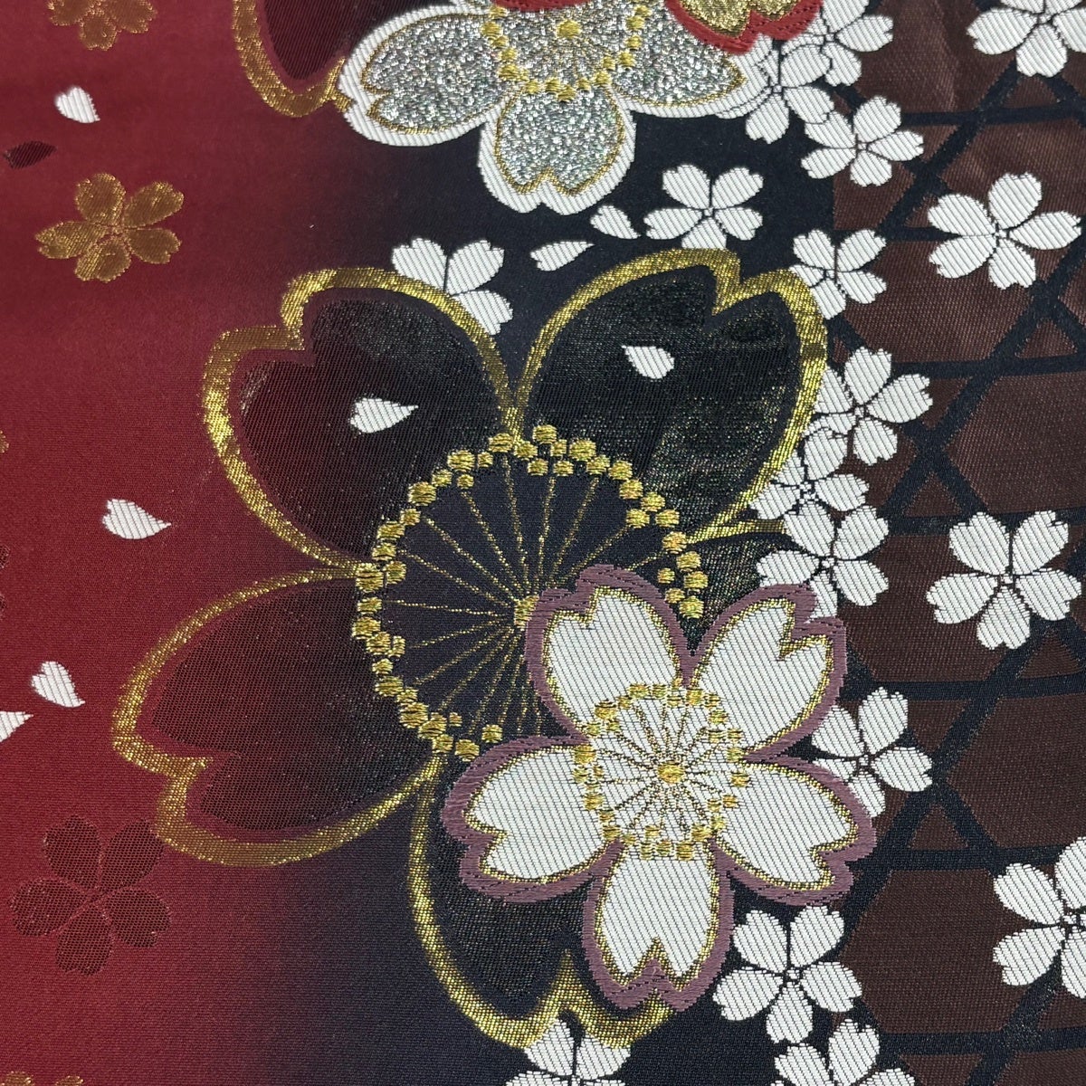 袋帯とは女性用の主にフォーマル用の帯で第一礼装として着用されることが多く、形状は表地にのみ柄があり裏地は無地になるように袋状に織って作成されたため袋帯という名が付きました。 帯を締める際にはおめでたいことが重なりますようにという願いが込められている二重太鼓や成人式の際に振袖に見かけるふくら雀や文庫結びなどの変わり結びを用いて着用します。