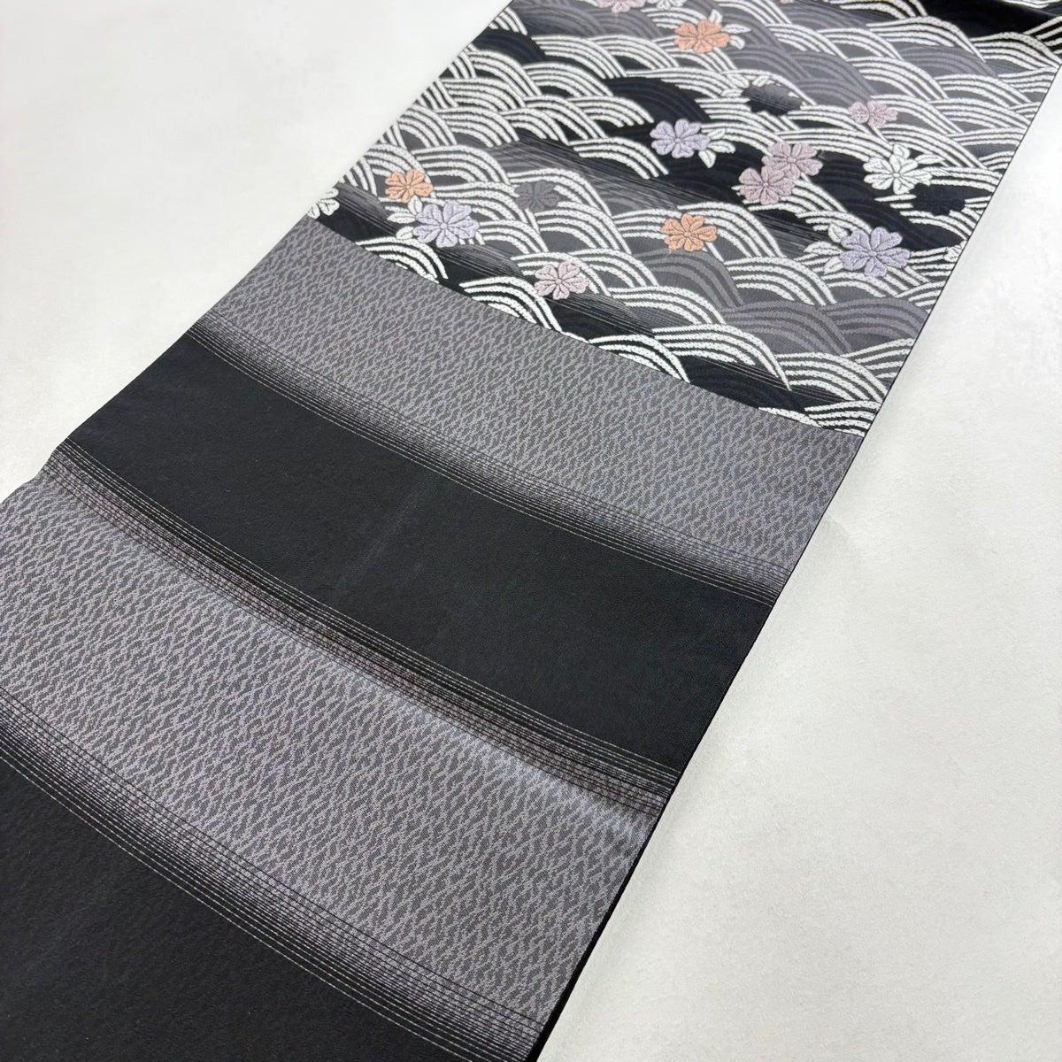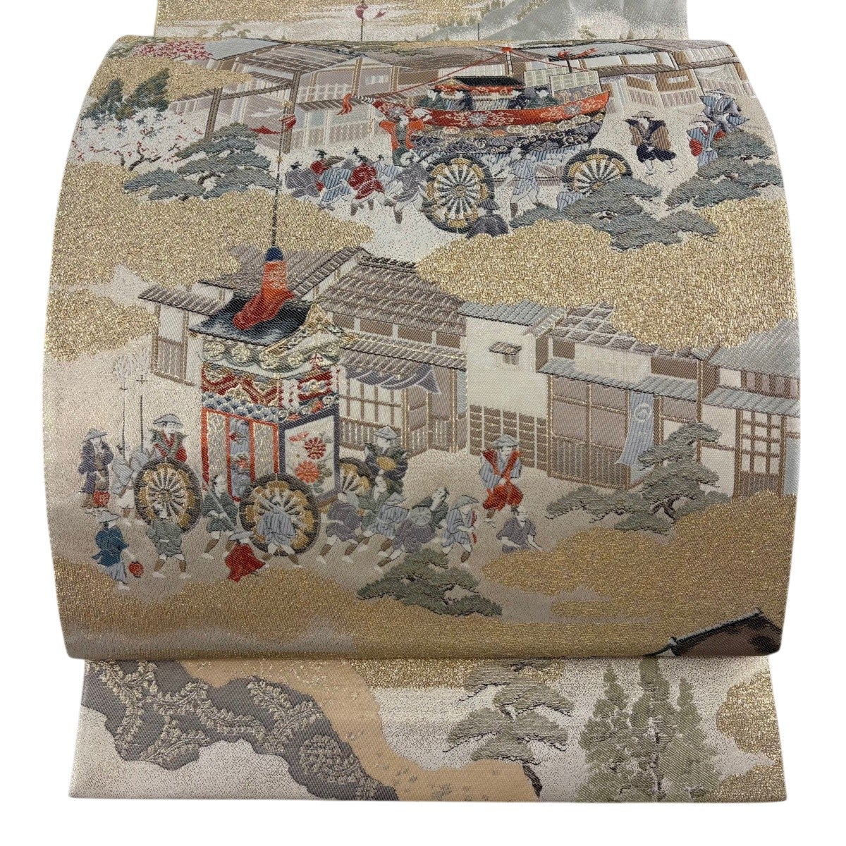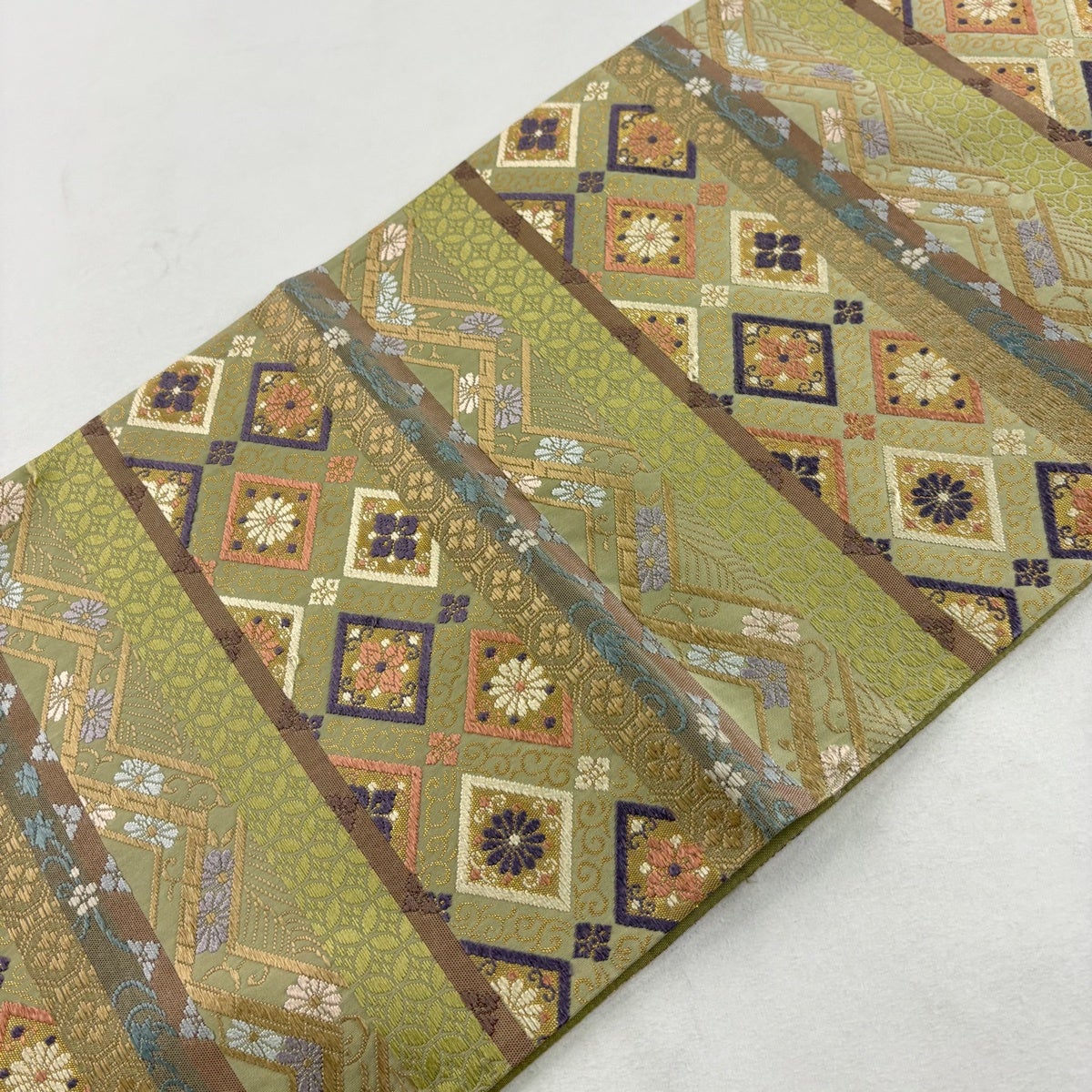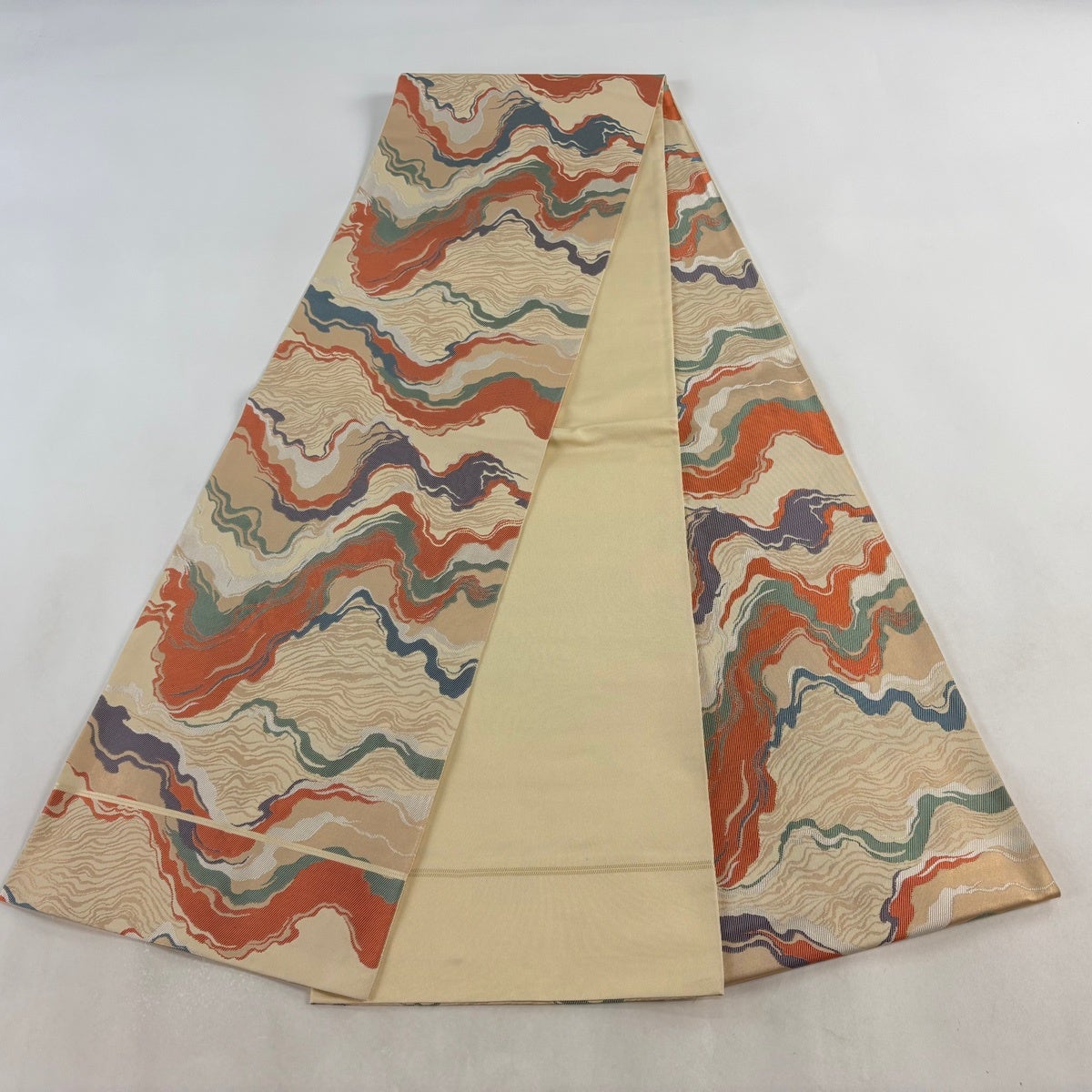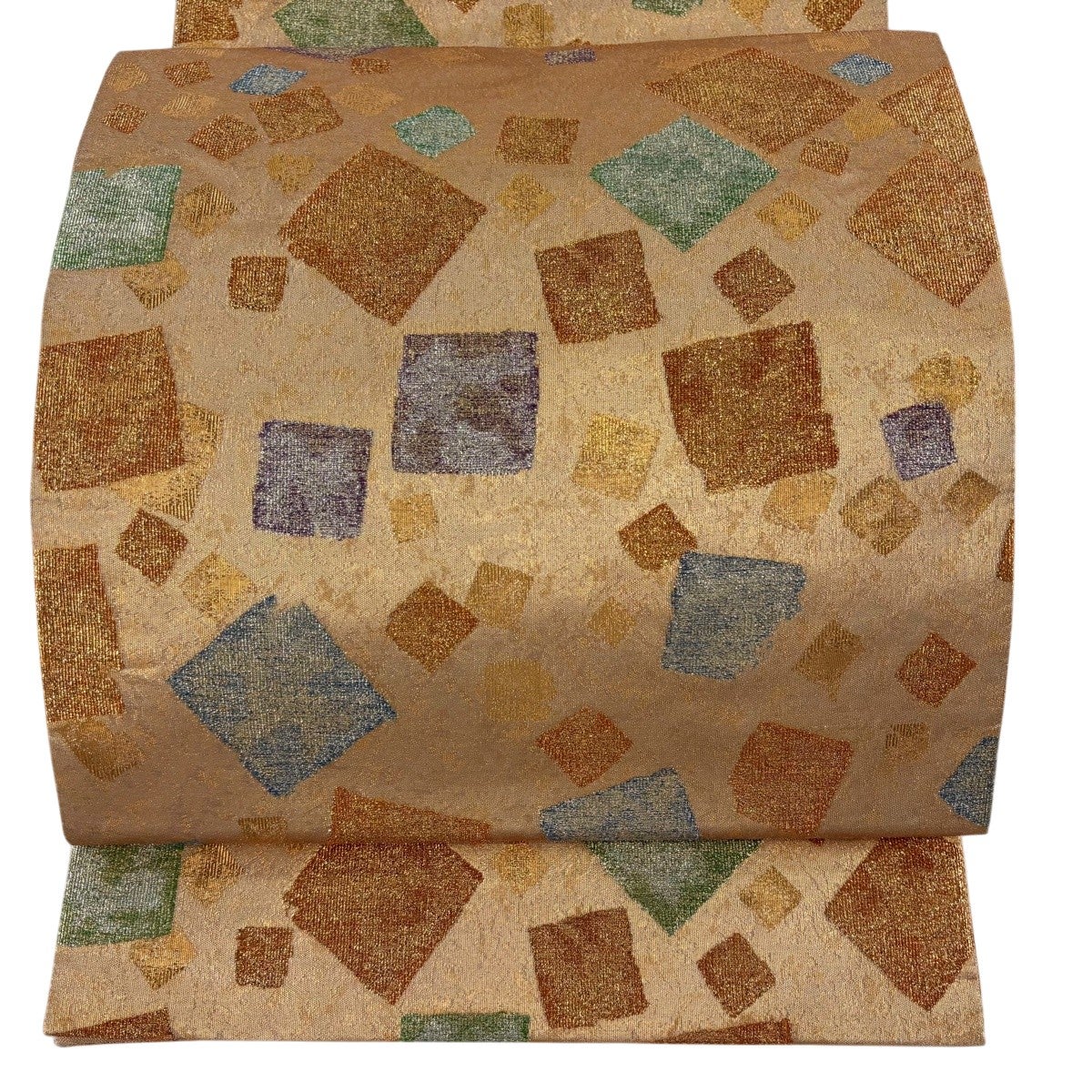 袋帯とは女性用の主にフォーマル用の帯で第一礼装として着用されることが多く、形状は表地にのみ柄があり裏地は無地になるように袋状に織って作成されたため袋帯という名が付きました。 帯を締める際にはおめでたいことが重なりますようにという願いが込められている二重太鼓や成人式の際に振袖に見かけるふくら雀や文庫結びなどの変わり結びを用いて着用します。