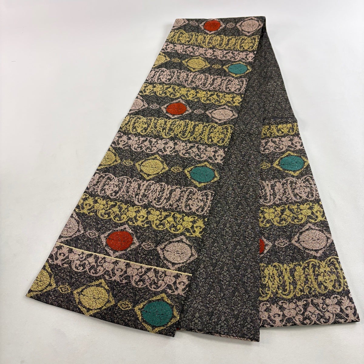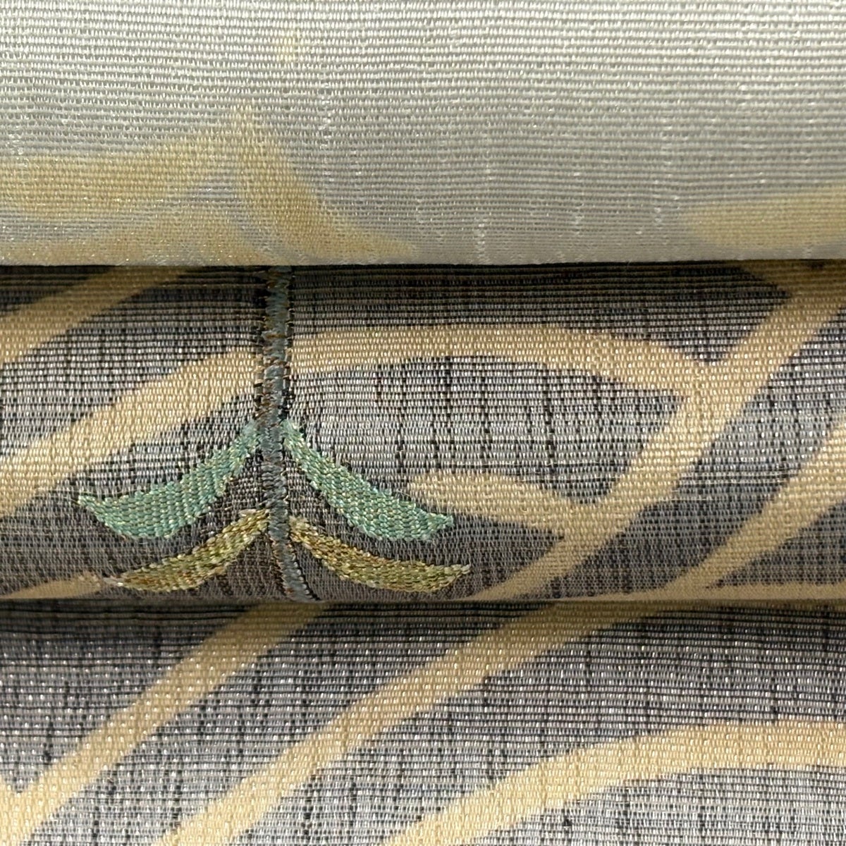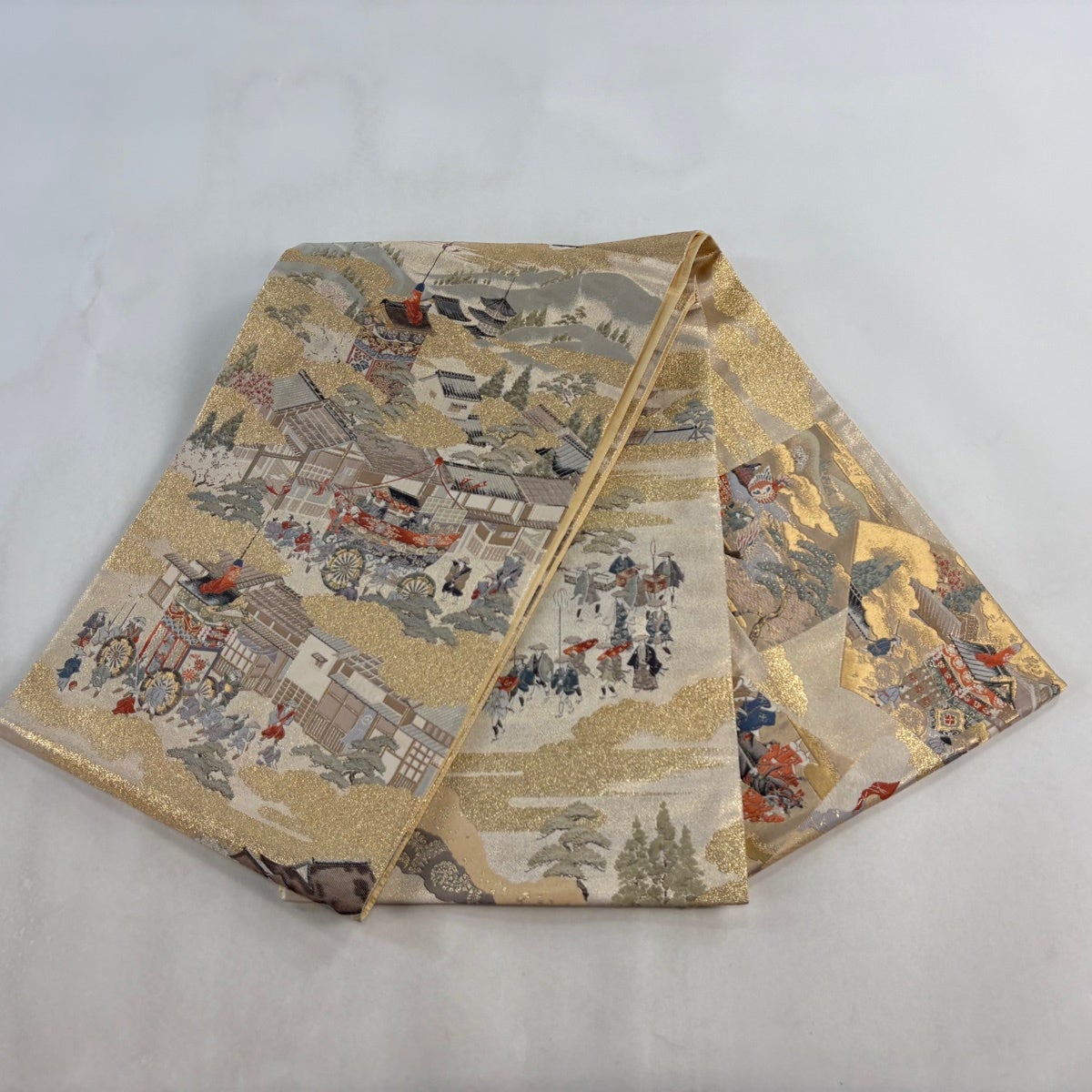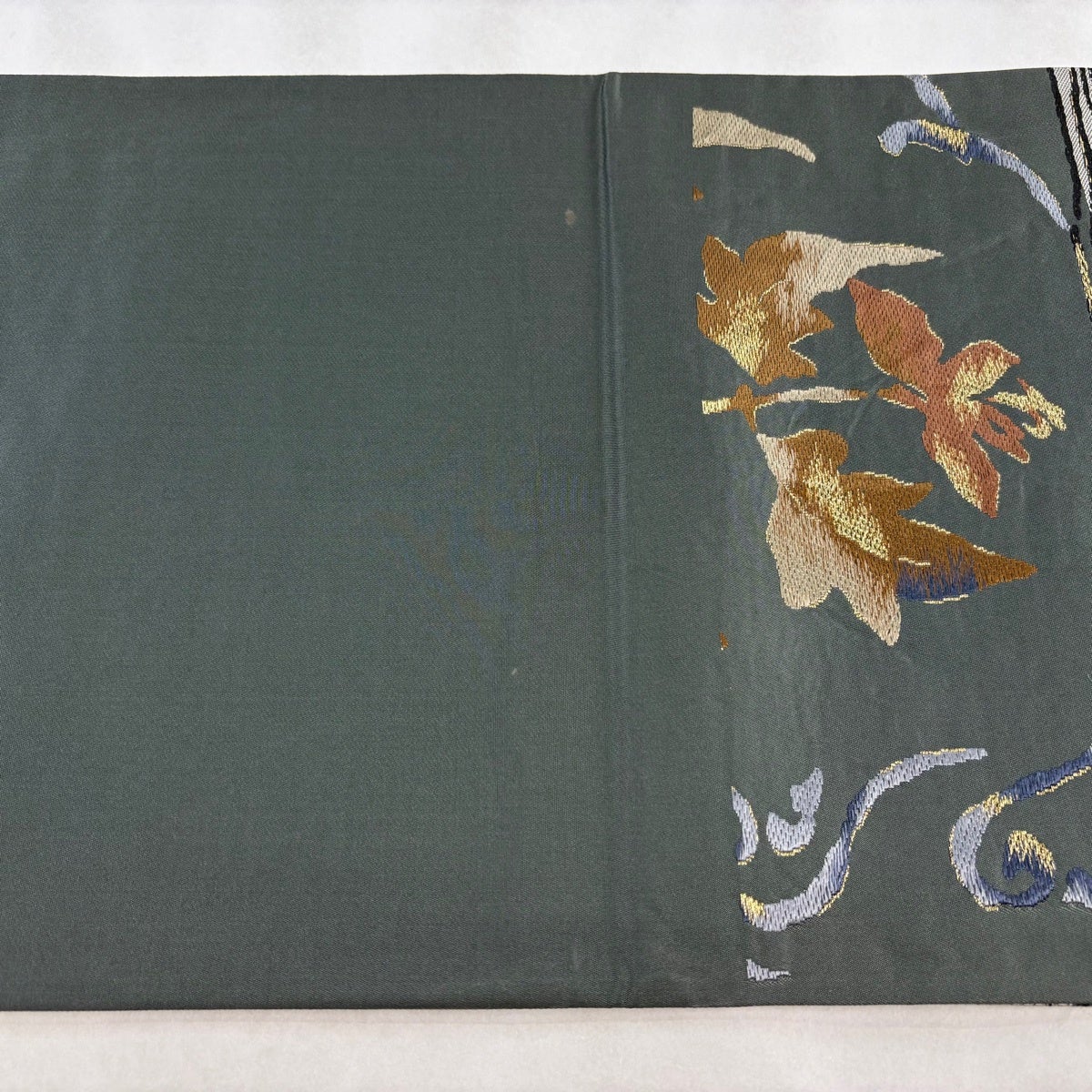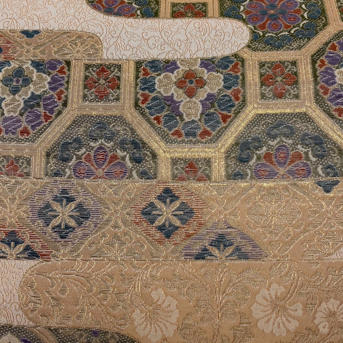 袋帯とは女性用の主にフォーマル用の帯で第一礼装として着用されることが多く、形状は表地にのみ柄があり裏地は無地になるように袋状に織って作成されたため袋帯という名が付きました。 帯を締める際にはおめでたいことが重なりますようにという願いが込められている二重太鼓や成人式の際に振袖に見かけるふくら雀や文庫結びなどの変わり結びを用いて着用します。