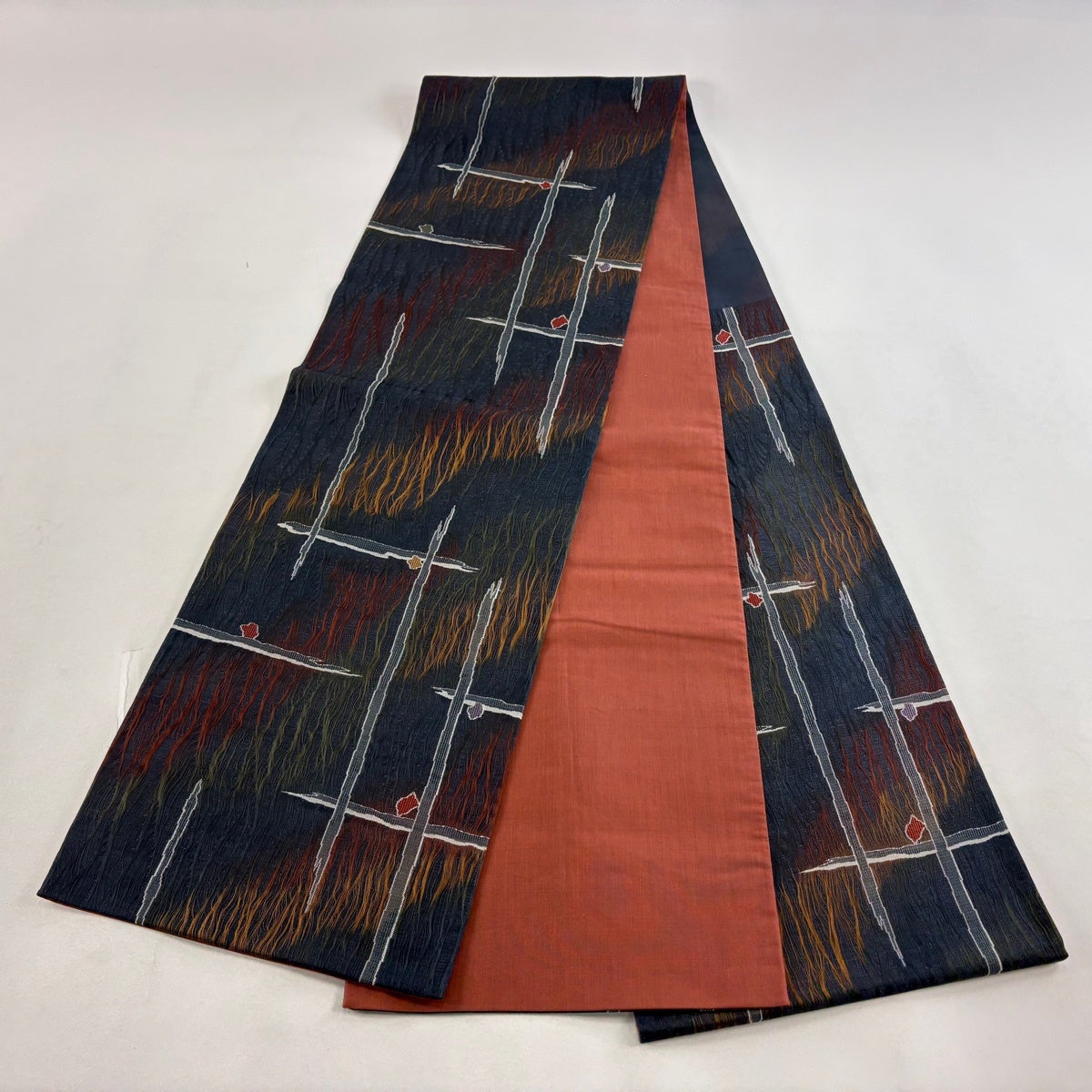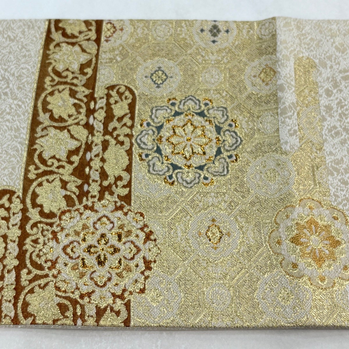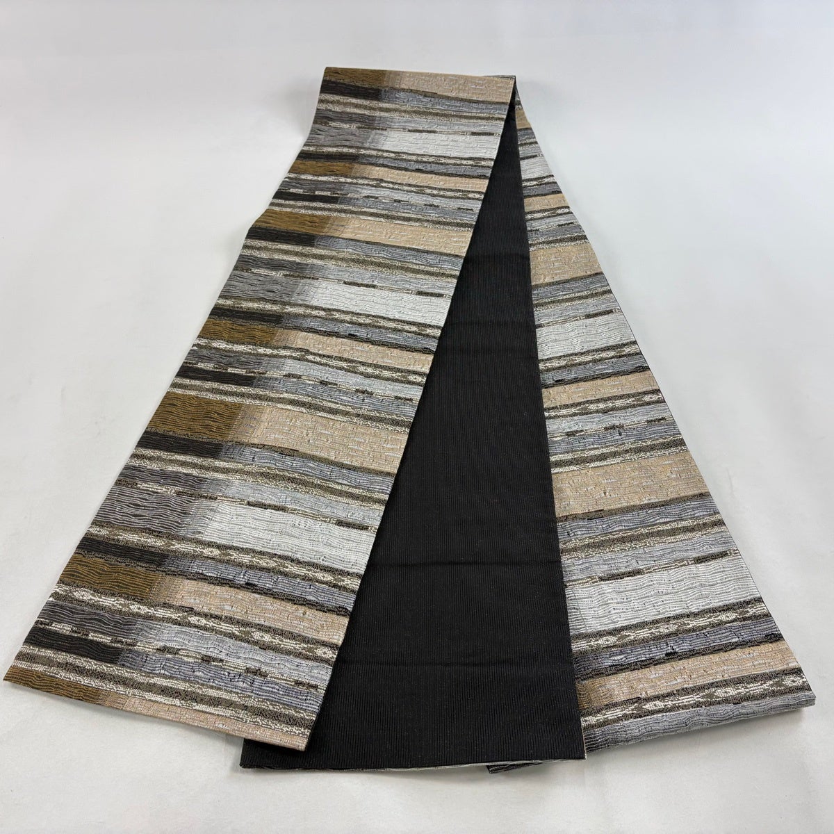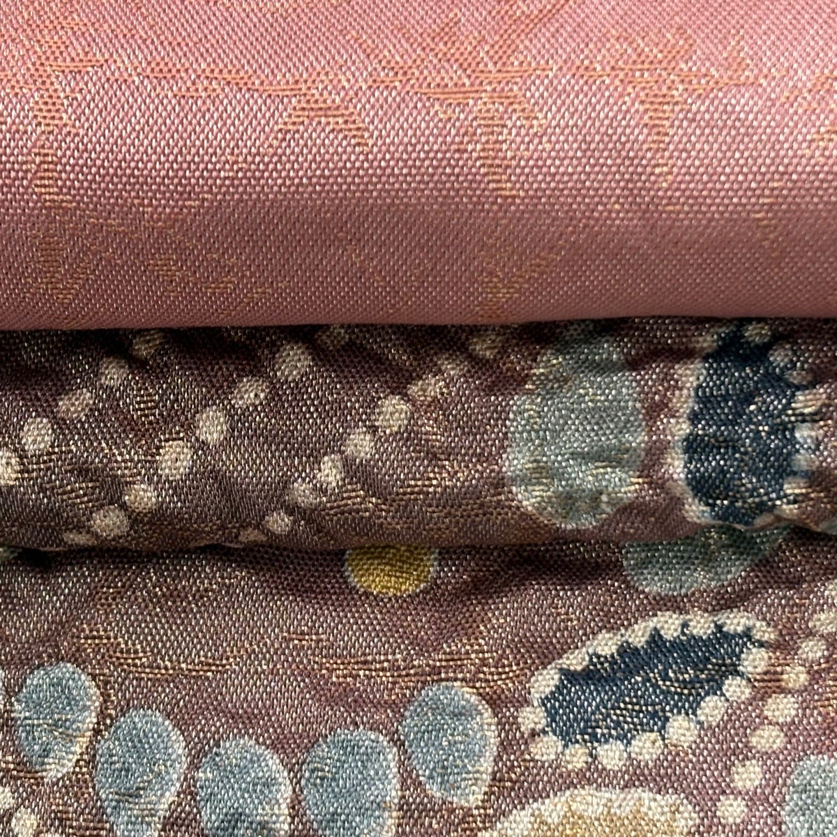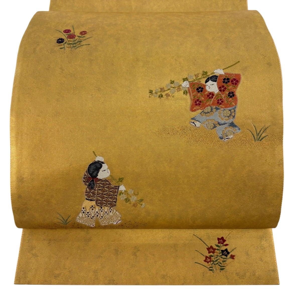 袋帯とは女性用の主にフォーマル用の帯で第一礼装として着用されることが多く、形状は表地にのみ柄があり裏地は無地になるように袋状に織って作成されたため袋帯という名が付きました。 帯を締める際にはおめでたいことが重なりますようにという願いが込められている二重太鼓や成人式の際に振袖に見かけるふくら雀や文庫結びなどの変わり結びを用いて着用します。