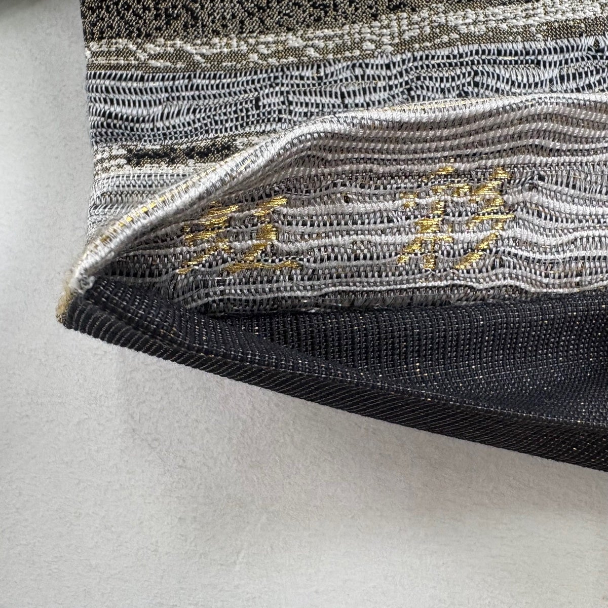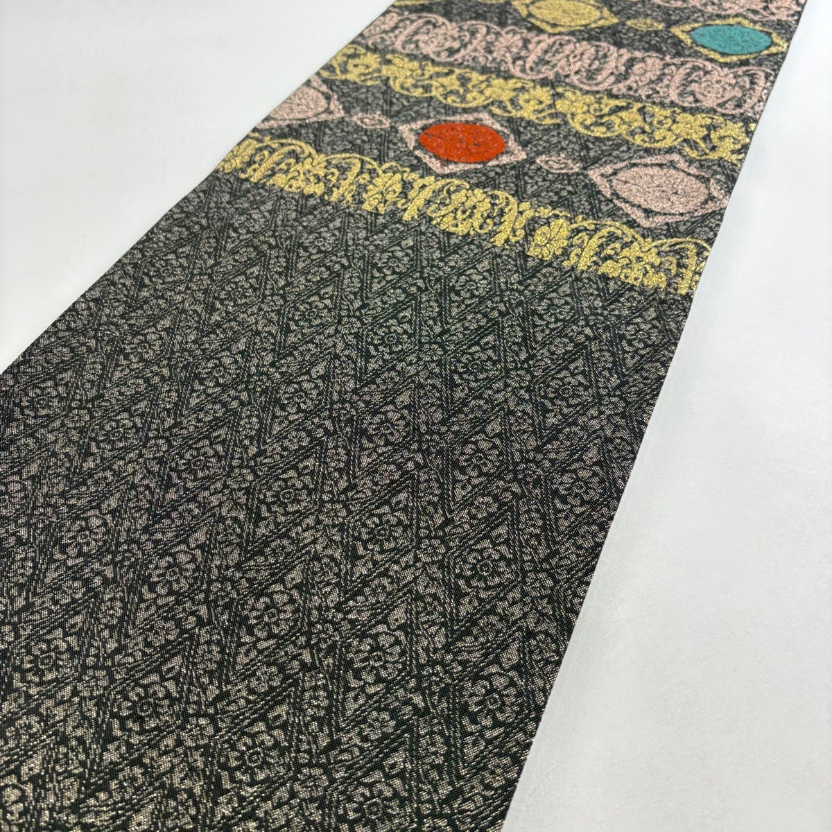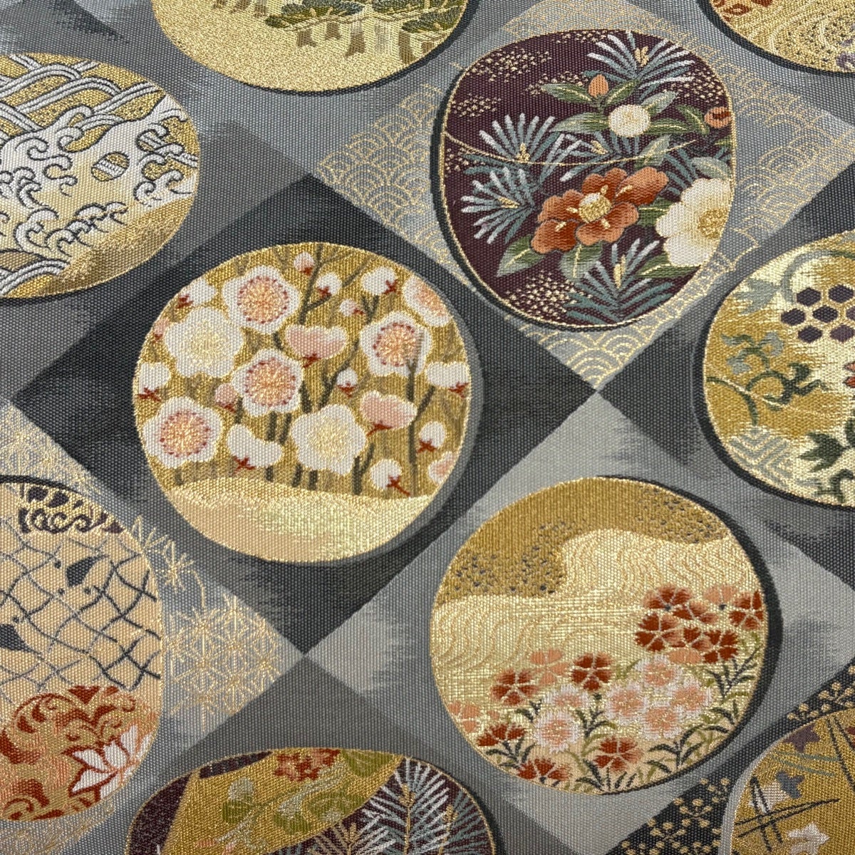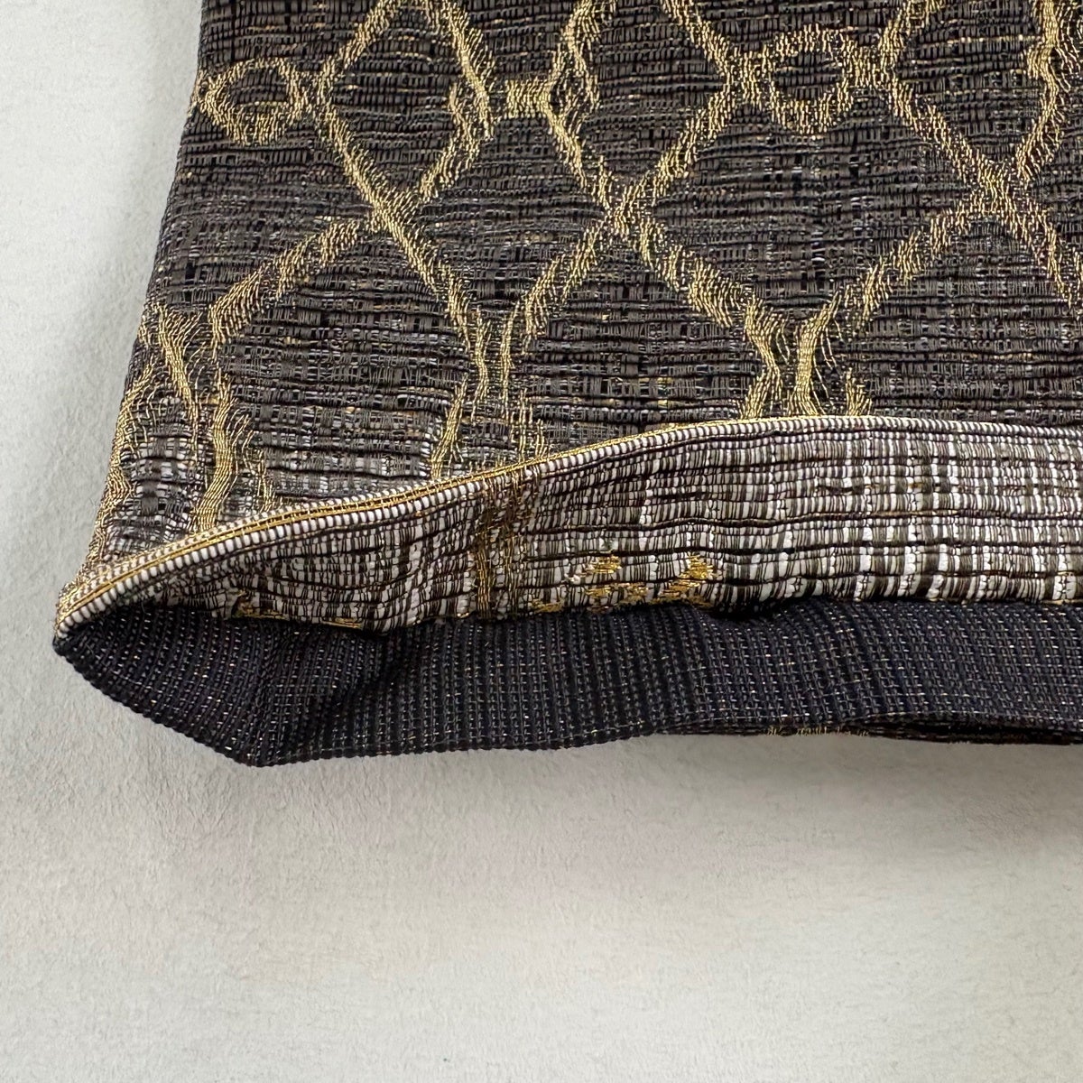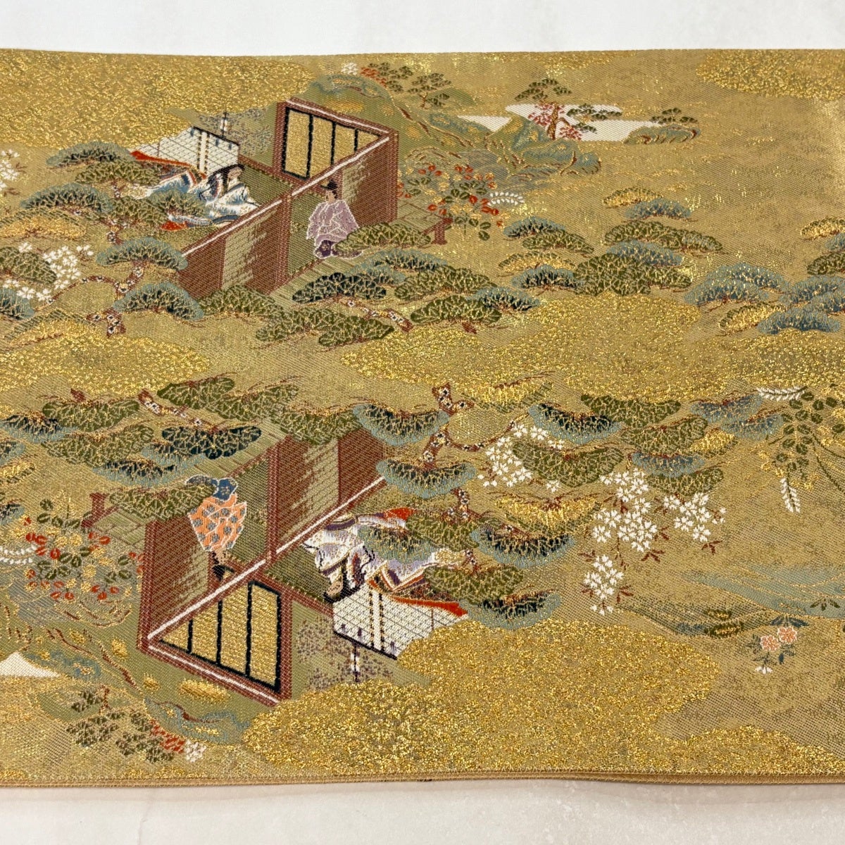 袋帯とは女性用の主にフォーマル用の帯で第一礼装として着用されることが多く、形状は表地にのみ柄があり裏地は無地になるように袋状に織って作成されたため袋帯という名が付きました。 帯を締める際にはおめでたいことが重なりますようにという願いが込められている二重太鼓や成人式の際に振袖に見かけるふくら雀や文庫結びなどの変わり結びを用いて着用します。